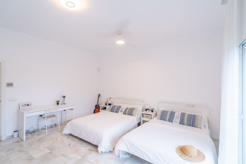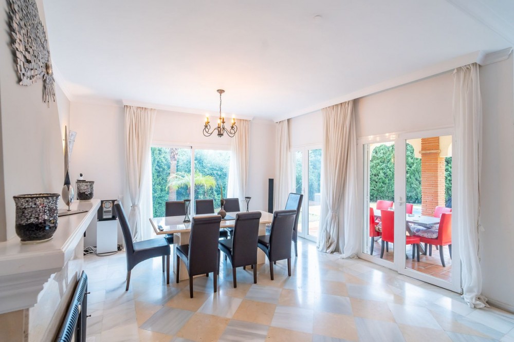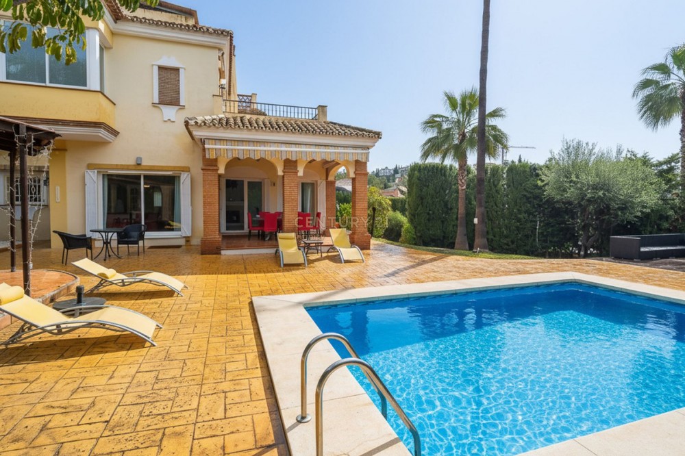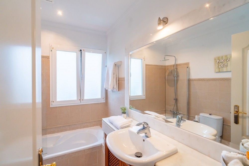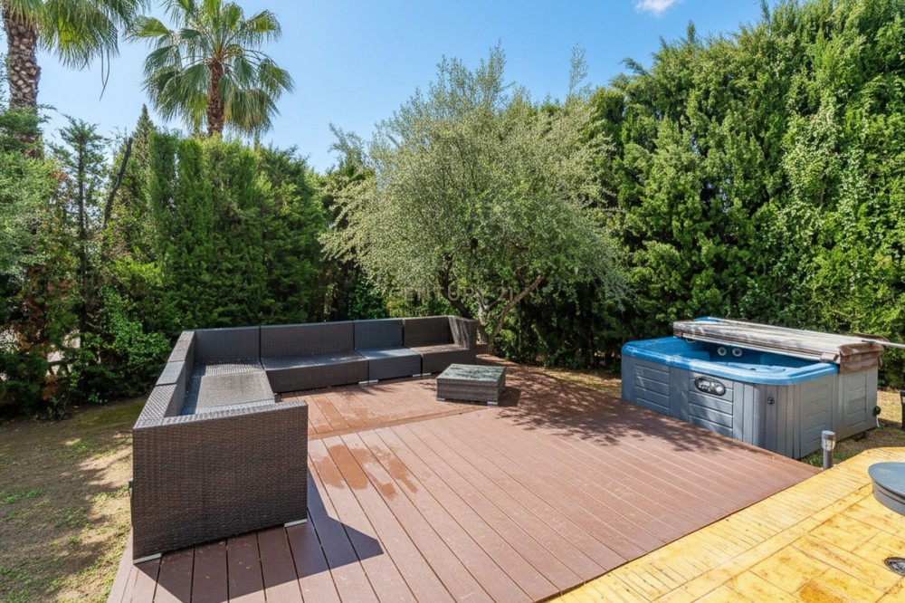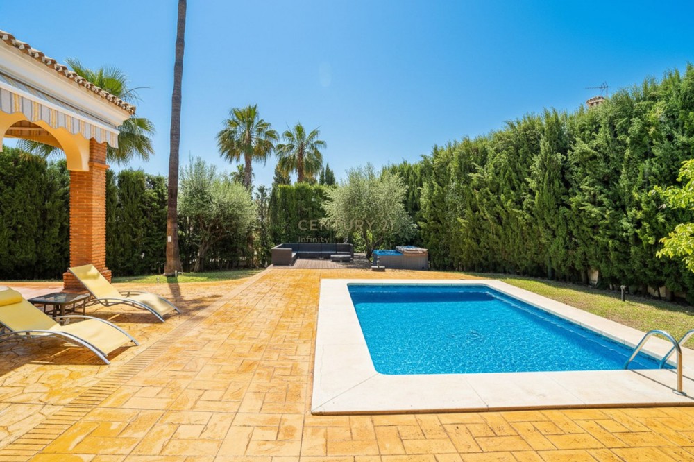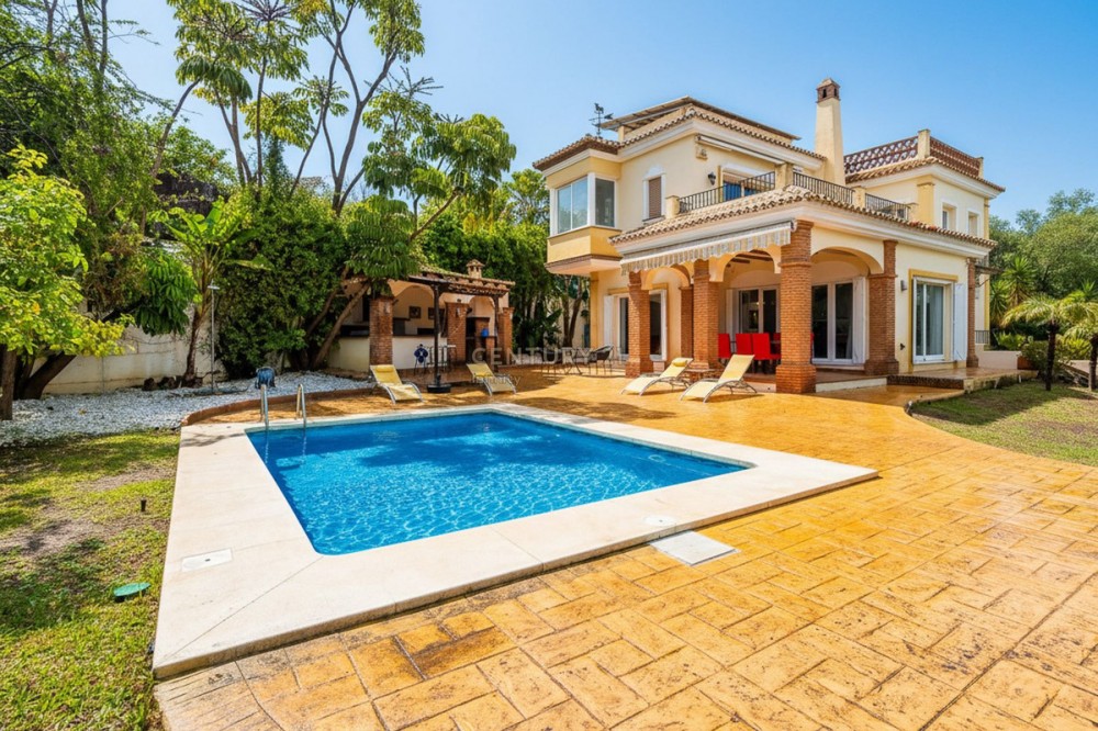 - EXCLUSIVE DETACHED VILLA IN MIJAS GOLF With a spacious garden, privacy, and unobstructed views. Discover this stunning detached villa located in one of the most sought-after areas: Mijas Golf. A charming property, perfect for those seeking space, nature, and comfort just minutes from all amenities. The plot measures 1,050 m² and the total built area is 224 m², distributed over three comfortable floors. Semi-basement: garage for two cars with storage, a water cistern room, and an ideal space for an office, games room, guest studio, gym, etc. Ground floor: This is the main living area, with direct access to the garden and pool. The entrance hall can be accessed from inside the house via the garage or from the main entrance from the exterior parking area. The entrance hall, with its high ceiling and large window, gives this beautiful home a unique character. On this floor, we have a spacious and bright living-dining room with a fireplace and easy access to the outdoors. From the living room, you can access a covered terrace, perfect for al fresco dining. The kitchen is separate and fully equipped. There is also a double guest bedroom on this floor and a full bathroom with a shower. Upstairs: This floor features another double bedroom with a dressing room and ensuite bathroom, as well as the large master bedroom. The master bedroom is an oasis of comfort and tranquility with its spacious ensuite bathroom featuring a shower and hydromassage tub, a large dressing room, and a private nook ideal for reading or meditation. The bedroom has its own terrace with unobstructed views of the Mijas mountains. The house has a rooftop solarium, perfect for enjoying the last rays of the afternoon sun. The villa is surrounded by a wonderful private garden with different areas: a swimming pool with a fantastic chill-out area, outside kitchen and barbecue, a jacuzzi, a lawn for sun loungers, and a more sheltered area for those sunny summer days. The property is south and west facing enjoying all day sunshine. Features: Photovoltaic solar panels for both hot water and electricity Integrated air conditioning Automatic irrigation system Alarm system Enjoy privacy and natural light throughout the day in a relaxed, residential setting near the golf course, yet well-connected to all amenities, schools, shops, and main roads. Experience the best of both worlds: the tranquility of nature without sacrificing city conveniences. Mijas Golf is located just 15 minutes from La Cala de Mijas blue flag beach, 10 minutes from Fuengirola and its shopping areas and 15 minutes from its beaches. It offers easy access to the motorway and is just 25 minutes from Malaga Airport. This property is perfect as a primary residence for a family, a holiday home, or an investment property for holiday rentals. Don't miss out! Contact us today to arrange a viewing.