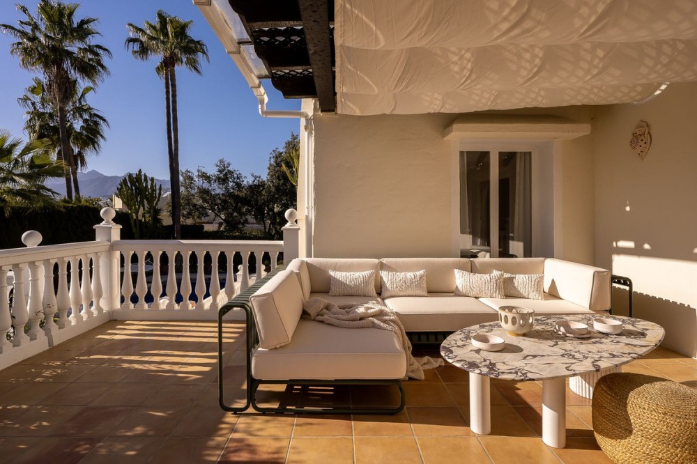 - Fully furnished, recently renovated villa located in a prestigious gated and secure community in El Rosario, Marbella East. The property sits on a private plot of 1,088 m² with a total built area of 558 m², distributed over three levels (2 floors + basement). The villa is in excellent condition, following renovation and extension completed in 2020, and is ready for immediate use. The property has also been featured in Architectural Digest, highlighting its design quality and aesthetic appeal. Layout: Spacious living and dining area with direct access to terraces and garden Fully equipped kosher-style kitchen (2 sinks, 2 refrigerators, 2 dishwashers) Multiple bedrooms and bathrooms Basement level (-1), with natural light and windows, divided into two areas: * large open space suitable for gaming room / cinema / gym * independent unit with bedroom, bathroom, walk-in closet and pre-installations for a kitchen, with separate entrance from the garden — ideal for staff or guests Outdoor area: Private swimming pool Landscaped garden with mature greenery Several terrace areas Mountain views High level of privacy Additional information: Sold fully furnished and equipped Located in a secure gated community Short-term rentals (Airbnb) are not permitted in the community Ideal as a second home or for permanent living Very suitable for a family, including with staff