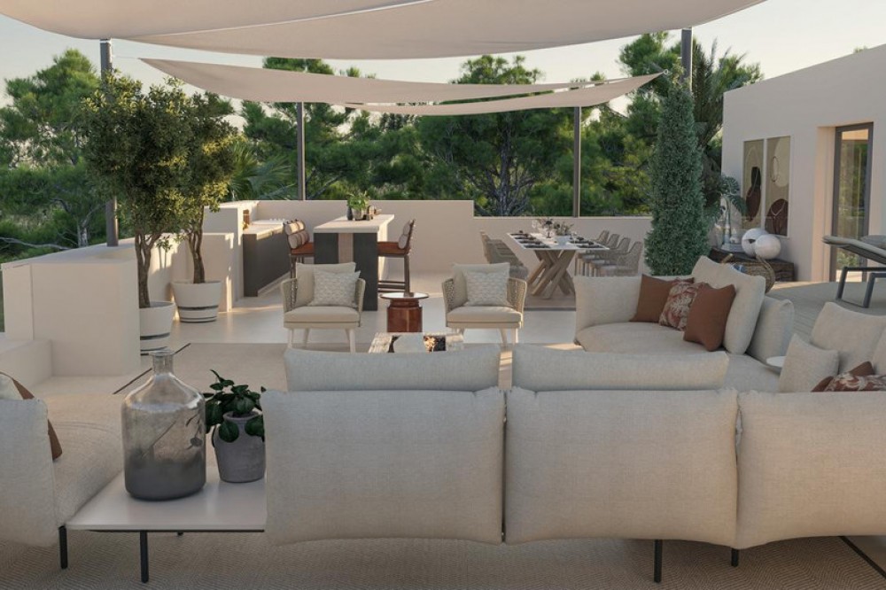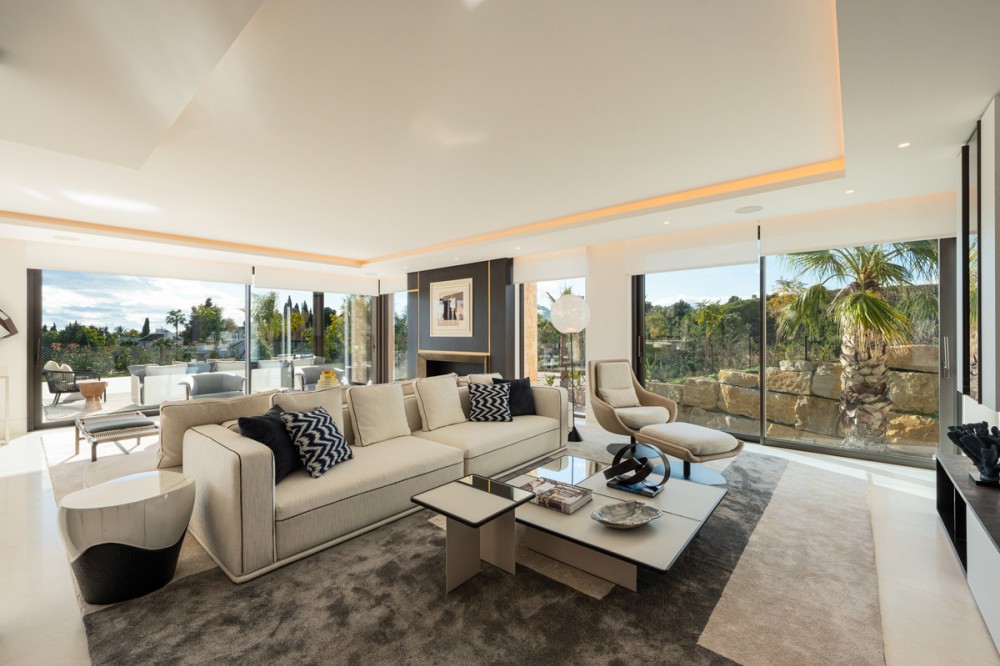 - This exceptional luxury villa in Marbella Hill Club seamlessly blends refined elegance with effortless comfort, offering an exclusive lifestyle in one of Marbella’s most prestigious enclaves. The bespoke interiors by Pedro Peña are uniquely tailored to this residence, creating a sophisticated yet welcoming atmosphere that feels both timeless and distinctive. A calming neutral palette, enriched with natural materials such as wood and marble, enhances the sense of understated luxury, while meticulous attention to detail elevates every space. The open-plan living areas are thoughtfully designed to create a harmonious flow while maintaining defined zones for relaxation and entertainment. The living room invites comfort and tranquillity, complemented by curated artwork and bespoke finishes that add character and individuality. The contemporary kitchen is both stylish and functional, equipped with state-of-the-art appliances and a wine cooler, making it ideal for both everyday living and elegant entertaining. Each bedroom is beautifully appointed with premium materials and refined décor, offering a serene and luxurious retreat. The bathrooms feature double vanities, walk-in showers, and freestanding bathtubs, delivering a spa-like experience. This remarkable property also includes an exclusive bar and entertainment room, a fully equipped gym, a Turkish bath, and an indoor pool, creating a private wellness and leisure sanctuary. Set on a generous plot, the villa offers extensive outdoor areas designed to enjoy the Mediterranean lifestyle, including multiple seating areas, a private swimming pool, and breathtaking sea views. The impressive solarium features an outdoor kitchenette and additional space for relaxation and entertainment. Ideally located near the Marbella Golden Mile, this outstanding villa represents a rare opportunity to own a truly bespoke luxury residence that perfectly balances sophistication, comfort, and prime location.