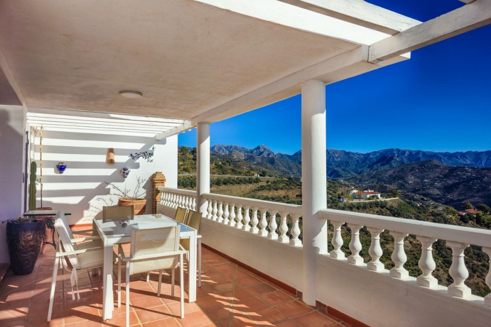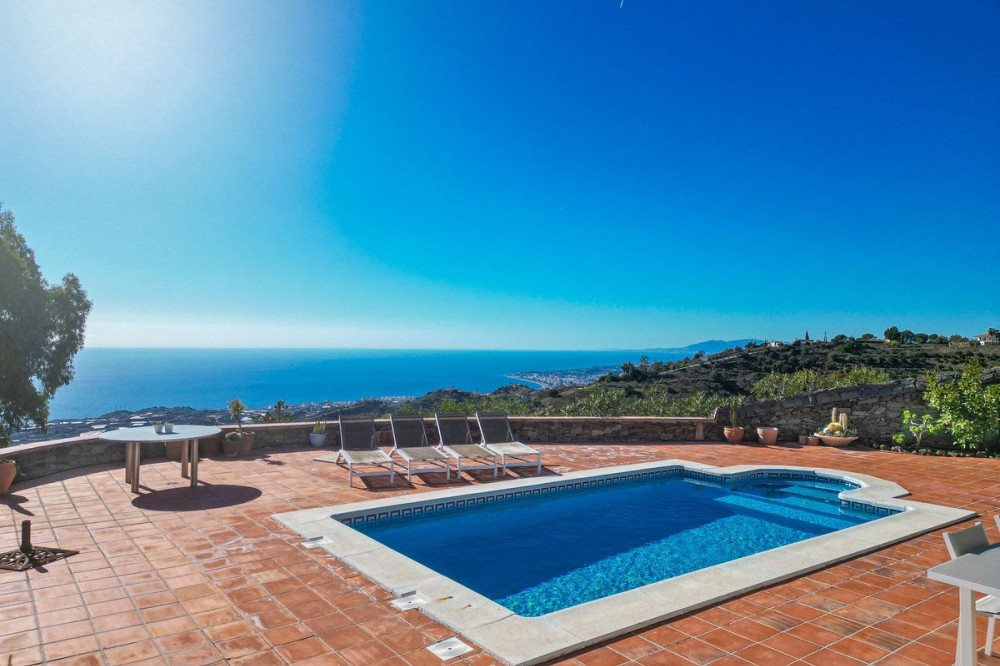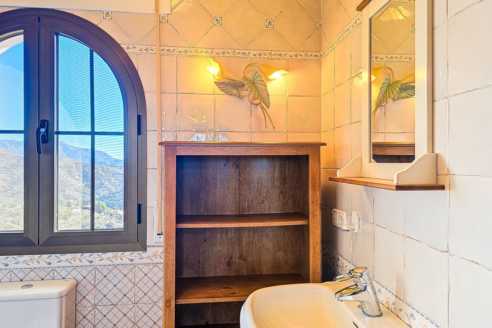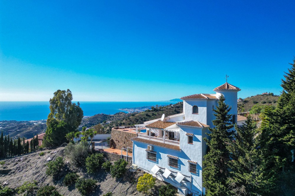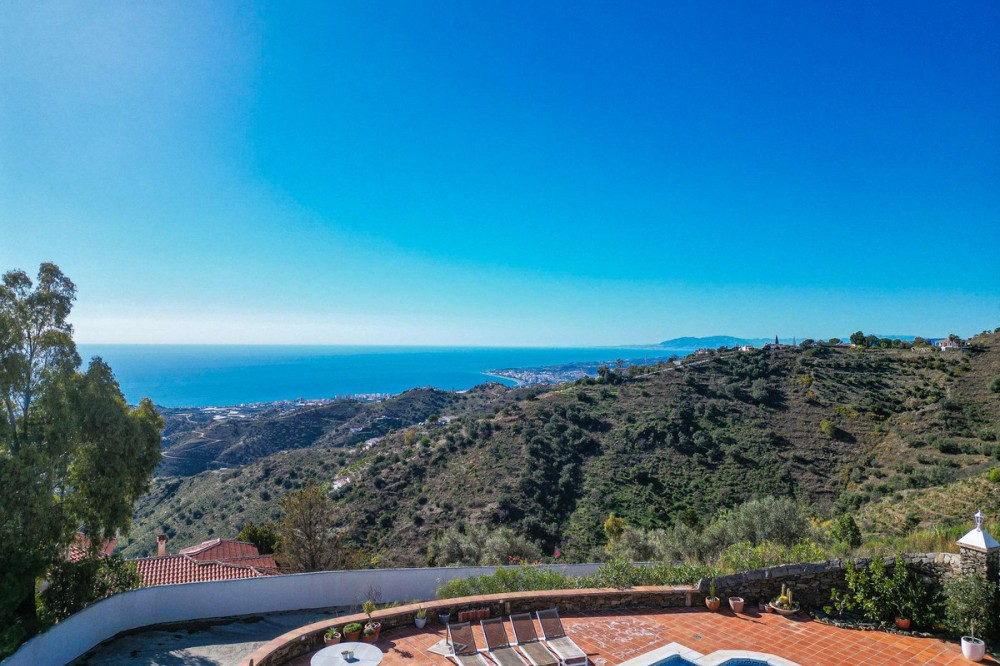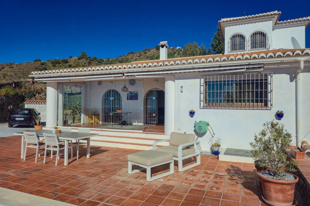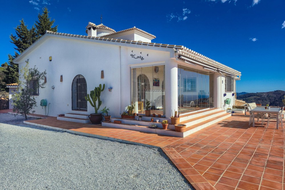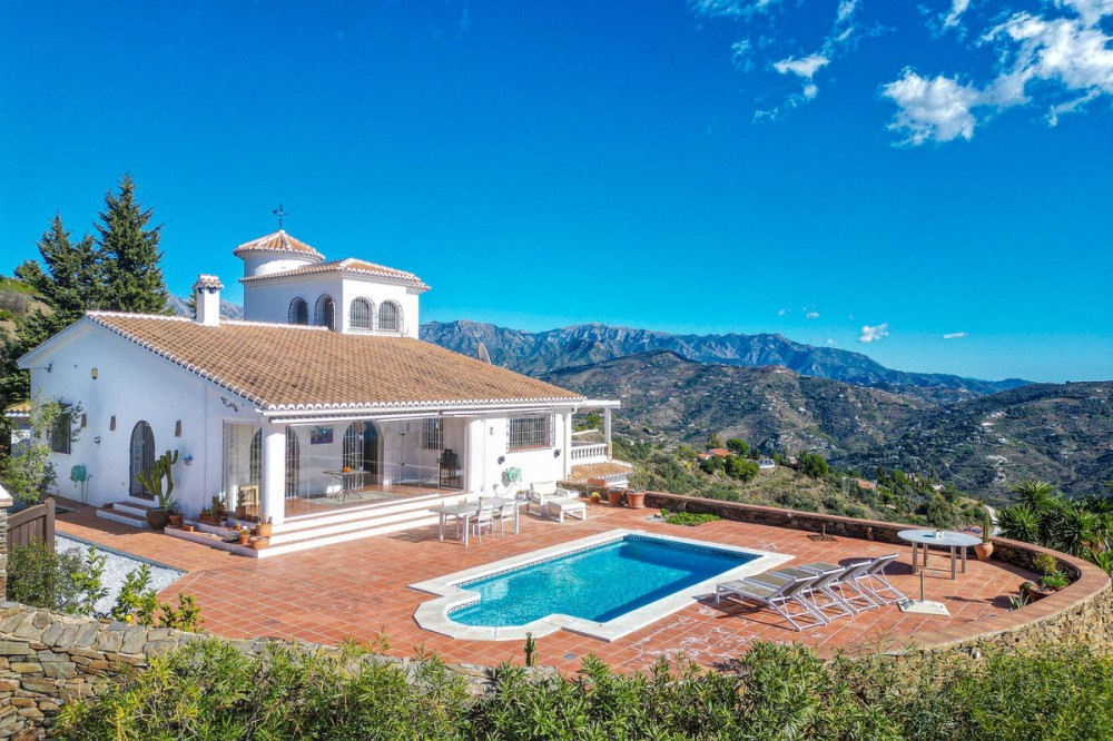 - Exclusive Villa in Sayalonga – Panoramic Sea & Mountain Views Discover this exceptional luxury villa in Sayalonga, perfectly positioned just 30 minutes from the coast and 50 minutes from Málaga Airport. Offering breathtaking panoramic views, premium finishes, and a fully independent guest unit, this property blends comfort, privacy, and investment potential. Main Residence – Designed for Living & Entertaining Step into a spacious open-plan living area combining a bright lounge, elegant dining space, and a fully equipped modern kitchen (dishwasher, fridge, freezer, gas hob, and oven). Enjoy year-round comfort with air conditioning, gas central heating, and a charming fireplace with fan—perfect for cozy evenings. Bedrooms – Comfort & Privacy Master Suite: Private dressing room and luxurious en-suite bathroom with bath, shower, double sink, and toilet Second Suite: Built-in wardrobes and en-suite bathroom with shower Tower Room (3rd Bedroom): Unique space with en-suite bathroom, fitted wardrobe, and spectacular elevated views All bedrooms are equipped with air conditioning for maximum comfort. Independent Guest Unit – Flexible & Private A fully self-contained lower-level apartment with separate front and rear entrances and its own sun terrace. Includes an open-plan living area with air conditioning and central heating, a kitchen (electric hob and refrigerator), bathroom with walk-in shower, and two spacious bedrooms (with potential for a third). Ideal for hosting guests, extended family, or generating high-quality rental income. Outdoor Living & Premium Features Heated saltwater swimming pool (6.5 × 4 m) with automatic pH system Beautiful grounds with approximately 60 fruit trees and irrigation system Solar-powered hot water (3 panels) Water share + 10,000L reserve tank Vaillant gas boiler Storage and laundry room Yamaha 450 4x4 quad bike included A Rare Opportunity This is a unique, move-in-ready villa offering privacy, luxury, and versatility. Whether as a permanent family home, exclusive holiday retreat, or investment property, it delivers exceptional value in one of Andalusia’s most sought-after locations. Contact us today to arrange a viewing.