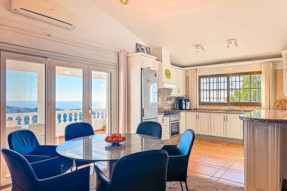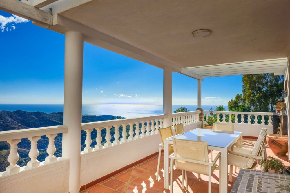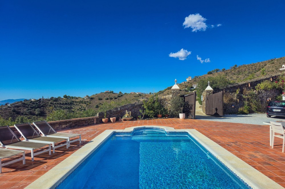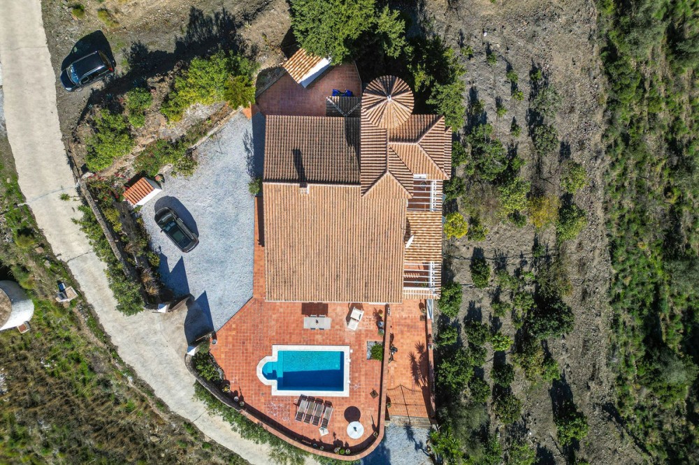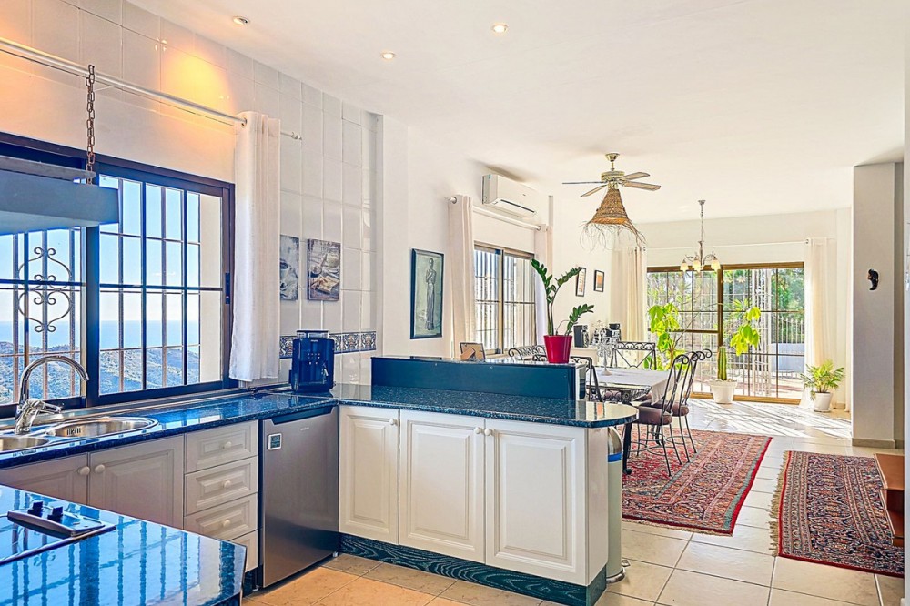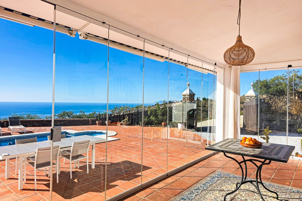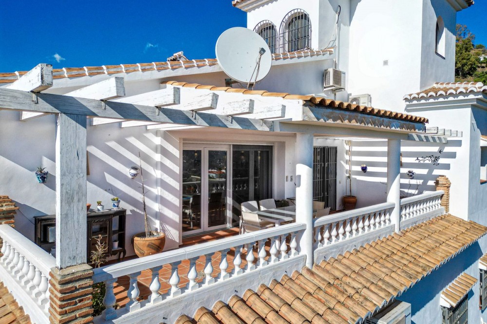 - Exclusive Villa in Sayalonga – Panoramic Sea & Mountain Views Discover this exceptional luxury villa in Sayalonga, perfectly positioned just 30 minutes from the coast and 50 minutes from Málaga Airport. Offering breathtaking panoramic views, premium finishes, and a fully independent guest unit, this property blends comfort, privacy, and investment potential. Main Residence – Designed for Living & Entertaining Step into a spacious open-plan living area combining a bright lounge, elegant dining space, and a fully equipped modern kitchen (dishwasher, fridge, freezer, gas hob, and oven). Enjoy year-round comfort with air conditioning, gas central heating, and a charming fireplace with fan—perfect for cozy evenings. Bedrooms – Comfort & Privacy Master Suite: Private dressing room and luxurious en-suite bathroom with bath, shower, double sink, and toilet Second Suite: Built-in wardrobes and en-suite bathroom with shower Tower Room (3rd Bedroom): Unique space with en-suite bathroom, fitted wardrobe, and spectacular elevated views All bedrooms are equipped with air conditioning for maximum comfort. Independent Guest Unit – Flexible & Private A fully self-contained lower-level apartment with separate front and rear entrances and its own sun terrace. Includes an open-plan living area with air conditioning and central heating, a kitchen (electric hob and refrigerator), bathroom with walk-in shower, and two spacious bedrooms (with potential for a third). Ideal for hosting guests, extended family, or generating high-quality rental income. Outdoor Living & Premium Features Heated saltwater swimming pool (6.5 × 4 m) with automatic pH system Beautiful grounds with approximately 60 fruit trees and irrigation system Solar-powered hot water (3 panels) Water share + 10,000L reserve tank Vaillant gas boiler Storage and laundry room Yamaha 450 4x4 quad bike included A Rare Opportunity This is a unique, move-in-ready villa offering privacy, luxury, and versatility. Whether as a permanent family home, exclusive holiday retreat, or investment property, it delivers exceptional value in one of Andalusia’s most sought-after locations. Contact us today to arrange a viewing.