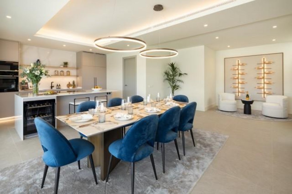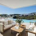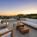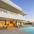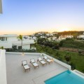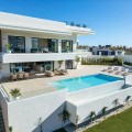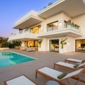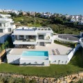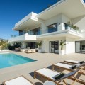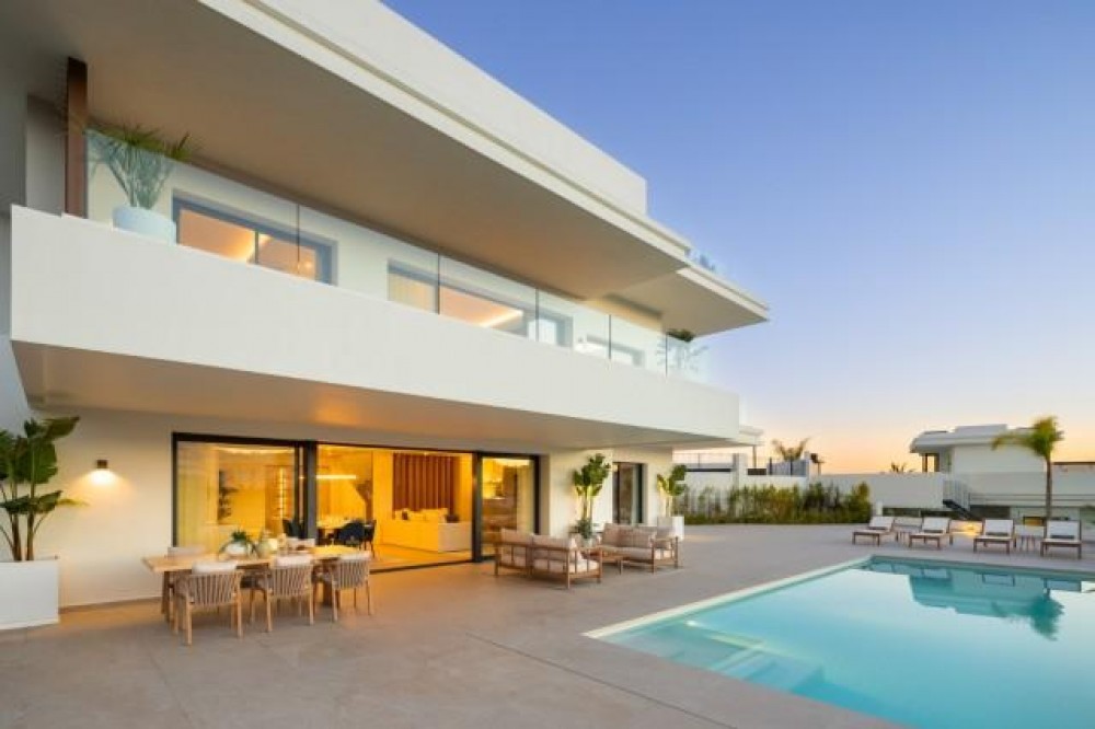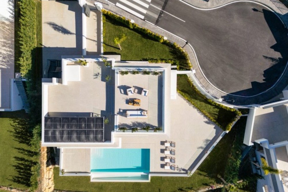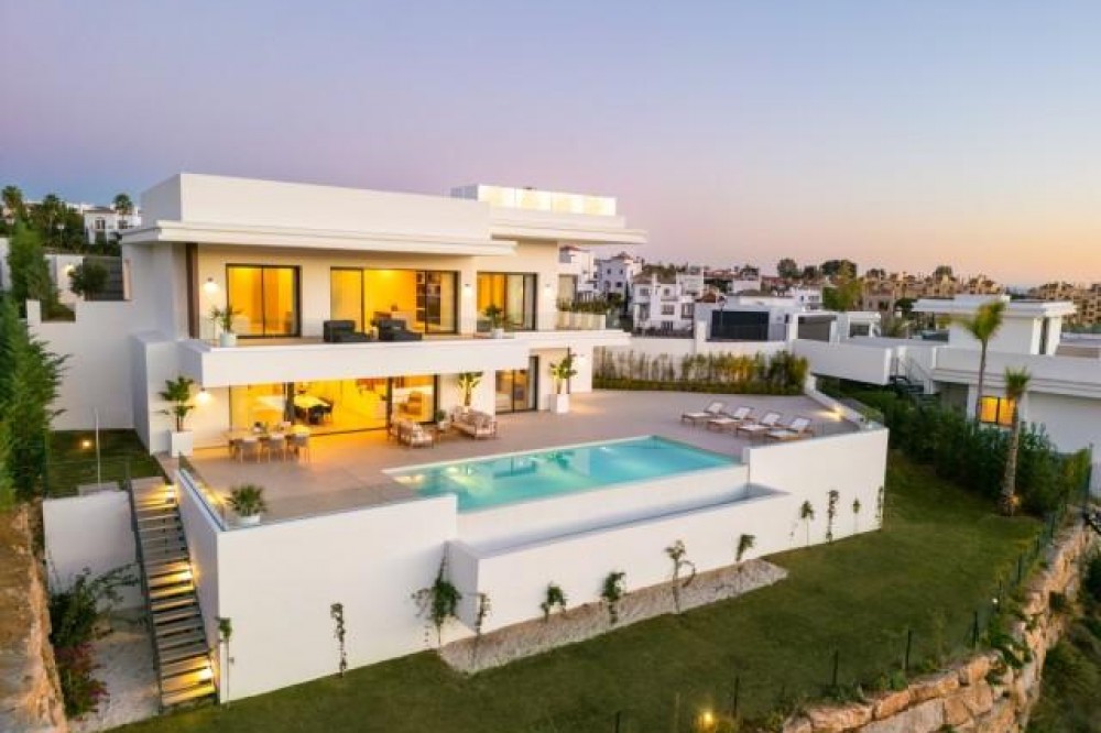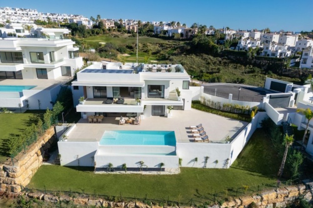 - Ontdek een nieuwe moderne luxe villa te koop op de New Golden Mile. Dit exclusieve project bestaat uit zes moderne, nieuw gebouwde villa's, elk gelegen op een verhoogd perceel voor optimaal uitzicht en privacy, gelegen in het oostelijke deel van Estepona. Deze villa is een voortreffelijk huis, dat twee verdiepingen beslaat en beschikt over vijf slaapkamers. Bij binnenkomst wordt u begroet door een veelzijdige woonruimte die ook dienst doet als gastvrije ruimte. De hoofdslaapkamer, aan de linkerkant, kijkt uit over de zee en beschikt over een lichte en-suite badkamer en een ruime inloopkast. De keuze aan stoffen en materialen in de hele villa voegt een laagje warmte en luxe toe aan het moderne ontwerp. Aan de rechterkant bevindt zich een tweede slaapkamer met badkamer. Een karakteristieke trap, versierd met een kroonluchter als centraal kunstwerk, leidt naar het hart van het huis. Hier gaat een woongedeelte over in een keuken uitgerust met Siemens-apparatuur en een eetruimte geaccentueerd door een stijlvolle muur voor wijnpresentatie. Dit niveau komt uit op een groot terras met een overloopzwembad, barbecue en loungeruimte, naast drie extra slaapkamers. Deze prachtige villa stopt daar niet; het beschikt over een dakterras met pre-installaties voor een jacuzzi en barbecue, en biedt een perfect toevluchtsoord voor ontspanning en entertainment. Bovendien biedt een ruwe kelder een leeg canvas voor de nieuwe eigenaar om hun droomruimte aan te passen. Duurzaamheid ontmoet luxe in deze villa, reeds voorzien van geïnstalleerde zonnepanelen. Deze panelen zijn niet alleen energiezuinig maar ook milieubewust, waardoor deze moderne villa een voorbeeldige keuze is voor wie waarde hecht aan duurzaamheid zonder concessies te doen aan de luxe in Estepona.