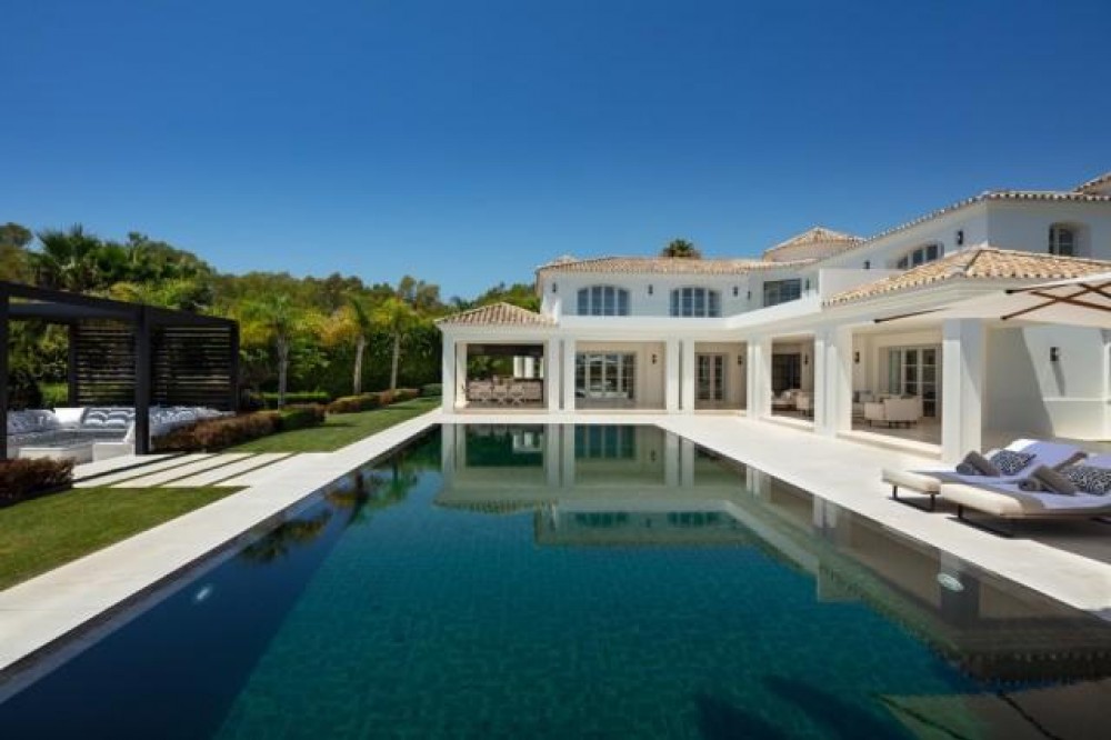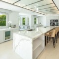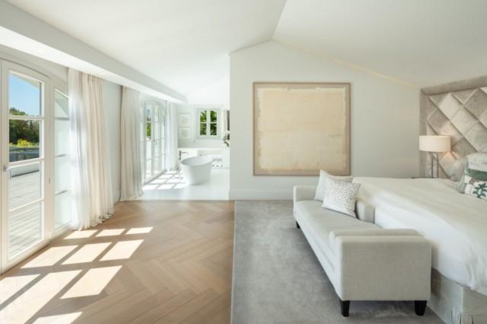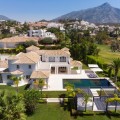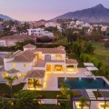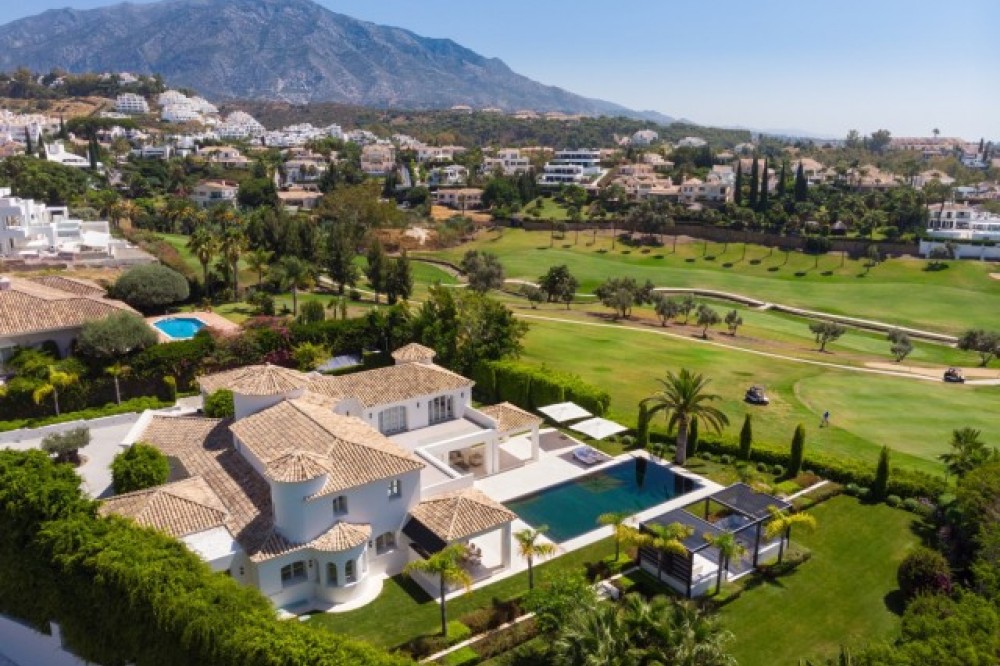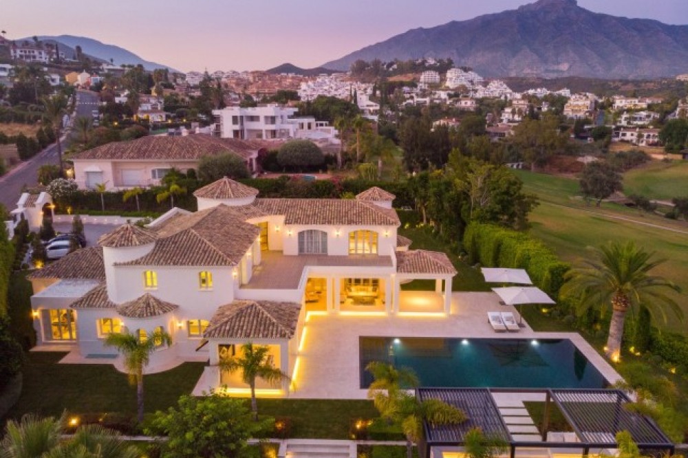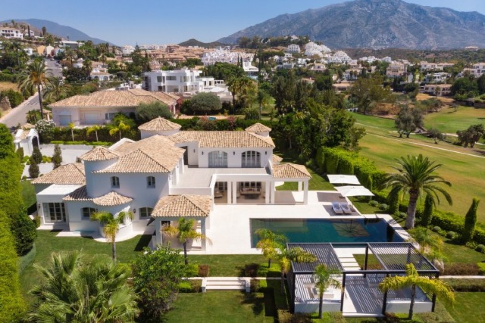 - Prachtige frontline golfvilla te koop in Nueva Andalucia, Marbella. Dit familiehuis kijkt uit op de golfbaan Los Naranjos en is gebouwd op een vlak perceel, met een prachtig terras, aangelegde tropische tuin en verwarmd zwembad. Het pand is prachtig gepresenteerd, gebouwd volgens zeer goede normen met veel aandacht voor detail. Het beschikt over een mooie ronde oprit en garage als u de imposante entree van het huis nadert. Op de begane grond heeft het een open keuken met eet- en ontbijtruimte, een formele lounge en eetkamer, diverse zitgedeeltes, 2 slaapkamers met eigen badkamer en een informele tv-kamer die kan worden omgebouwd tot extra accommodatie. Vanuit de keuken is er toegang tot een semi-kelder waar zich een extra slaapkamer met eigen badkamer, wasruimte en berging bevindt. Op de bovenste verdieping zijn er 3 extra slaapkamers die een zonnig terras delen met uitzicht op de golfbaan (de hoofdslaapkamer heeft een eigen kleedruimte en een jacuzzi).