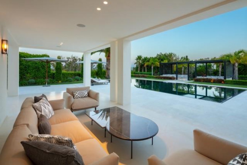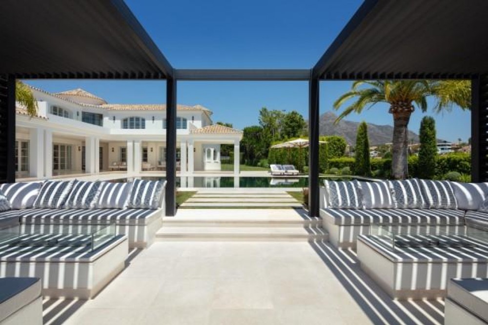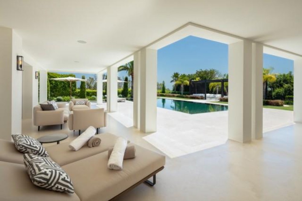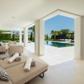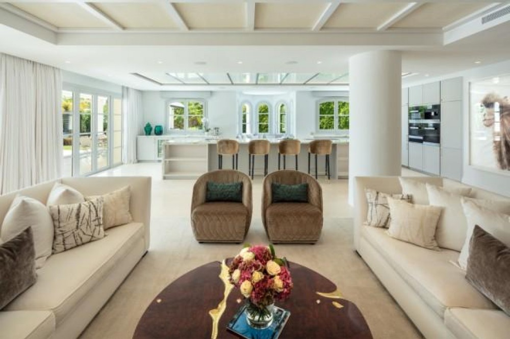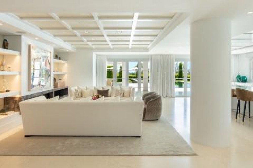 - Prachtige frontline golfvilla te koop in Nueva Andalucia, Marbella. Dit familiehuis kijkt uit op de golfbaan Los Naranjos en is gebouwd op een vlak perceel, met een prachtig terras, aangelegde tropische tuin en verwarmd zwembad. Het pand is prachtig gepresenteerd, gebouwd volgens zeer goede normen met veel aandacht voor detail. Het beschikt over een mooie ronde oprit en garage als u de imposante entree van het huis nadert. Op de begane grond heeft het een open keuken met eet- en ontbijtruimte, een formele lounge en eetkamer, diverse zitgedeeltes, 2 slaapkamers met eigen badkamer en een informele tv-kamer die kan worden omgebouwd tot extra accommodatie. Vanuit de keuken is er toegang tot een semi-kelder waar zich een extra slaapkamer met eigen badkamer, wasruimte en berging bevindt. Op de bovenste verdieping zijn er 3 extra slaapkamers die een zonnig terras delen met uitzicht op de golfbaan (de hoofdslaapkamer heeft een eigen kleedruimte en een jacuzzi).