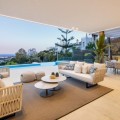 - Prachtige nieuw gebouwde moderne villa te koop in Benahavis. Deze prachtige villa ligt in het prestigieuze La Quinta-gebied en biedt een ongeëvenaard uitzicht op zee en een toplocatie. Royale terrassen zorgen ervoor dat u buiten kunt dineren en ontspannen bijeenkomsten kunt houden, terwijl het privé-overloopzwembad het decor vormt voor zomerplezier. Een eigen oprit, te bereiken vanaf de straat, leidt u naar de overdekte carport en entree. Terwijl u het pand verkent, wordt u omringd door een prachtig landschap. Bij binnenkomst verwelkomen de open woonkamer, keuken en eetkamer u met naadloze overgangen en kamerhoge glazen schuifdeuren die de grenzen tussen binnen- en buitenleven vervagen. Elk detail is zorgvuldig ontworpen om hedendaagse luxe en modern comfort te bieden. De op maat gemaakte keuken is volledig uitgerust met hoogwaardige apparatuur, voldoende opbergruimte en strakke werkbladen, terwijl LED-verlichtingsarmaturen de ruimte verlichten met een warme gloed. Een lift verbindt alle verdiepingen en zorgt voor gemakkelijke toegang, terwijl de bovenste verdieping is gewijd aan gastenkamers en de illustere master suite. De hoofdslaapkamer is een rustig toevluchtsoord met direct uitzicht en toegang tot het terras, terwijl de hoofdbadkamer een open ontwerp heeft met een vrijstaand bad, douche en dubbele wastafel. Deze prachtige villa stopt hier niet; het lagere niveau beschikt over ongeëvenaarde voorzieningen, waaronder een homegym, een Hamaam, een sauna en een entertainmentruimte met een aangepaste bar en een bioscoopruimte. Bovendien wacht er een wijnkelder, terwijl domotica- en Apple Home-integraties door het hele huis zorgen voor een naadloze bediening van verschillende systemen. De geluidssystemen van Bowers en Wilkins versterken de sfeer nog verder en zorgen voor een eersteklas audio-ervaring. Het echte pareltje ligt echter in het spectaculaire solarium, met nog een zwembad met hydromassage en voldoende chill-outruimtes om van adembenemende zonsondergangen te genieten en gasten in stijl te vermaken. Met zijn toplocatie in La Quinta biedt deze villa zowel privacy als veiligheid, samen met gemakkelijke toegang tot een overvloed aan voorzieningen, internationale scholen en de levendige bezienswaardigheden van Puerto Banus en Marbella Golden Mile.