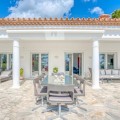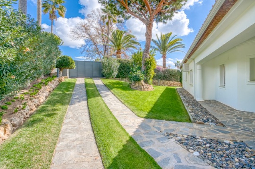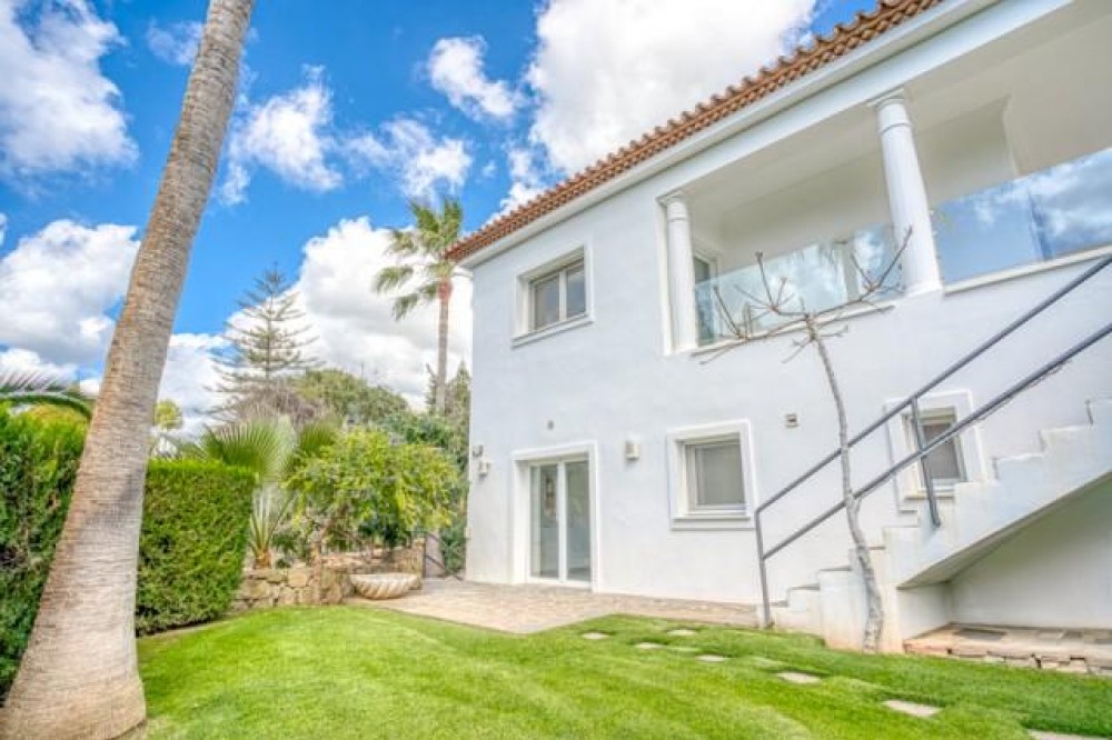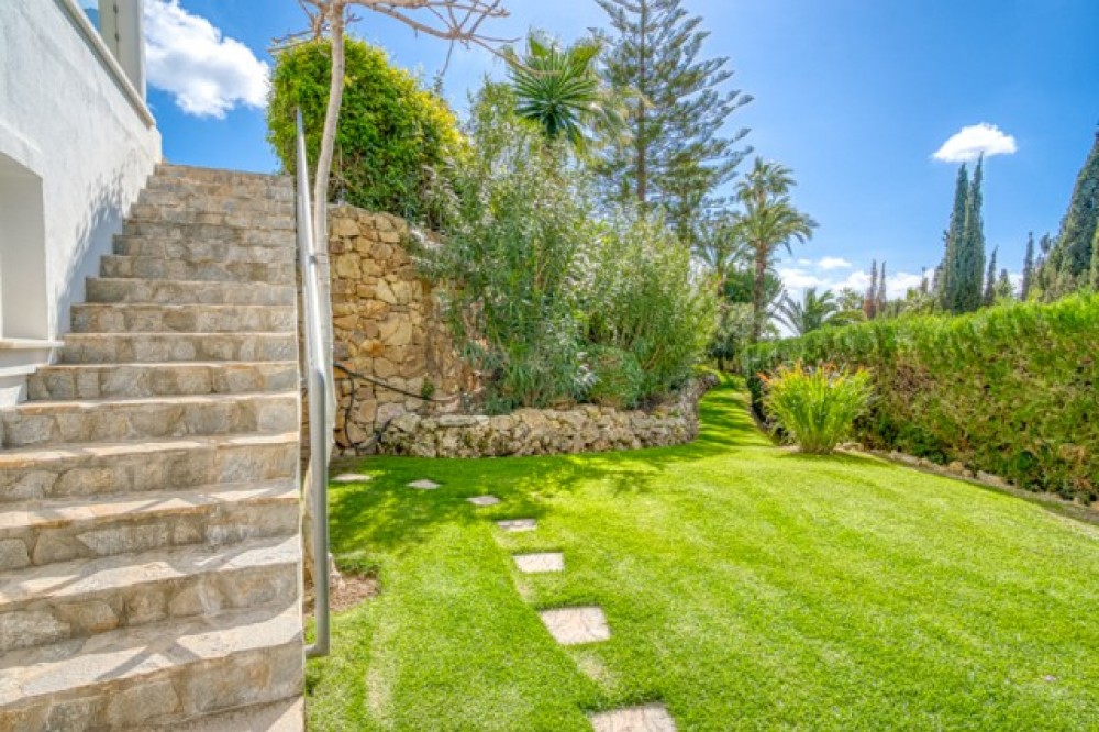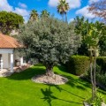 - Dit prachtige pand ligt op een zeer gewilde locatie, op slechts enkele minuten afstand van topscholen, golfbanen, winkels, restaurants, het strand en heeft 24 uur per dag beveiliging ter plaatse. De hoofdvilla is zorgvuldig ingedeeld op één niveau, met drie ruime slaapkamers, elk met een eigen badkamer en een extra gastentoilet voor extra gemak. Een opvallend kenmerk is de master suite, compleet met een inloopkast en directe toegang tot de weelderige tuin, waardoor een privé-oase voor ontspanning ontstaat. De veelzijdigheid van het pand wordt vergroot door een onafhankelijk studio-appartement op de benedenverdieping dat extra leefruimte biedt. Verder is er een grote multifunctionele ruimte met een gastentoilet, die flexibel kan worden omgebouwd tot een speelkamer, sportschool of kantoor, afgestemd op uw levensstijl. Stap naar buiten om te genieten van adembenemende uitzichten op zee en de bergen vanuit een spectaculair aangelegde tuin, gecentreerd door een majestueuze olijfboom en een prachtig, groot verwarmd zwembad. De zuidelijke oriëntatie van het pand zorgt voor volledige privacy en een overvloed aan natuurlijk licht gedurende de dag, terwijl het uitgestrekte terras uitnodigt tot dineren in de buitenlucht en buitenentertainment. Binnen vormen een ruime open keuken en woon-/eetkamer het hart van het huis. De ruimte is zowel functioneel als uitnodigend, compleet met een gezellige open haard en directe toegang tot het terras, waardoor het perfect is voor zowel ontspannen familieavonden als verfijnde bijeenkomsten. Extra functies zoals airconditioning in de slaapkamers, dubbele beglazing, alarmsysteem, keramische vloeren, een automatisch irrigatiesysteem, ruime oprit, dubbele carport en een prachtig verlichte tuin 's nachts vergroten de aantrekkingskracht van het pand nog meer. Een speciale wasruimte met een eigen ingang en directe toegang tot de dubbele garage maken deze uitzonderlijke residentie compleet. Deze villa is een zeldzame vondst met een overvloed aan potentieel op een van de meest prestigieuze locaties van Marbella.