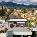 - Verscholen in een van Marbella's meest gewilde strandgemeenschappen, op slechts een steenworp afstand van het strand, Marbella Club en de oude stad. Een omheinde oase, omringd door volgroeide dennenbomen en weelderig groen, biedt privacy en een serene sfeer. Binnen ontmoet warmte innovatie: Murano-kroonluchters, massief messing handgrepen en verfijnde lijstwerken voegen karakter toe, terwijl een state-of-the-art domoticasysteem de verlichting, beveiliging en zelfs een draaiend garageplatform regelt, allemaal eenvoudig te bedienen via een app. De villa beslaat vier verdiepingen, allemaal verbonden door een champagnekleurige lift, en is ontworpen voor een vloeiende woonervaring. Een entree met dubbele hoogte leidt naar open ruimtes met houten plafonds en vloeiende binnen- en buitenverbindingen. De Siematic-keuken, uitgerust met Gaggenau-apparatuur, heeft schuifdeuren voor flexibel gebruik. Ramen van vloer tot plafond baden in natuurlijk licht en openen naar de aangelegde tuin. Voor ontspanning en vermaak biedt de villa een verwarmd zwembad van 17 meter met een anti-algen zonnescherm en een buitenkeuken. Het dakterras is perfect om buiten te dineren, met een complete keuken, jacuzzi en een panoramisch uitzicht op zee en La Concha. Op de benedenverdieping vindt u een fitnessruimte met Technogym-apparatuur, een stoom- en Finse sauna, een massageruimte, hydromassage, een klimaatgestuurde wijnkelder en een kitchenette. De garage is voorzien van een draaiplatform en laadstations voor elektrische auto's.