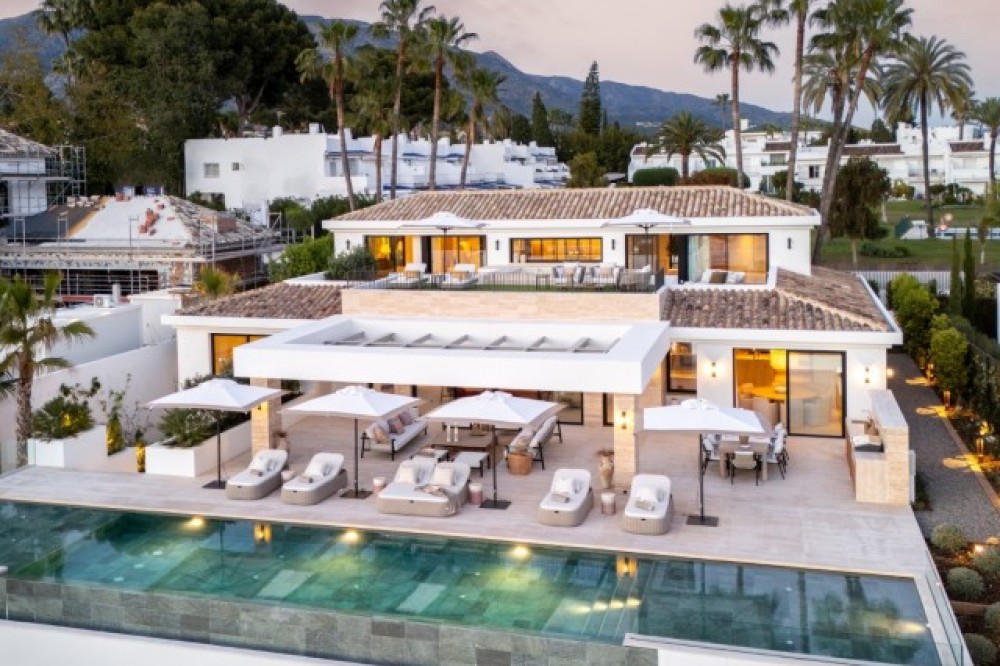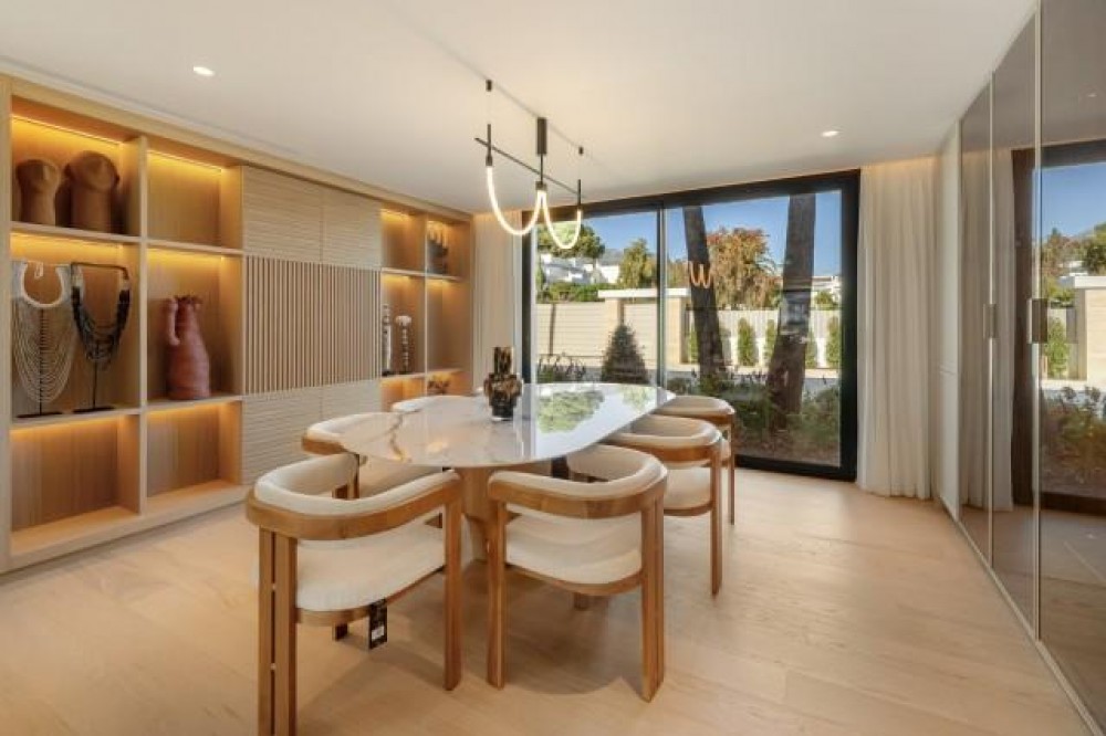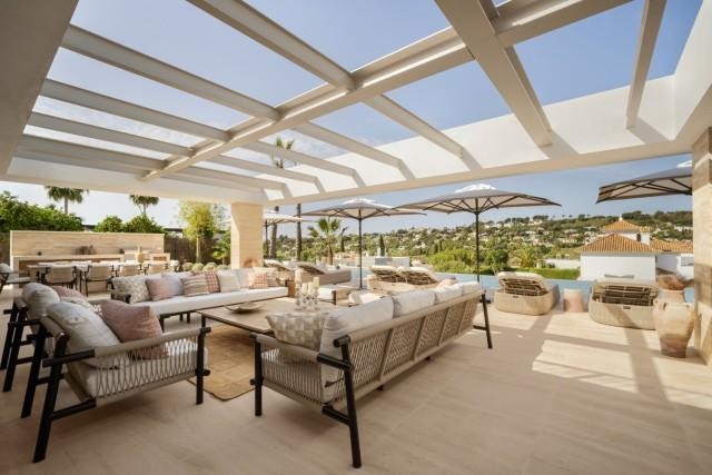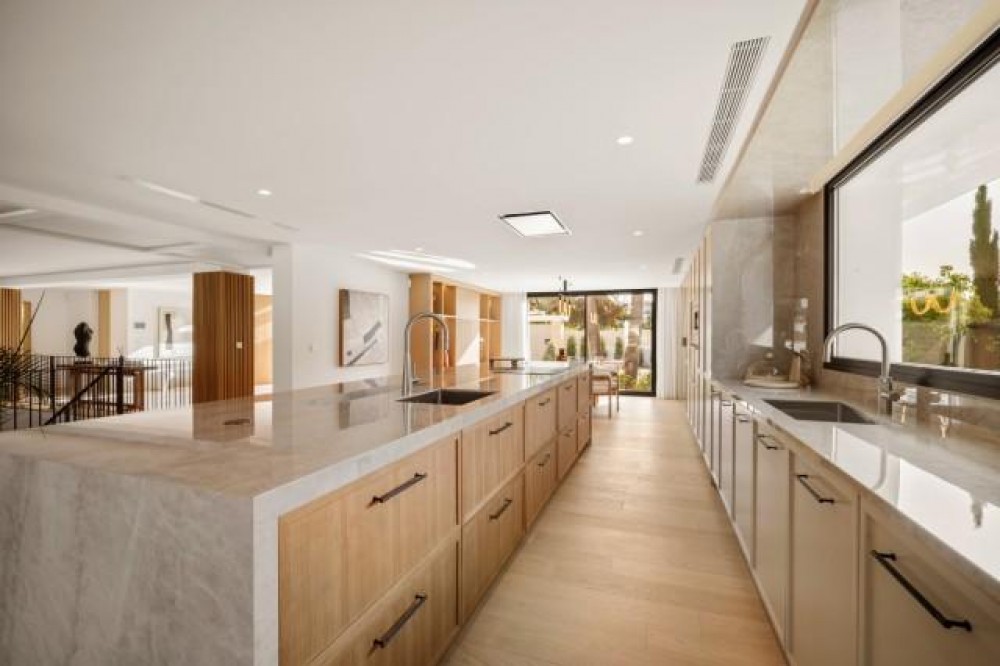 - Deze betoverende villa is gelegen in de felbegeerde Golfvallei van Nueva Andalucia in Marbella. Het is een uniek pand met een fascinerende architectuur die natuurlijke materialen harmonieus combineert met strakke, moderne designelementen. Van de symmetrische gevel tot het weelderige groen rondom de entree, deze woning straalt elegantie en verfijning uit. Scherpe lijnen, ruime glaspartijen en moderne details contrasteren prachtig met traditionele dakpannen die verwijzen naar de lokale cultuur en het erfgoed. De architectuur en het interieur vormen een verfijnde balans tussen innovatie en tijdloze traditie. De bouw is uitgevoerd met onberispelijk vakmanschap door een van de beste bouwbedrijven in Marbella, terwijl de weelderige, zorgvuldig samengestelde tuin de serene sfeer van de villa versterkt. De geavanceerde installaties garanderen een topniveau in comfort, veiligheid en efficiëntie. Binnenin heeft de villa een warme, moderne esthetiek met lichte neutrale tinten en natuurlijke materialen. Elegante houten elementen, zoals de geribbelde accentmuren die de woonkamer van de keuken scheiden, zorgen voor extra rijkdom en textuur. De woning beschikt over zes luxe slaapkamers en een indrukwekkende open woon- en eetkamer, ideaal om gasten te ontvangen of te genieten van ontspannen familiebijeenkomsten. Een van de meest opmerkelijke hoogtepunten van de woning is het panoramische uitzicht op de golfbaan, een zeldzaam en bevoorrecht kenmerk in de Aloha-enclave. Royale terrassen, een privézwembad en prachtig ontworpen buitenruimtes creëren een vredige, resortachtige sfeer voor diners bij zonsondergang en rustige ochtenden. Deze uitzonderlijke villa is een zeldzame mix van eigentijdse elegantie, natuurlijke schoonheid en mediterrane traditie - een waar juweel voor wie op zoek is naar een exclusieve levensstijl in Marbella's prestigieuze Golfvallei.