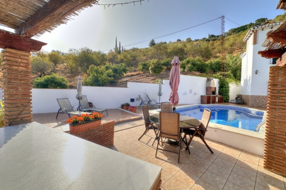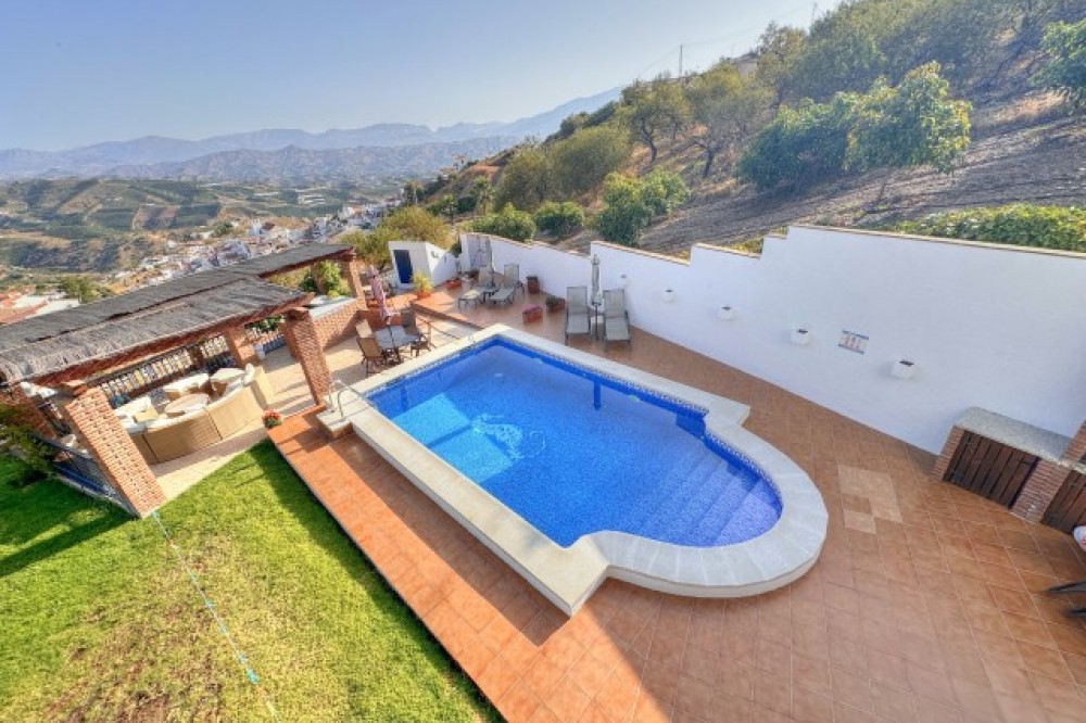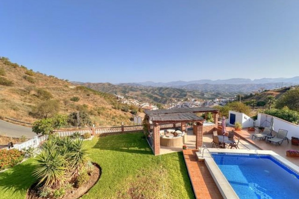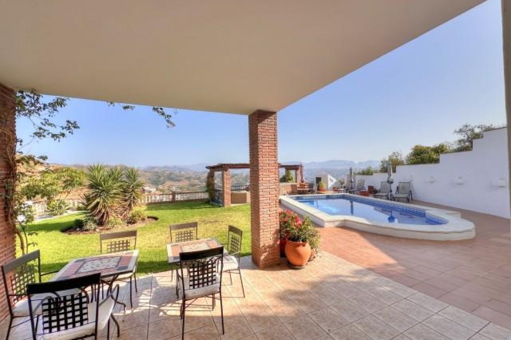 - Prachtige villa met panoramisch uitzicht - Succesvol B&B of elegant familiehuis In de buurt van Iznate | 15 minuten naar de kust | 30 minuten naar de luchthaven van Málaga Deze smetteloze villa heeft een benijdenswaardige ligging net buiten het charmante dorpje Iznate, op loopafstand van de lokale voorzieningen en op slechts 15 minuten van de kust. Het pand wordt momenteel gerund als een succesvolle bed & breakfast, maar leent zich ook uitstekend voor gebruik als een ruime privéwoning. Het hoofdgebouw biedt vier ruime tweepersoonsslaapkamers met eigen badkamer en een volledig zelfstandig appartement met een slaapkamer en een eigen ingang - ideaal voor gasten, uitgebreide familie of extra inkomsten uit verhuur. Buiten beschikt de villa over een prachtig zwembad met verreikend uitzicht op de omliggende bergen, een schaduwrijke chill-out zone en een bar - de perfecte ruimte om te ontspannen of te entertainen. Verschillende terrassen bieden zowel zon als schaduw gedurende de dag. Er is airconditioning in het hele pand, dat volledig gemeubileerd wordt verkocht en klaar is om van te genieten of te verhuren. Een grote garage biedt uitstekende mogelijkheden voor opslag of een werkplaats. Of je nu op zoek bent naar een rustig vakantieverblijf, een verandering van levensstijl met inkomstenpotentieel, of een huis voor altijd dichtbij de zee en het platteland, dit huis is zeker een bezichtiging waard.