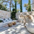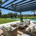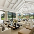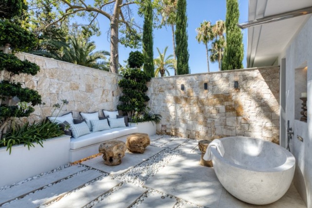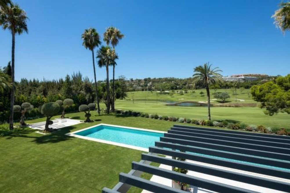 - Welkom in een buitengewone mediterrane villa aan de frontlinie van de golfbaan, op een onovertroffen locatie in het hart van Nueva Andalucía. Perfect gelegen met uitzicht op de prestigieuze, exclusieve Las Brisas Golf Club, biedt dit landgoed op het zuidwesten een spectaculair uitzicht op de zonsondergang en een levensstijl van luxe en rust. Gelegen in onberispelijk verzorgde tuinen met weelderige, mediterraan geïnspireerde landschapsarchitectuur, zijn de buitenruimtes van deze villa ontworpen voor het hele jaar door plezier. Een privézwembad staat centraal, aangevuld met een verzonken chill-out gedeelte voor ontspannen middagen en levendige avonden. De pergola in de tuin, compleet met een speciaal ontworpen bar en eethoek in de openlucht, creëert de ideale setting voor onvergetelijke bijeenkomsten in de buitenlucht. Stap binnen en ervaar het interieur dat verfijnde elegantie uitstraalt. Zachte, neutrale tinten en Crema Sara marmeren vloeren creëren een serene, verfijnde sfeer. De opvallende driehoekige daklijn wordt weerspiegeld in de woonkamer, waar hoge plafonds het gevoel van licht en openheid versterken. De eetkamer loopt naadloos over in een op maat ontworpen keuken, uitgerust met ultramoderne apparatuur, een royaal aanrechtblad en op maat gemaakte kasten – een perfecte balans tussen stijl en functionaliteit. Dit prachtige landhuis beschikt over een verzameling prachtig ingerichte gastenkamers, zowel op de begane grond als op de benedenverdieping, elk ontworpen voor maximaal comfort en privacy. De bovenverdieping is exclusief gewijd aan de master suite – een privé-oase met royale afmetingen, een luxe inloopkast, een weelderige en-suite badkamer en directe toegang tot een privéterras met panoramisch uitzicht over de golfbaan. De benedenverdieping van het landhuis nodigt u uit om te genieten van een scala aan eersteklas voorzieningen. Een luxe spa beschikt over een verwarmd binnenzwembad, een sauna en een Turks stoombad, terwijl een entertainmentruimte en een speciale bioscoopruimte voldoende ruimte bieden voor ontspanning en gezelligheid. Extra voorzieningen zijn onder andere een privégarage met ruimte voor maximaal vijf auto's, toegankelijk via een eigen oprit. Dit opmerkelijke landhuis profiteert van een bevoorrechte locatie in Nueva Andalucía en biedt gemakkelijke toegang tot een scala aan nabijgelegen voorzieningen, waaronder internationale scholen, golfbanen van wereldklasse, de jachthaven van Puerto Banús en de iconische Golden Mile van Marbella. Dit is een woning met een uitzonderlijke uitstraling, speciaal ontworpen voor veeleisende kopers die op zoek zijn naar luxe, privacy en een prestigieuze locatie aan de Costa del Sol.