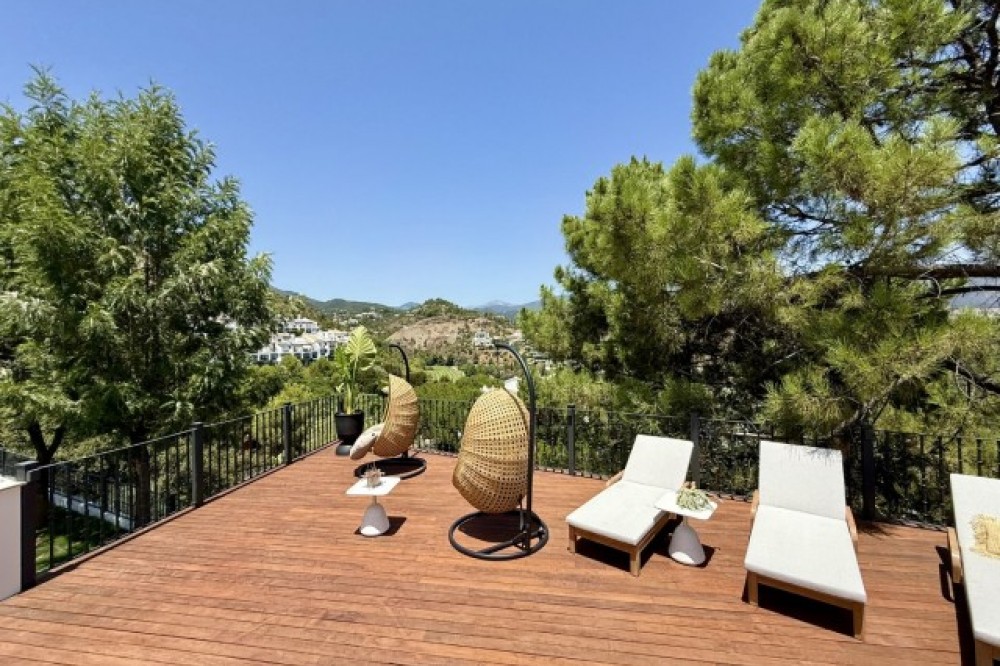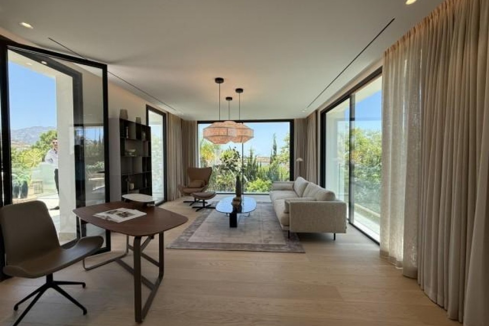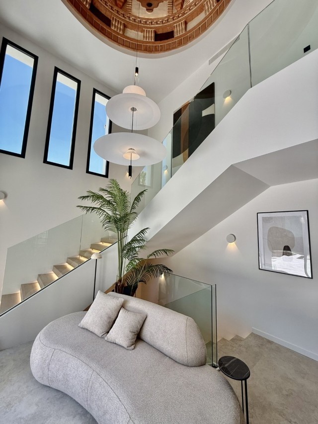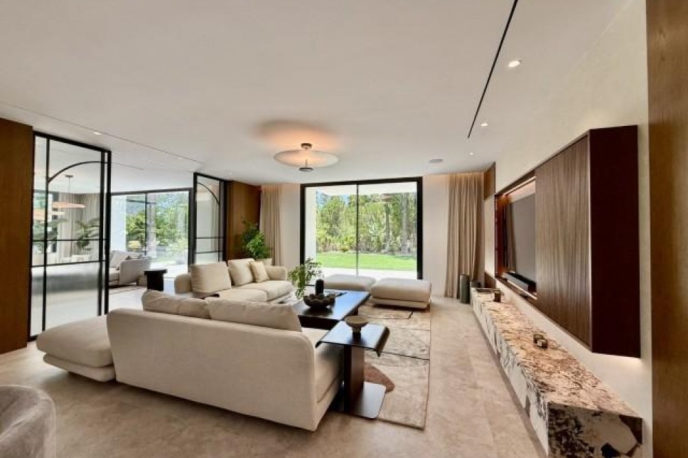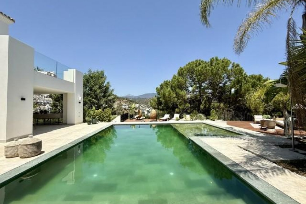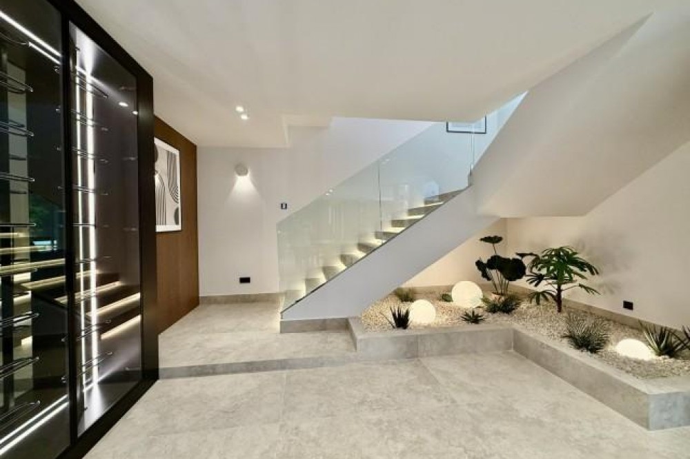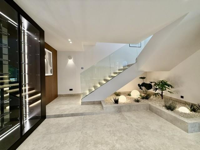 - Grentelend in de veilige en prestigieuze urbanisatie La Quinta, is deze buitengewone villa met 6 slaapkamers een naadloze mix van traditionele Andalusische charme en strakke, moderne verfijning. Deze unieke woning is volledig gerenoveerd volgens de hoogste normen met gebruikmaking van hoogwaardige materialen. Verdeeld over drie zorgvuldig ontworpen verdiepingen biedt de villa 727 m² elegante woonruimte (exclusief terrassen), aangevuld met een royaal perceel van 1.582 m². De woning wordt volledig gemeubileerd en instapklaar aangeboden, met een optioneel luxe meubelpakket beschikbaar voor € 200.000. De begane grond verwelkomt u met een ruime open ruimte met veel natuurlijk licht. Het beschikt over een luxe keuken met hoogwaardige apparatuur, stijlvolle loungeruimtes en een verfijnde gastensuite. Meerdere binnen- en buitenruimtes nodigen uit tot ontspannen gezinsleven en moeiteloos entertainment. Boven vindt u drie ruime slaapkamers, elk met een eigen terras met een prachtig uitzicht op de bergen en gedeeltelijk op zee. De master suite is een privéparadijs, compleet met een gezellige lounge, een op maat gemaakte inloopkast en een spa-achtige en-suite badkamer. De benedenverdieping herdefinieert luxe wellness en entertainment. Er is een privé fitnessruimte, een rustige spa met sauna, twee gastensuites, een wijnkelder, een wasruimte en een speelkamer – allemaal verlicht door overvloedig natuurlijk licht, een zeldzame eigenschap voor een benedenverdieping. Omringd door het adembenemende berglandschap van Marbella, biedt deze privévilla volledige rust en toch op slechts enkele minuten van golfbanen van wereldklasse, internationale scholen en de Golden Mile. Dit is meer dan een huis – het is een levensstijl en een onmisbare kans om een tijdloze luxe villa te bezitten op een van Marbella's meest gewilde locaties.