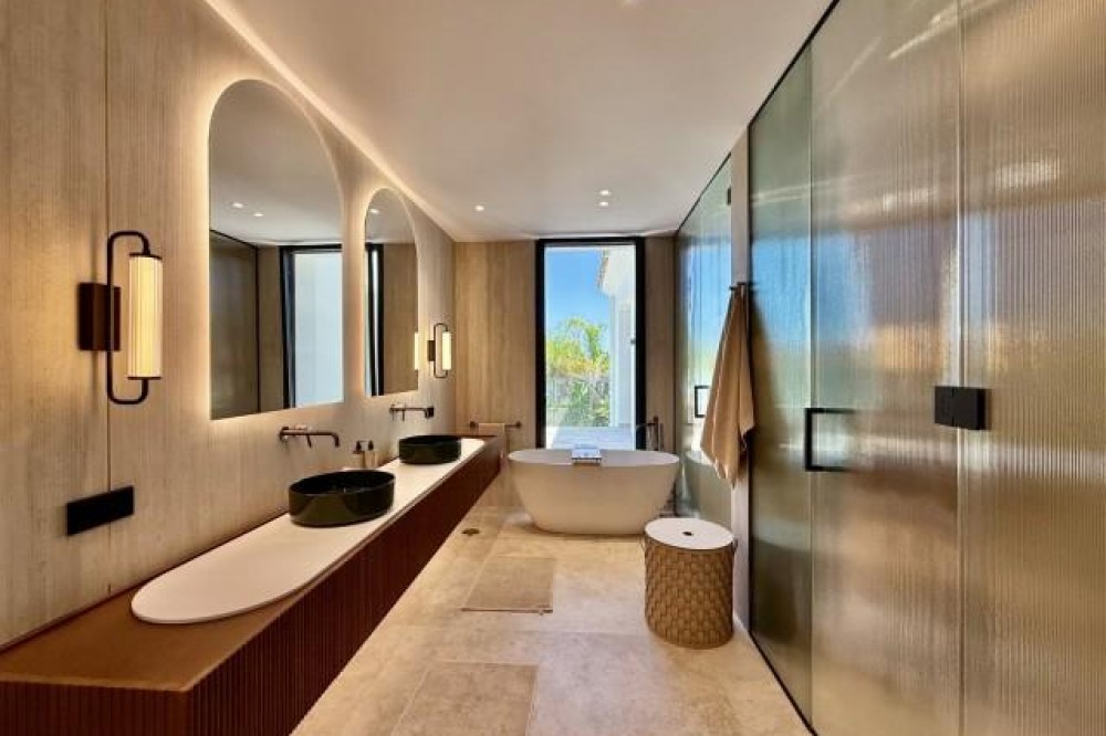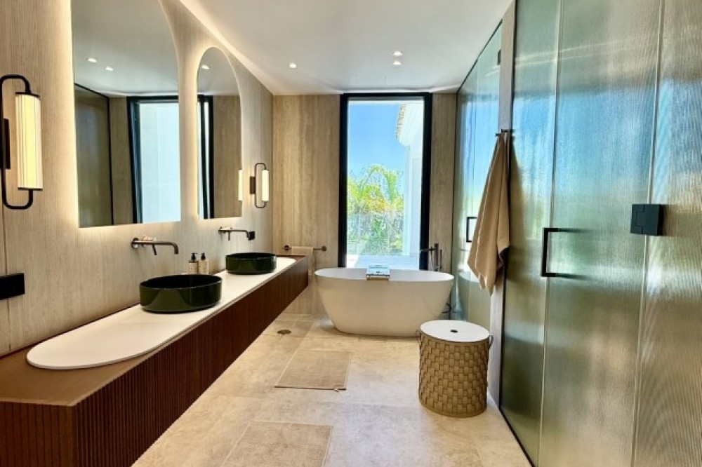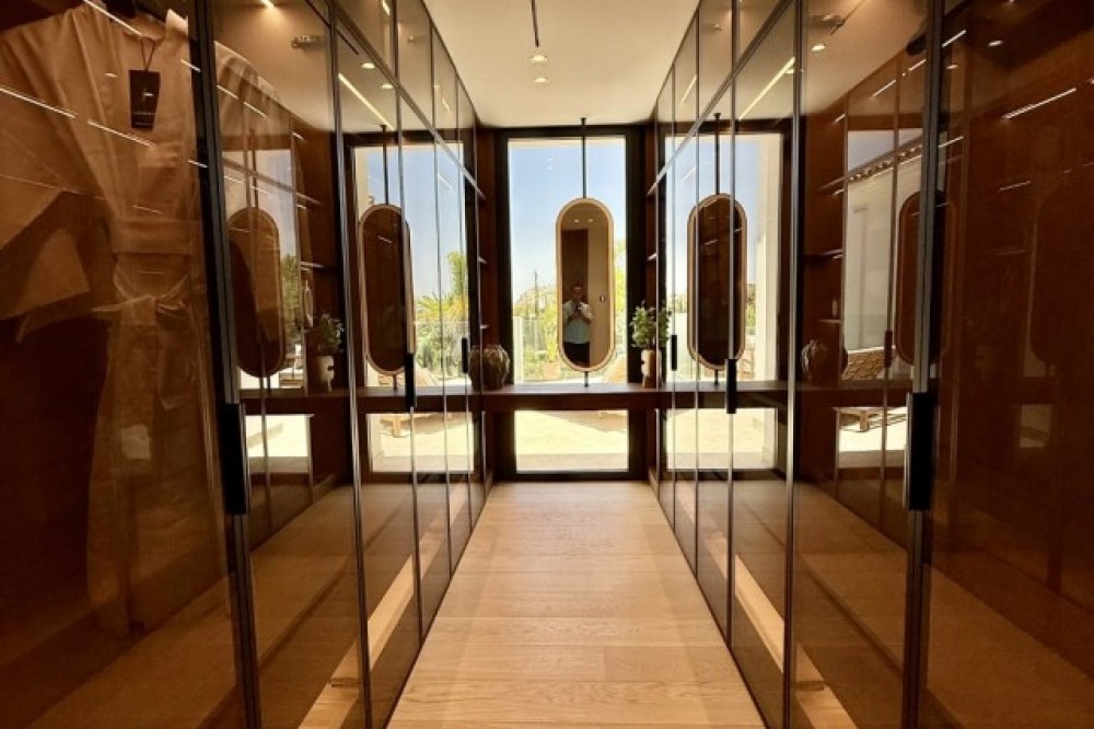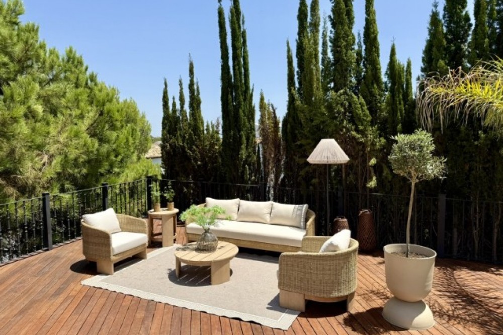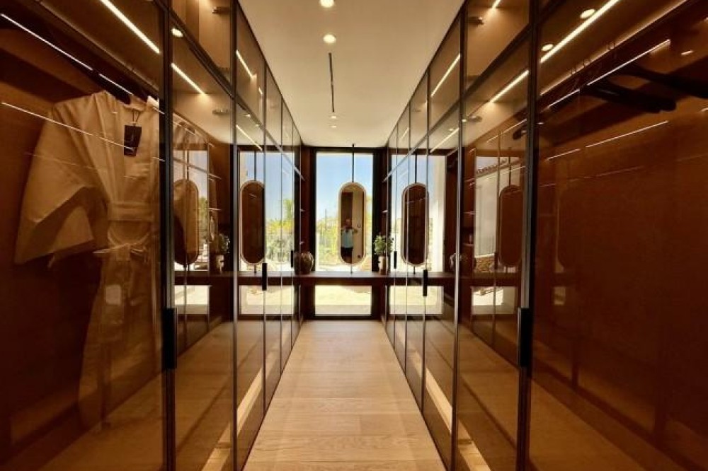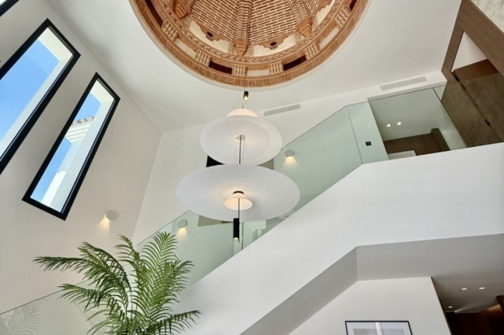 - Grentelend in de veilige en prestigieuze urbanisatie La Quinta, is deze buitengewone villa met 6 slaapkamers een naadloze mix van traditionele Andalusische charme en strakke, moderne verfijning. Deze unieke woning is volledig gerenoveerd volgens de hoogste normen met gebruikmaking van hoogwaardige materialen. Verdeeld over drie zorgvuldig ontworpen verdiepingen biedt de villa 727 m² elegante woonruimte (exclusief terrassen), aangevuld met een royaal perceel van 1.582 m². De woning wordt volledig gemeubileerd en instapklaar aangeboden, met een optioneel luxe meubelpakket beschikbaar voor € 200.000. De begane grond verwelkomt u met een ruime open ruimte met veel natuurlijk licht. Het beschikt over een luxe keuken met hoogwaardige apparatuur, stijlvolle loungeruimtes en een verfijnde gastensuite. Meerdere binnen- en buitenruimtes nodigen uit tot ontspannen gezinsleven en moeiteloos entertainment. Boven vindt u drie ruime slaapkamers, elk met een eigen terras met een prachtig uitzicht op de bergen en gedeeltelijk op zee. De master suite is een privéparadijs, compleet met een gezellige lounge, een op maat gemaakte inloopkast en een spa-achtige en-suite badkamer. De benedenverdieping herdefinieert luxe wellness en entertainment. Er is een privé fitnessruimte, een rustige spa met sauna, twee gastensuites, een wijnkelder, een wasruimte en een speelkamer – allemaal verlicht door overvloedig natuurlijk licht, een zeldzame eigenschap voor een benedenverdieping. Omringd door het adembenemende berglandschap van Marbella, biedt deze privévilla volledige rust en toch op slechts enkele minuten van golfbanen van wereldklasse, internationale scholen en de Golden Mile. Dit is meer dan een huis – het is een levensstijl en een onmisbare kans om een tijdloze luxe villa te bezitten op een van Marbella's meest gewilde locaties.