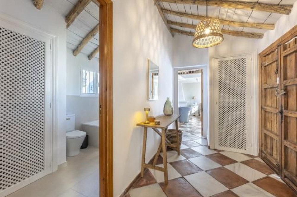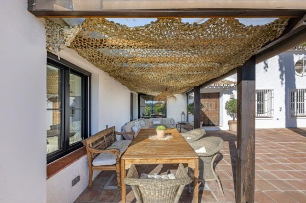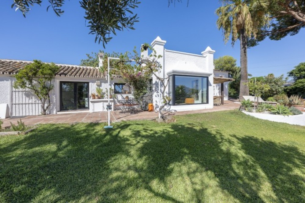 - Dit charmante landhuis is gelegen in een exclusieve omgeving en combineert op harmonieuze wijze de rust van het landelijke leven met de nabijheid van alle essentiële voorzieningen. Met een indrukwekkend panoramisch uitzicht op de idyllische natuur, een vredig meer en de majestueuze berg La Concha is deze woning een waar pareltje. Het huis is zorgvuldig ontworpen om de schoonheid van de omgeving te benadrukken. Grote ramen vullen de kamers met natuurlijk licht en bieden een adembenemend uitzicht, wat een rustige en ontspannen sfeer creëert. Op slechts vijf minuten rijden vindt u het winkelcentrum Guadalmina, met een verscheidenheid aan cafés, restaurants en winkels voor uw dagelijkse behoeften. Golfliefhebbers zullen het gemak van de beroemde Guadalmina Golf Club waarderen, die ook gemakkelijk bereikbaar is. Binnen ademt het huis een uitnodigende mix van rustieke charme en modern comfort. De karakteristieke houten plafonds geven het huis een warme, mediterrane sfeer. Momenteel beschikt de woning over drie slaapkamers en twee badkamers, met de mogelijkheid om uit te breiden naar zes slaapkamers - ideaal voor grotere gezinnen of gasten. Het hart van het huis is de ruime open keuken met geïntegreerde eethoek, met aangrenzende provisiekast voor voldoende opbergruimte. In 2023/24 onderging het huis een uitgebreide modernisering. De renovaties omvatten een compleet nieuwe keuken, volledig gerenoveerde badkamers, nieuwe ramen, nieuwe airconditioningunits voor zowel verwarming als koeling in de slaapkamers, een pelletkachel, een open haard met kanaalaansluiting en de volledige vernieuwing van de water- en elektriciteitssystemen, wat het comfort van een moderne woning garandeert. Het warme water wordt geleverd door een efficiënt aerothermisch systeem en er is een pre-installatie voor een fotovoltaïsch systeem, wat duurzame energieoplossingen biedt. Buiten bieden uitnodigende terrassen – zowel overdekt als open – de perfecte ruimtes voor ontspanning of gezellige bijeenkomsten. Er is voldoende ruimte voor een barbecueplek, ideaal om buiten te eten met familie en vrienden. De goed onderhouden tuin is voorzien van fruitbomen en extra ruimte voor een moestuin. Een carport voor twee auto's, die eenvoudig kan worden uitgebreid, draagt bij aan het gemak van de woning. De woning beschikt tevens over twee bijgebouwen: één dient momenteel als wasruimte en fitnessruimte, terwijl de andere als opslagruimte wordt gebruikt. Beide bijgebouwen zijn ruim en bieden talloze mogelijkheden. Ze kunnen worden omgebouwd tot twee aparte gastenverblijven met badkamers, een wellness- en fitnessruimte, of een thuiskantoor. Ondanks de nabijheid van populaire gebieden zoals Nueva Andalucía, La Quinta, San Pedro de Alcántara en Puerto Banús, behoudt de woning de sfeer van een vredige, landelijke retraite. Deze unieke combinatie van natuurlijke schoonheid, moderne functionaliteit en traditionele charme maakt dit landhuis een uitstekende keuze voor wie rust en comfort wil combineren.