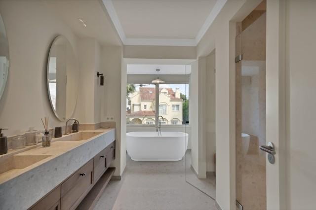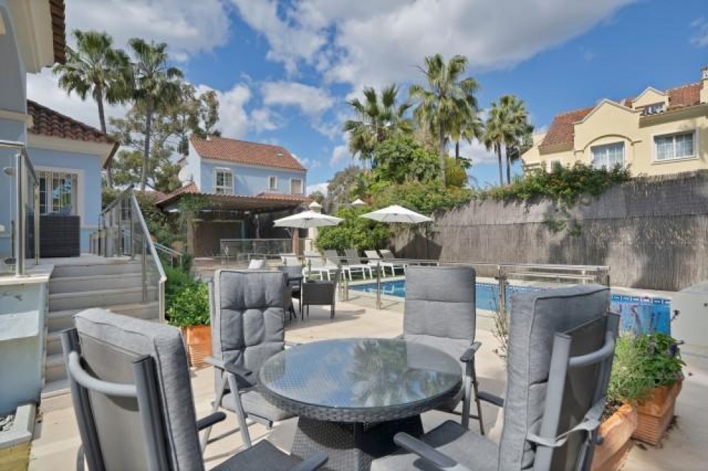 - Deze prachtig gerenoveerde, ruime halfvrijstaande villa met 7 slaapkamers en 3,5 badkamers is ideaal gelegen op slechts 50 meter van het strand en op korte loopafstand van Puerto Banús, luxe boetieks, restaurants en essentiële voorzieningen. Een uitzonderlijke kans voor een vakantieverblijf of een investering met een hoog rendement. Het ontwerp behoudt de originele Andalusische stijl, maar biedt binnen een naadloze overgang tussen binnen en buiten... De woning beschikt over een verwarmd privézwembad, een prachtig aangelegde tuin en een buitenfitnessruimte, zodat u actief kunt blijven in de frisse zeelucht. Op de benedenverdieping biedt een thuisbioscoop de perfecte entertainmentruimte, terwijl een carport voor twee auto's zorgt voor een veilige parkeerplaats. Naast de nabijheid van Puerto Banús, ligt de villa op loopafstand van de prachtige strandpromenade van San Pedro, een levendige boulevard met charmante restaurants en cafés, perfect voor dineren aan zee en wandelingen bij zonsondergang. Met een bewezen track record als goed presterende kortetermijnverhuur genereert deze villa een indrukwekkende € 8.400 per week in het laagseizoen en tot € 10.500 per week in het hoogseizoen, wat het een uitzonderlijke investeringskans maakt. Indeling van de woning Begane grond: 1 slaapkamer, 1 badkamer, woonkamer en keuken. Eerste verdieping: Hoofdslaapkamer met en-suite badkamer, plus 2 extra slaapkamers die een grote badkamer delen. Derde verdieping: 1 slaapkamer die ook als kantoor kan worden gebruikt, met een toilet. Kelder: Thuisbioscoop en 2 extra slaapkamers. Mis uw kans niet om eigenaar te worden van deze eersteklas woning aan het strand op een van de meest gewilde locaties van Marbella. Neem vandaag nog contact met ons op voor een privébezichtiging!