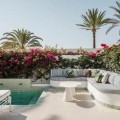 Uitzicht op tuin en zwembad