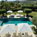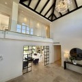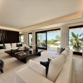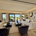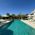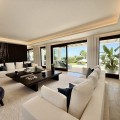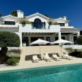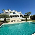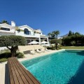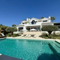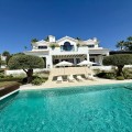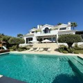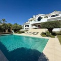 - Deze tijdloze, volledig gerenoveerde villa is gelegen op een toplocatie aan de hoogste straat van La Cerquilla, de meest prestigieuze woonwijk van Nueva Andalucía. Ontworpen voor modern wonen met behoud van klassieke elegantie, biedt de woning een panoramisch uitzicht over de Golfvallei richting de Middellandse Zee. Met meer dan 1.000 m² woonoppervlak verdeeld over drie verdiepingen en een perceel van bijna 3.000 m² is dit een van de grootste en meest indrukwekkende woningen in La Cerquilla. Een elegante entree met ruimte voor meerdere auto's verwelkomt u en leidt naar een hal met een hoogte van 2000 m² en een uitzonderlijk uitzicht op zee. De begane grond beschikt over een grote woonkamer, een eetgedeelte met zeezicht en een ruime open keuken met een aangrenzende tv-/familiekamer. Ramen van vloer tot plafond geven direct toegang tot een groot overdekt terras met een geïntegreerde barbecue, een eethoek en loungehoeken. Drie tweepersoons gastensuites op deze verdieping hebben elk een eigen badkamer en kleedkamer, waarvan twee suites uitzicht op zee hebben en uitkomen op een eigen terras. Boven bevinden zich nog drie slaapkamers, waaronder een grote master suite met een eigen terras met zeezicht, twee inloopkasten en een luxe badkamer. Een andere gastenslaapkamer biedt uitzicht op zee en een terras, terwijl de derde, momenteel in gebruik als kantoor, uitkijkt op de tuin. De benedenverdieping weerspiegelt de voorzieningen van Marbella's meest exclusieve villa's. Een groot binnenzwembad met natuurlijk licht, een sauna en doucheruimte en een professioneel uitgeruste fitnessruimte creëren een privé wellnessresort. Deze verdieping beschikt ook over een wijnkelder, een thuisbioscoop, een wasruimte en een garage voor 2-3 auto's met een aparte ingang, plus voldoende bergruimte. Buiten bieden volgroeide aangelegde tuinen een kinderbad, twee zonneterrassen en volledige privacy ten opzichte van de buren. Bewoners profiteren van 24-uurs beveiliging, waardoor deze villa een unieke kans is om een woning van wereldklasse te verwerven op een van Marbella's meest gewilde locaties.