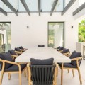 • Prachtige villa te koop in de gewilde wijk Nueva Andalucia, met een ideale combinatie van modern design, verfijnd comfort en een gezinsvriendelijke sfeer. Deze woning met vier slaapkamers en vier badkamers, die eenvoudig kan worden omgebouwd tot vijf slaapkamers, is verdeeld over drie verdiepingen en heeft een bebouwde oppervlakte van 360 vierkante meter. De woning beschikt over ruime interieurs, een privétuin en uitnodigende buitenruimtes, ontworpen om het warme klimaat van de regio te complementeren. De villa is onlangs gerenoveerd om de indeling en afwerking verder te verbeteren, waardoor deze nog aantrekkelijker is geworden voor diegenen die op zoek zijn naar een instapklare woning die stijl en functionaliteit combineert. De begane grond verwelkomt bewoners met een open concept dat de keuken, eetkamer en woonkamer naadloos met elkaar verbindt. Deze verdieping grenst direct aan een aangelegde tuin met een zwembad en een volledig uitgeruste buitenkeuken, ontworpen voor onvergetelijke bijeenkomsten. De zuidwestelijke ligging zorgt voor zonnige middagen en uitzicht op het zwembad en het weelderige groen, wat een ontspannen maar levendige omgeving creëert. Extra voorzieningen op deze verdieping zijn onder andere een gastentoilet en praktische bijkeukens die de dagelijkse functionaliteit garanderen. Op de eerste verdieping staan ​​privacy en comfort centraal met vier ruime slaapkamers. Twee slaapkamers hebben een eigen badkamer, wat extra privacy en gemak biedt voor familieleden of gasten. De master suite fungeert als een privé-retraite met een gezellige open haard, een ruime inloopkast en uitzicht op het zwembad. Boven, op de bovenste verdieping, bevindt zich een veelzijdige ruimte die momenteel als kantoor wordt gebruikt en eenvoudig kan worden aangepast aan verschillende behoeften, of het nu gaat om een ​​extra slaapkamer, fitnessruimte of recreatieruimte. Afdalend naar de kelderverdieping wordt entertainment het middelpunt. Deze verdieping beschikt over een speciale bioscoopzaal, een elegante wijnvitrine, een stijlvolle bar en voldoende opbergruimte, waardoor het de perfecte omgeving is voor filmavonden of privé-evenementen. Hoogwaardige afwerkingen, een neutraal kleurenpalet met rustgevende crèmetinten en het gebruik van hoogwaardige materialen in de hele villa creëren een sfeer van ingetogen verfijning, terwijl natuurlijk licht optimaal wordt benut. Nueva Andalucía staat bekend als een van de meest gewilde woonwijken aan de Costa del Sol. Gelegen op slechts een klein eindje rijden van het strand en de beroemde jachthaven van Puerto Banús, biedt het een levendige maar rustige omgeving. De wijk is vooral aantrekkelijk voor gezinnen en golfliefhebbers dankzij de overvloed aan prestigieuze golfbanen, waaronder Aloha Golf Club, Las Brisas en Los Naranjos. De woningen in dit gebied hebben vaak een moderne mediterrane architectuur, waarbij strakke lijnen worden gecombineerd met natuurlijke materialen voor een warme en uitnodigende sfeer. De culinaire scene in Nueva Andalucía is divers en aantrekkelijk. Populaire eetgelegenheden zijn onder andere Mosh Fun Kitchen vanwege de energieke sfeer en internationale gerechten, Occo Marbella voor verfijnde Libanese gerechten en El Dorado Restaurante voor verse visgerechten. Er zijn volop winkelmogelijkheden, met luxe boetieks en designerwinkels in het nabijgelegen Puerto Banús, evenals winkelcentrum Centro Plaza, waar een populaire wekelijkse markt wordt gehouden met ambachtelijke producten en verse lokale producten. Voor gezinnen met kinderen biedt Nueva Andalucía uitstekende onderwijsfaciliteiten, zoals Aloha College, bekend om zijn Britse curriculum, en de Marbella Montessori School, die zich richt op gepersonaliseerd, kindgericht leren. De omgeving biedt ook toegang tot hoogwaardige sport- en wellnessfaciliteiten, waaronder Manolo Santana Racquets Club, die tennis-, paddle- en fitnessdiensten aanbiedt in een sociale en gastvrije omgeving. De bereikbaarheid is een ander belangrijk voordeel van wonen in Nueva Andalucía. De wijk profiteert van efficiënte openbaarvervoersverbindingen, waaronder frequente busdiensten naar de omliggende gebieden en het centrum van Marbella. Gemakkelijke toegang tot de snelweg AP-7 zorgt voor een vlotte reis naar de luchthaven van Malaga en andere steden langs de kust, waardoor het een ideale locatie is voor zowel permanente bewoning als vakantie. Deze villa biedt een unieke kans om te genieten van een luxe maar comfortabele levensstijl in een van de meest prestigieuze wijken aan de Costa del Sol. Met zijn doordachte ontwerp, ruime indeling, moderne voorzieningen en toplocatie belichaamt deze woning de essentie van elegant wonen. Of u nu ontspant bij het zwembad, vrienden ontvangt in de entertainment-klare kelder of geniet van de diverse attracties van Nueva Andalucía, deze woning is een stijlvolle keuze voor iedereen die op zoek is naar een hoogwaardige woning.