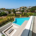 - Horizon Residence is een opmerkelijke architectonische creatie die verfijnd hedendaags design combineert met praktische luxe. Gelegen in de prestigieuze golfzone van Oost-Estepona, is deze villa met vier verdiepingen ontworpen door de gerenommeerde architect Francisco Martínez Galván en biedt een levensstijl die wordt gekenmerkt door licht, ruimte en verfijning. De woning beslaat een totale bebouwde oppervlakte van 674 m², inclusief 503 m² woonruimte binnen en 171 m² terrassen, zorgvuldig verdeeld om natuurlijk licht en buitenleven te maximaliseren. Elk aspect van het ontwerp is zorgvuldig ontworpen om een naadloze verbinding te creëren tussen elegante interieurs en het omringende landschap. Architectonische elegantie De aankomstervaring is onvergetelijk. Een eigen oprit leidt direct naar het dakterras, waar een panoramisch uitzicht zich uitstrekt over de weelderige fairways en de sprankelende Middellandse Zee. Dit uitzonderlijke uitkijkpunt beschikt over een jacuzzi en een ingebouwde barbecue, ideaal voor entertainment of rustige momenten bij zonsondergang. Afdalend naar de hoofdwoonverdieping, komt u in een open plattegrond die schoonheid en functionaliteit perfect in balans brengt. De woon- en eetruimtes zijn gecentreerd rond een op maat gemaakt kookeiland van natuursteen, aangevuld met een bijkeuken met een strakke en minimalistische uitstraling. Grote ramen van vloer tot plafond overspoelen het interieur met zonlicht en geven toegang tot het infinity zoutwaterzwembad, omgeven door volgroeide tropische beplanting - een oase van rust voor ontspanning en vrije tijd. Een gastenslaapkamer met en-suite badkamer completeert de begane grond en biedt comfort en toegankelijkheid voor bezoekers. Geïntegreerde plafondgeluidssystemen en vooraf geïnstalleerde smart home-technologie verhogen het gemak en de voorbereiding op modern wonen. Privé bovenverdieping De bovenverdieping is gewijd aan twee luxe slaapkamersuites. De mastersuite herdefinieert elegantie met een inloopkast, een badkamer met marmeren afwerking en een privéterras met ononderbroken uitzicht op zee. Een tweede slaapkamer met en-suite badkamer kijkt uit op de tuinen en creëert een rustige en uitnodigende sfeer. Veelzijdige benedenverdieping De kelderverdieping biedt flexibiliteit voor personalisatie. Toekomstige eigenaren kunnen extra slaapkamers, een eigen fitnessruimte, een spa of een thuisbioscoop creëren, allemaal met directe toegang tot de weelderige tuin. Deze ruimte biedt eindeloze mogelijkheden om de woning aan te passen aan uw individuele levensstijl. Ontwerp & Locatie Horizon Residence bevindt zich in een veilige, serene woonwijk, gekenmerkt door moderne architectuur en een natuurlijke omgeving. De wijk staat bekend om zijn luxe villa's en uitzicht op de golfbaan, wat een exclusieve maar gastvrije sfeer creëert die zowel lokale als internationale kopers aanspreekt. Bewoners genieten van gemakkelijke toegang tot gerenommeerde golfbanen, internationale scholen en stranden binnen enkele minuten. De omgeving biedt ook boetiekrestaurants, padelclubs en winkelmogelijkheden in de buurt. Met Marbella en Puerto Banús op korte rijafstand en de luchthaven van Málaga op slechts 45 minuten van de deur, garandeert deze locatie moeiteloze connectiviteit en gemak. Horizon Residence is meer dan een villa - het is een lifestyle-statement. Perfect voor gezinnen en veeleisende kopers die op zoek zijn naar een eigentijdse kustwoning. Het combineert architectonische precisie, ruimte en elegantie in een van de meest gewilde omgevingen van Estepona.