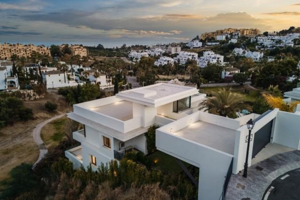 - Horizon Residence is een opmerkelijke architectonische creatie die verfijnd hedendaags design combineert met praktische luxe. Gelegen in de prestigieuze golfzone van Oost-Estepona, is deze villa met vier verdiepingen ontworpen door de gerenommeerde architect Francisco Martínez Galván en biedt een levensstijl die wordt gekenmerkt door licht, ruimte en verfijning. De woning beslaat een totale bebouwde oppervlakte van 674 m², inclusief 503 m² woonruimte binnen en 171 m² terrassen, zorgvuldig verdeeld om natuurlijk licht en buitenleven te maximaliseren. Elk aspect van het ontwerp is zorgvuldig ontworpen om een naadloze verbinding te creëren tussen elegante interieurs en het omringende landschap. Architectonische elegantie De aankomstervaring is onvergetelijk. Een eigen oprit leidt direct naar het dakterras, waar een panoramisch uitzicht zich uitstrekt over de weelderige fairways en de sprankelende Middellandse Zee. Dit uitzonderlijke uitkijkpunt beschikt over een jacuzzi en een ingebouwde barbecue, ideaal voor entertainment of rustige momenten bij zonsondergang. Afdalend naar de hoofdwoonverdieping, komt u in een open plattegrond die schoonheid en functionaliteit perfect in balans brengt. De woon- en eetruimtes zijn gecentreerd rond een op maat gemaakt kookeiland van natuursteen, aangevuld met een bijkeuken met een strakke en minimalistische uitstraling. Grote ramen van vloer tot plafond overspoelen het interieur met zonlicht en geven toegang tot het infinity zoutwaterzwembad, omgeven door volgroeide tropische beplanting - een oase van rust voor ontspanning en vrije tijd. Een gastenslaapkamer met en-suite badkamer completeert de begane grond en biedt comfort en toegankelijkheid voor bezoekers. Geïntegreerde plafondgeluidssystemen en vooraf geïnstalleerde smart home-technologie verhogen het gemak en de voorbereiding op modern wonen. Privé bovenverdieping De bovenverdieping is gewijd aan twee luxe slaapkamersuites. De mastersuite herdefinieert elegantie met een inloopkast, een badkamer met marmeren afwerking en een privéterras met ononderbroken uitzicht op zee. Een tweede slaapkamer met en-suite badkamer kijkt uit op de tuinen en creëert een rustige en uitnodigende sfeer. Veelzijdige benedenverdieping De kelderverdieping biedt flexibiliteit voor personalisatie. Toekomstige eigenaren kunnen extra slaapkamers, een eigen fitnessruimte, een spa of een thuisbioscoop creëren, allemaal met directe toegang tot de weelderige tuin. Deze ruimte biedt eindeloze mogelijkheden om de woning aan te passen aan uw individuele levensstijl. Ontwerp & Locatie Horizon Residence bevindt zich in een veilige, serene woonwijk, gekenmerkt door moderne architectuur en een natuurlijke omgeving. De wijk staat bekend om zijn luxe villa's en uitzicht op de golfbaan, wat een exclusieve maar gastvrije sfeer creëert die zowel lokale als internationale kopers aanspreekt. Bewoners genieten van gemakkelijke toegang tot gerenommeerde golfbanen, internationale scholen en stranden binnen enkele minuten. De omgeving biedt ook boetiekrestaurants, padelclubs en winkelmogelijkheden in de buurt. Met Marbella en Puerto Banús op korte rijafstand en de luchthaven van Málaga op slechts 45 minuten van de deur, garandeert deze locatie moeiteloze connectiviteit en gemak. Horizon Residence is meer dan een villa - het is een lifestyle-statement. Perfect voor gezinnen en veeleisende kopers die op zoek zijn naar een eigentijdse kustwoning. Het combineert architectonische precisie, ruimte en elegantie in een van de meest gewilde omgevingen van Estepona.