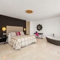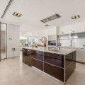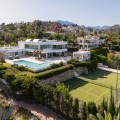 - Maak kennis met een prachtige, moderne villa in de prestigieuze wijk Nueva Andalucia's Golf Valley. Deze exclusieve woning met 7 slaapkamers staat op een royaal perceel van 2.548 m² en biedt ongeëvenaarde privacy en een panoramisch uitzicht op de iconische berg La Concha in Marbella en de Middellandse Zee. De toplocatie bevindt zich dicht bij topgolfbanen, internationale scholen, luxe restaurants en de levendige jachthaven van Puerto Banús, waardoor het een uitzonderlijke investering en lifestyle-keuze is. Kom binnen en ontdek ruime interieurs, zorgvuldig ontworpen met natuurlijke texturen en rijke afwerkingen. De villa beschikt over hoge plafonds, elegante verlichting en een harmonieuze overgang tussen binnen- en buitenleven. De belangrijkste woonruimtes zijn ruim en uitnodigend, versierd met op maat gemaakte meubels, organische materialen en zorgvuldig geselecteerde decoratieve elementen zoals geweven wandkunst en handgemaakt keramiek. De bovenverdieping heeft een rustige gang in galerijstijl met uitzicht op de begane grond, met directe toegang tot de slaapkamers met een weids uitzicht en privéterrassen. Het hart van de woning is een moderne keuken, uitgerust met hoogwaardige apparatuur, strakke kasten en een grote glazen eethoek met kamerhoge ramen. De naadloze verbinding met de buitenruimtes omvat een indrukwekkend zwembad met jacuzzi, ligstoelen in Balinese stijl en een overdekt terras met open haard en barbecue - perfect voor entertainment. Het beste is de ongerepte privétennisbaan aan het einde van de tuin, ideaal voor bewoners om het hele jaar door te gebruiken. Deze moderne woning belichaamt eigentijdse luxe in een mediterrane omgeving en biedt een ongeëvenaarde mix van comfort, verfijning en locatie.