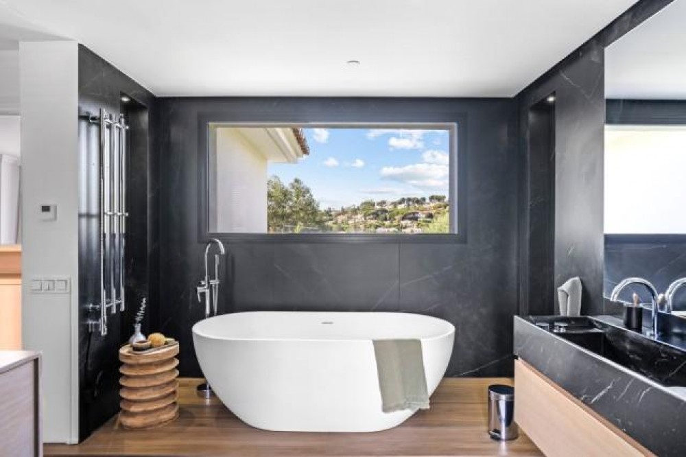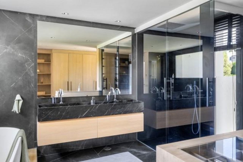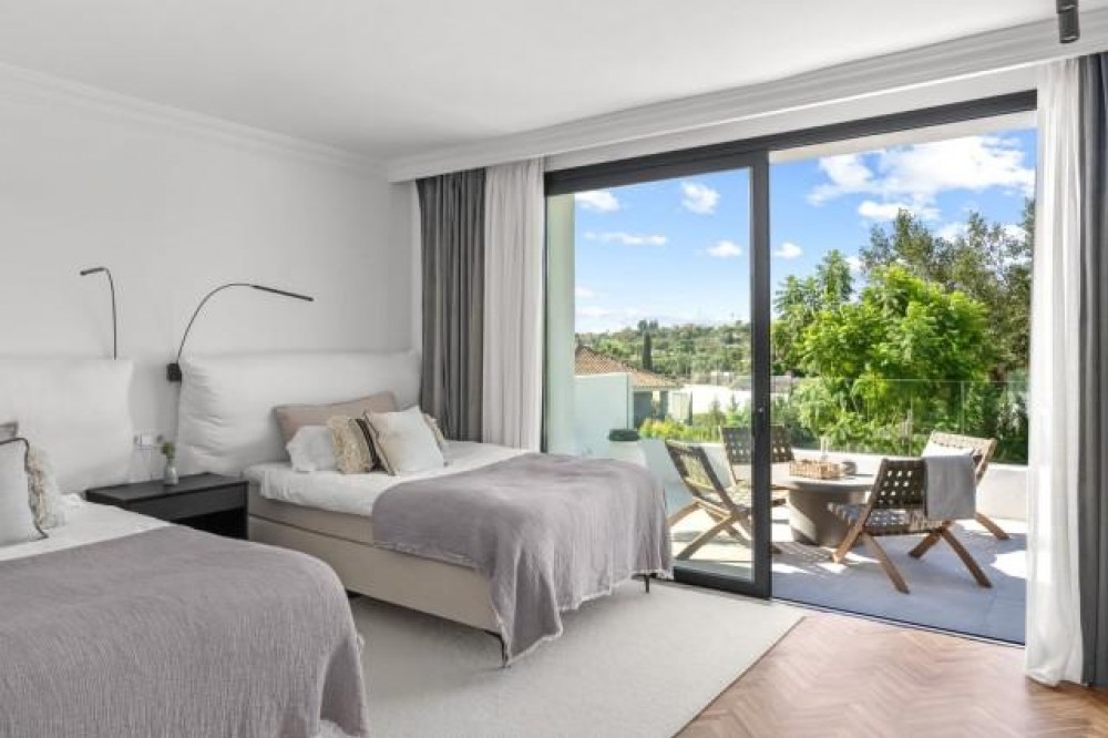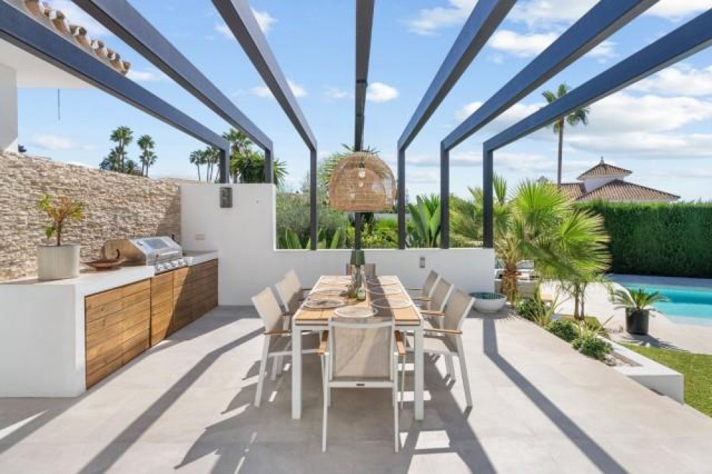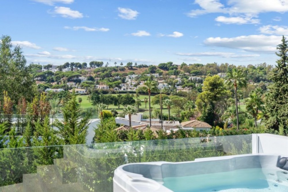 - Deze elegante villa met 5 slaapkamers te koop in Nueva Andalucía vat de essentie van het moderne mediterrane leven samen. De woning combineert tijdloze Andalusische charme met modern design en is volledig gerenoveerd tot een lichte, gastvrije woning, ideaal voor zowel gezinnen als golfliefhebbers. De villa is perfect gelegen op het zuidwesten, geniet de hele dag van overvloedig natuurlijk licht en biedt een adembenemend uitzicht op de omliggende golfbaan en de bergen. Gelegen op een perceel van 1.126 m² biedt de residentie 378 m² aan verfijnde woonruimte, aangevuld met royale terrassen, een verwarmd privézwembad en prachtig aangelegde tuinen, ontworpen voor ontspanning en entertainment. Binnen sluiten een open keuken en woonkamer naadloos aan op het overdekte terras, compleet met een stijlvolle buitenkeuken en pergola - perfect om het hele jaar door buiten te dineren. Het interieur benadrukt warmte en functionaliteit, met een gezellige open haard, hoogwaardige afwerking en elegante details. De master suite op de bovenverdieping komt uit op een privéterras met een jacuzzi onder de sterrenhemel, een serene oase met panoramisch uitzicht op de golfbaan. Drie extra slaapkamers op dezelfde verdieping bieden comfortabele accommodatie voor familie of gasten, terwijl twee veelzijdige kamers op de begane grond kunnen dienen als kantoor, speelkamer of extra slaapgedeelte. De benedenverdieping biedt een uitzonderlijke entertainmentzone met een tv-lounge, een speelhoek en een klimaatgestuurde wijnkelder – de perfecte ruimte voor bijeenkomsten en ontspanning. Een omgebouwde garage met fitnessruimte biedt gemak en flexibiliteit, terwijl de ruimte desgewenst nog steeds kan worden gebruikt als opslagruimte voor voertuigen. Buiten blijft de woning imponeren met een basketbalveld, een pizzaoven en meerdere loungeruimtes omgeven door weelderig groen. Met vloerverwarming, elektrische rolluiken en supersnel glasvezelinternet garandeert deze woning het hele jaar door comfort en modern wonen op zijn best. Of het nu gaat om een gezinswoning of een lucratieve verhuurinvestering, deze villa biedt een levensstijl van gemak, elegantie en recreatie in een van de meest prestigieuze woonwijken van Marbella.