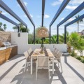 • Deze elegante villa met 5 slaapkamers te koop in Nueva Andalucía vat de essentie van het moderne mediterrane leven samen. De woning combineert tijdloze Andalusische charme met modern design en is volledig gerenoveerd tot een lichte, gastvrije woning, ideaal voor zowel gezinnen als golfliefhebbers. De villa is perfect gelegen op het zuidwesten, geniet de hele dag van overvloedig natuurlijk licht en biedt een adembenemend uitzicht op de omliggende golfbaan en de bergen. Gelegen op een perceel van 1.126 m² biedt de residentie 378 m² aan verfijnde woonruimte, aangevuld met royale terrassen, een verwarmd privézwembad en prachtig aangelegde tuinen, ontworpen voor ontspanning en entertainment. Binnen sluiten een open keuken en woonkamer naadloos aan op het overdekte terras, compleet met een stijlvolle buitenkeuken en pergola - perfect om het hele jaar door buiten te dineren. Het interieur benadrukt warmte en functionaliteit, met een gezellige open haard, hoogwaardige afwerking en elegante details. De master suite op de bovenverdieping komt uit op een privéterras met een jacuzzi onder de sterrenhemel, een serene oase met panoramisch uitzicht op de golfbaan. Drie extra slaapkamers op dezelfde verdieping bieden comfortabele accommodatie voor familie of gasten, terwijl twee veelzijdige kamers op de begane grond kunnen dienen als kantoor, speelkamer of extra slaapgedeelte. De benedenverdieping biedt een uitzonderlijke entertainmentzone met een tv-lounge, een speelhoek en een klimaatgestuurde wijnkelder – de perfecte ruimte voor bijeenkomsten en ontspanning. Een omgebouwde garage met fitnessruimte biedt gemak en flexibiliteit, terwijl de ruimte desgewenst nog steeds kan worden gebruikt als opslagruimte voor voertuigen. Buiten blijft de woning imponeren met een basketbalveld, een pizzaoven en meerdere loungeruimtes omgeven door weelderig groen. Met vloerverwarming, elektrische rolluiken en supersnel glasvezelinternet garandeert deze woning het hele jaar door comfort en modern wonen op zijn best. Of het nu gaat om een ​​gezinswoning of een lucratieve verhuurinvestering, deze villa biedt een levensstijl van gemak, elegantie en recreatie in een van de meest prestigieuze woonwijken van Marbella.