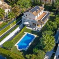 • Deze prachtig gerenoveerde villa, voltooid in 2024, combineert eigentijds Scandinavisch design met de warme, mediterrane sfeer. Gelegen in een van de meest gewilde woonwijken van Nueva Andalucía, biedt deze woning met vier slaapkamers de ideale balans tussen moderne stijl, functionaliteit en ontspannen luxe. De villa is verdeeld over drie verdiepingen en beschikt over een lichte, open indeling op de begane grond, waar de woonkamer, eetkamer en designkeuken naadloos in elkaar overlopen. De keuken, vervaardigd door het gerenommeerde Zweedse merk Ballingslöv, combineert strakke lijnen met uitzonderlijke functionaliteit en biedt een ideale ruimte om te koken, te socialiseren en te entertainen. Op deze verdieping bevindt zich tevens een gastenslaapkamer en een complete badkamer met inloopdouche. De bovenste verdieping biedt twee ruime slaapkamersuites, elk met een elegante en-suite badkamer en directe toegang tot een zonnig terras. Vanaf hier kunt u genieten van een prachtig uitzicht en rustige momenten gedurende de dag. De benedenverdieping is ontworpen voor comfort en gemak en biedt een privé gastensuite met eigen badkamer, een aparte wasruimte, een volledig uitgeruste fitnessruimte en een ruime garage met plaats voor minstens twee auto's. De villa, gelegen op een perceel van 876 m², geniet van een uitzonderlijke buitenruimte met aangelegde tuinen, een privézwembad, zonnige terrassen en uitnodigende ontspanningszones. Of het nu als permanente woning of als vakantiehuis wordt gebruikt, deze villa biedt stijl, comfort en een ongeëvenaarde levensstijl in de buurt van golfbanen, internationale scholen, restaurants en alle voorzieningen.