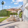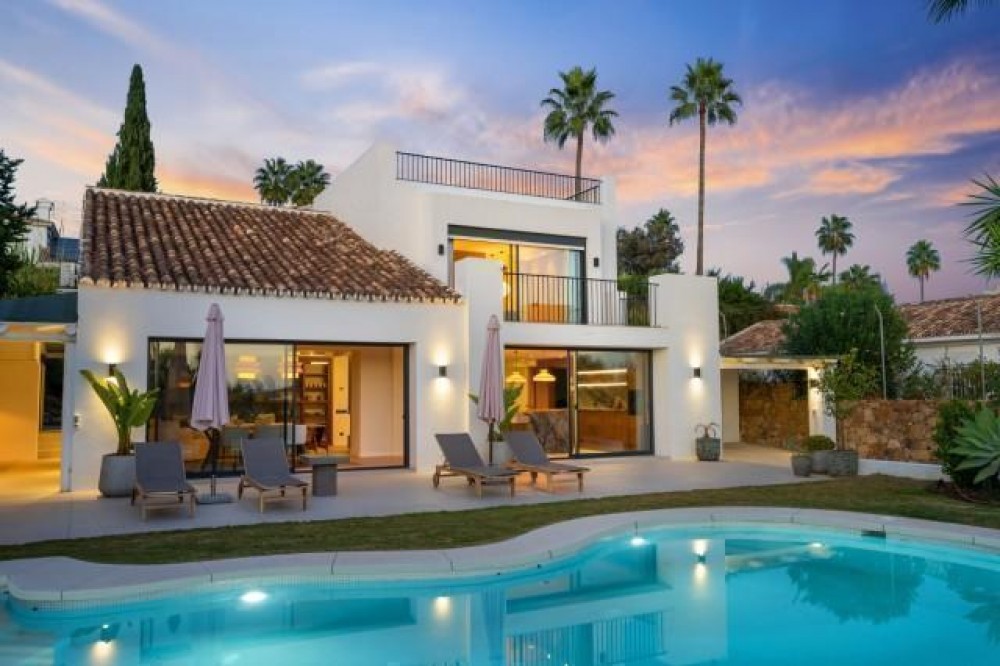 - Deze uitzonderlijke villa in Scandinavische stijl, te koop in Nueva Andalucía, Marbella, biedt een perfecte balans tussen modern design, natuurlijk licht en een toplocatie. Gelegen op korte loopafstand van een gerenommeerde golfbaan, geniet de woning van een rustige woonomgeving, terwijl alle essentiële voorzieningen, internationale scholen, stranden en Puerto Banús toch binnen handbereik zijn. De villa is doordacht ontworpen rondom lichte, open leefruimtes die optimaal profiteren van licht en een vloeiende overgang creëren. Hoge plafonds en kamerhoge glazen deuren zorgen direct voor een ruimtelijk gevoel en verbinden het interieur naadloos met de buitenruimte. Een gezellige open haard voegt warmte en karakter toe aan de woonkamer, waardoor deze ideaal is voor zowel dagelijks gebruik als voor het ontvangen van gasten. Het hart van de woning wordt gevormd door een strakke, moderne keuken, uitgerust met hoogwaardige Miele-apparatuur, ruime opbergruimte en elegante afwerkingen. De open indeling zorgt voor een moeiteloze interactie tussen de keuken, eetkamer en woonkamer, wat zowel de functionaliteit als het comfort ten goede komt. De begane grond biedt plaats aan twee ruime tweepersoonsslaapkamers en een extra slaapkamer, alle met moderne badkamers voorzien van vloerverwarming. Elke ruimte is ontworpen met strakke Scandinavische lijnen, neutrale tinten en hoogwaardige materialen die een rustige en tijdloze sfeer creëren. De bovenverdieping is volledig gewijd aan de privé-hoofdslaapkamer, compleet met een inloopkast, een luxe en-suite badkamer en directe toegang tot een privéterras. Vanaf hier leidt een trap naar een panoramisch dakterras met een weids uitzicht en een ideale plek om te ontspannen, te entertainen of het hele jaar door te genieten van het klimaat van Marbella. Buiten beschikt de villa over een privézwembad en een aangelegde tuin, die privacy en een rustige omgeving bieden om buiten te leven. Een overdekte carport met ruimte voor drie tot vier auto's is voorzien van een laadpunt voor elektrische auto's, wat zowel gemak als duurzaamheid biedt. Deze woning is een uitstekende kans voor kopers die op zoek zijn naar een modern gezinswoning, een stijlvol vakantiehuis of een gewilde investering in een van de meest gewilde woonwijken van Marbella.