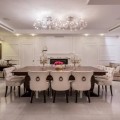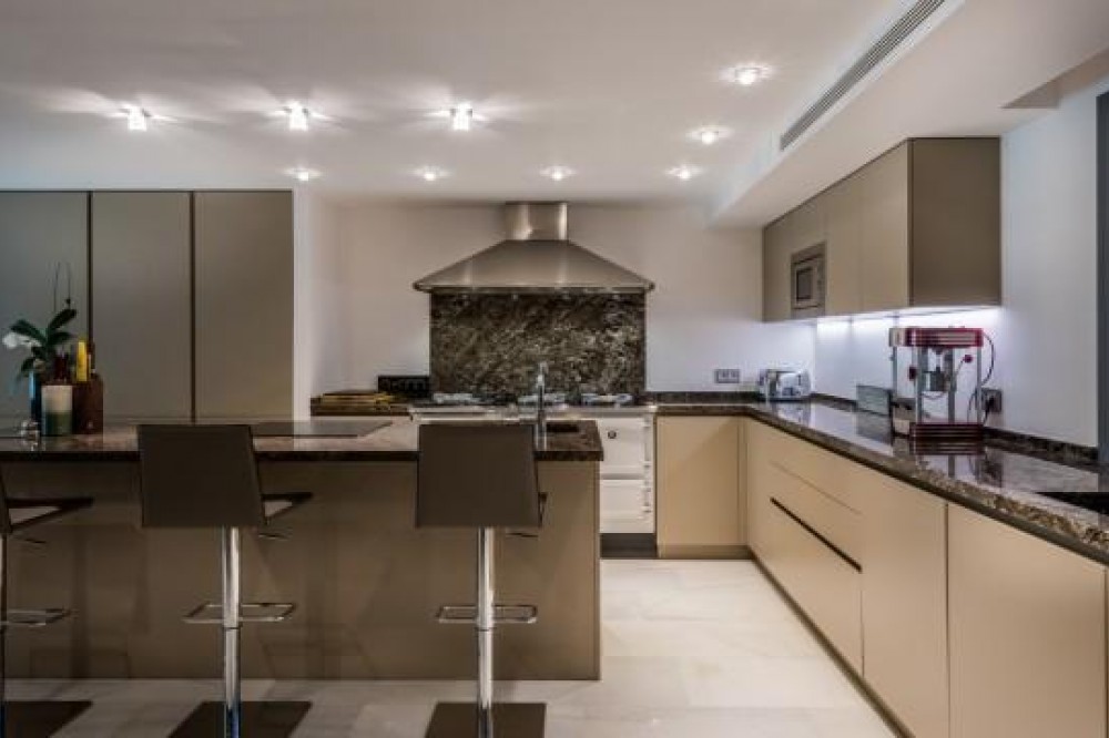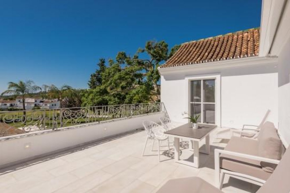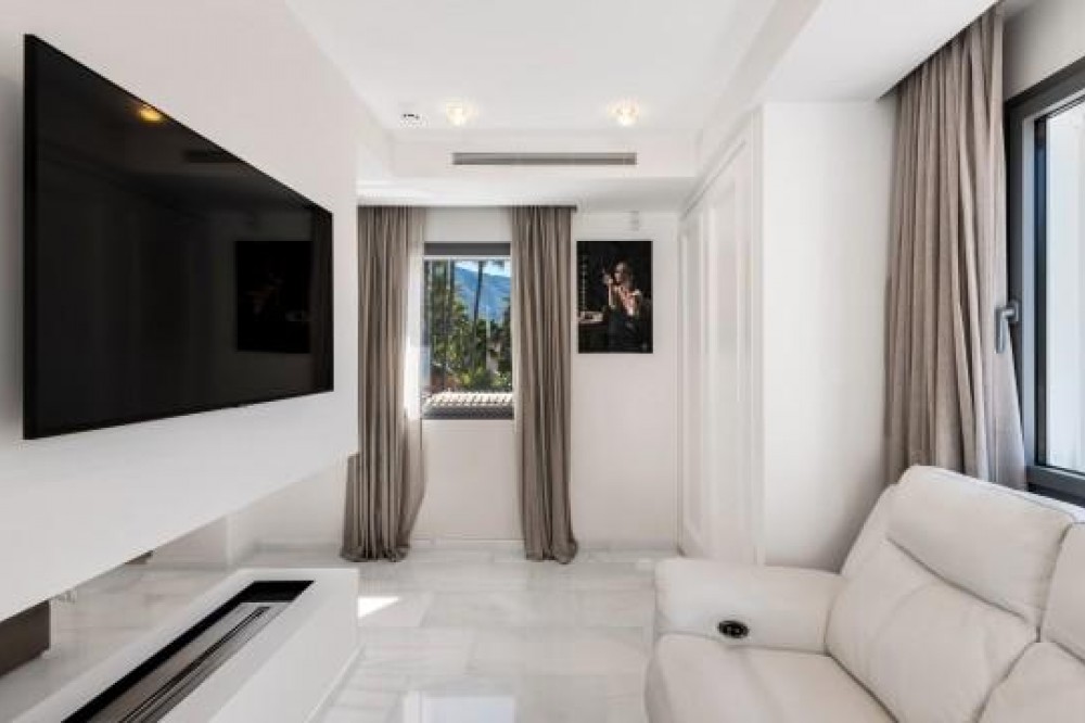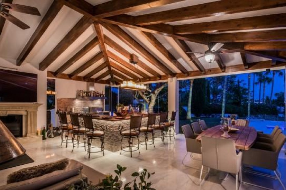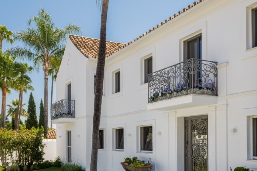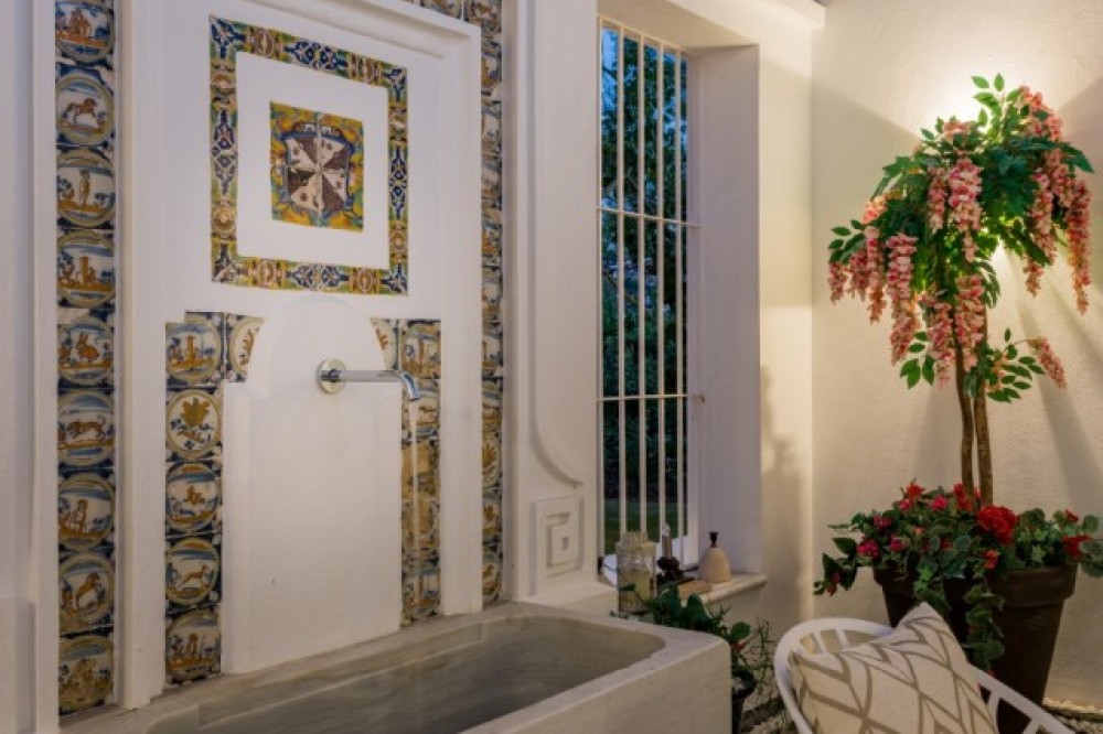 - Deze elegante luxe villa is gelegen op een ruim perceel van 2.671 m² in een van de meest prestigieuze woonwijken van Nueva Andalucía en biedt een verfijnde mix van architectonisch karakter, royale afmetingen en een uitzonderlijke buitenruimte. De woning beschikt over zes ruime slaapkamers, die allemaal zorgvuldig zijn gepositioneerd om te genieten van privacy en een weelderig groen uitzicht. Een opvallende verticale tuin scheidt de slaapvleugel van de woonruimtes en creëert een serene sfeer in het hele huis. Voor extra gemak verbindt een privétrap de carport direct met de slaapverdieping, waardoor discreet en gemakkelijk toegang mogelijk is zonder door de woonruimtes te hoeven lopen. De hoofdwoning is zowel stijlvol als uitnodigend, met een elegante open haard als middelpunt en aangevuld met op maat gemaakte planken met sfeerverlichting en zorgvuldig geselecteerde kunstwerken. Een aparte formele eetkamer biedt een elegante setting voor het ontvangen van gasten, compleet met een grote houten eettafel, gestoffeerde stoelen, twee kroonluchters en een eigen open haard. De moderne keuken is volledig uitgerust met hoogwaardige apparatuur, taupekleurige kasten, donkere stenen werkbladen en een kookeiland. Een aangrenzende informele eethoek geeft direct toegang tot de tuin, terwijl een tweede lounge met zichtbare houten balken, een bar en een stenen open haard een ontspannen maar verfijnde sfeer creëert die naadloos overgaat in het terras en het zwembad. Buitenleven is een belangrijk pluspunt van deze villa. De aangelegde tuinen beschikken over perfect onderhouden gazons, volwassen bomen voor privacy en diverse zit- en eethoeken, ontworpen om het hele jaar door van te genieten. Het grote zwembad, compleet met een verhoogd gedeelte en een waterval, vormt het middelpunt van de buitenruimte. Een charmante betegelde binnenplaats met een decoratieve fontein versterkt het gevoel van mediterrane elegantie. Een zeldzaam en zeer gewild kenmerk van deze woning is de directe toegang tot een gerenommeerde golfbaan, met privépaden die breed genoeg zijn voor een golfkarretje – een uitzonderlijk voordeel voor golfliefhebbers. Modern comfort omvat airconditioning en vloerverwarming, individueel regelbaar in elke kamer, waardoor u de temperatuur in het hele huis naar wens kunt regelen. Een uitgebreid smart home-systeem (domotica) integreert naadloos met mobiele apparaten en biedt de mogelijkheid om verlichting, klimaatbeheersing en beveiliging op afstand te beheren. Met zijn royale indeling, aangelegde tuin, geavanceerde technologie en unieke toegang tot de golfbaan, biedt deze villa een uitstekende kans om een luxe gezinswoning of een hoogwaardig investeringsobject te verwerven op een van de meest gewilde locaties van Marbella, dicht bij golfbanen van wereldklasse, stranden en alle essentiële voorzieningen.