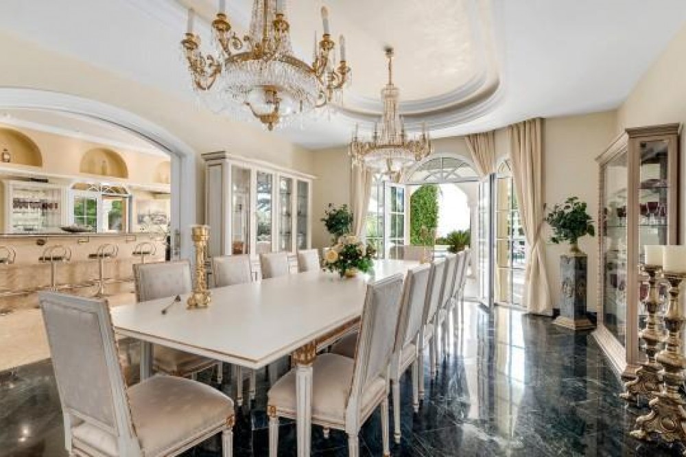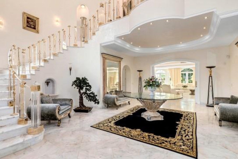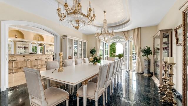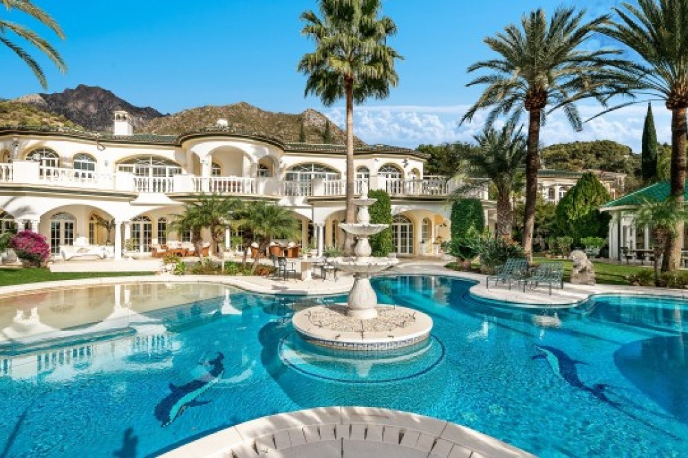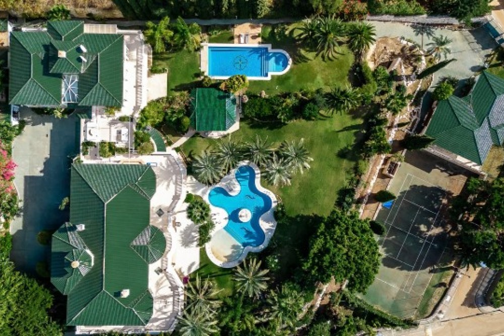 - Gelegen in een van Marbella's meest exclusieve gated communities op een heuvel, biedt dit buitengewone luxe landhuis een zeldzame kans om een iconisch pand te verwerven met panoramisch uitzicht op zee, absolute privacy en uitzonderlijke omvang. Gelegen op een verhoogd perceel van circa 7.200 m², geniet het landgoed van adembenemende vergezichten over de Middellandse Zeekust, de bergen en het omliggende natuurlandschap. Het pand bestaat uit drie onafhankelijke woningen, die uitzonderlijke flexibiliteit bieden voor gezinsbewoning, gastenverblijf of herontwikkeling tot één ultraluxe villa. De hoofdwoning beschikt over vier slaapkamers met eigen badkamer en vormt het hart van het landgoed, terwijl een aangrenzende en intern verbonden gastenwoning zeven extra slaapkamers, meerdere keukens en royale woonruimtes biedt. Een derde, volledig onafhankelijke gastenvilla biedt vier slaapkamers en een eigen tennisbaan, waardoor deze ideaal is voor familieleden, personeel of bezoekende gasten. Via een imposante privépoort bereikt u het landgoed, dat uitkomt op een statige oprit met ruime parkeergelegenheid. Deze omvat een ondergrondse garage voor vier auto's, twee overdekte parkeerplaatsen op de begane grond en extra parkeergelegenheid buiten voor maximaal acht auto's. Bij binnenkomst in de hoofdwoning zet een spectaculaire, dubbelhoge hal met een majestueuze trap de toon voor het verfijnde interieur. De begane grond beschikt over een elegante ontvangstsalon met openslaande deuren die de ruimte overspoelen met natuurlijk licht, een formele eetkamer met plaats voor maximaal twaalf gasten, een volledig uitgeruste keuken, een privékantoor en een goed uitgeruste fitnessruimte. Een opvallende bar verbindt de binnenruimtes naadloos met de ruime terrassen, die ideaal zijn voor het organiseren van grote bijeenkomsten met een ononderbroken uitzicht op zee. Grenzend aan de keuken bevindt zich een was- en servicegedeelte met directe toegang tot de garages voor extra gemak. De bovenverdieping herbergt vier luxe slaapkamers met eigen badkamer, die allemaal profiteren van een vrij uitzicht en directe toegang tot de terrassen. Deze verdieping is intern verbonden met het aangrenzende gastenverblijf, dat zeven slaapkamers, meerdere badkamers en drie keukens omvat, wat een zeldzame mate van privacy binnen één landgoed biedt. De benedenverdieping van het hoofdhuis biedt extra garageruimte, bergingen en de technische ruimtes van het pand. Zowel het hoofdhuis als het aangrenzende gastenverblijf beschikken over eigen aangelegde tuinen en verwarmde privézwembaden, ontworpen om onafhankelijk van elkaar te functioneren en tegelijkertijd een harmonieuze esthetiek over het hele landgoed te behouden. Volwassen tuinen, ruime terrassen en open gazons creëren een serene omgeving, ideaal om het hele jaar door buiten te leven. Met zijn omvang, verhoogde ligging en toplocatie biedt dit landgoed ook een opmerkelijke herontwikkelingsmogelijkheid, met de potentie om het pand te transformeren tot een eigentijdse ultraluxe villa met een waarde van meer dan € 35 miljoen. Of het nu behouden blijft als een complex met meerdere woningen of wordt herontworpen als één iconische woning, dit is een werkelijk unieke investering in het topsegment van de luxe vastgoedmarkt van Marbella.