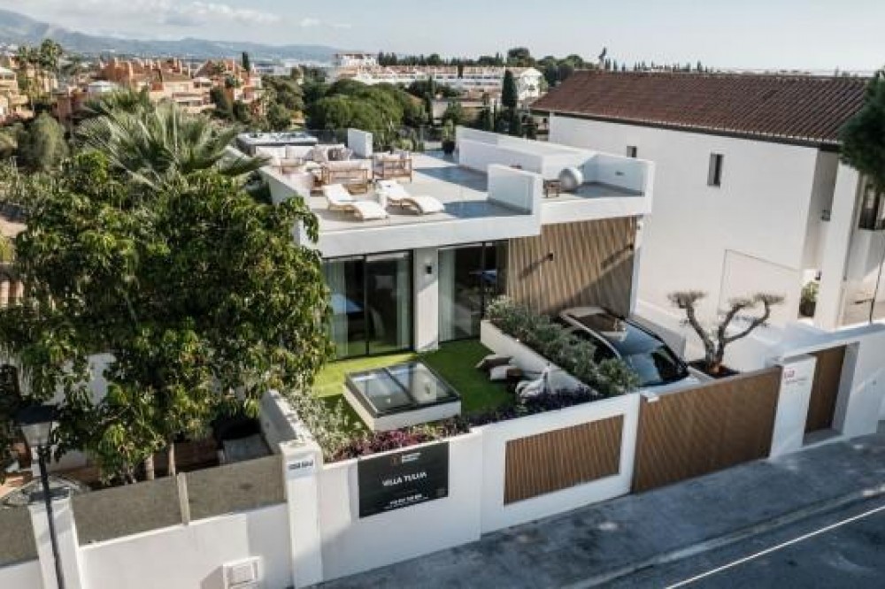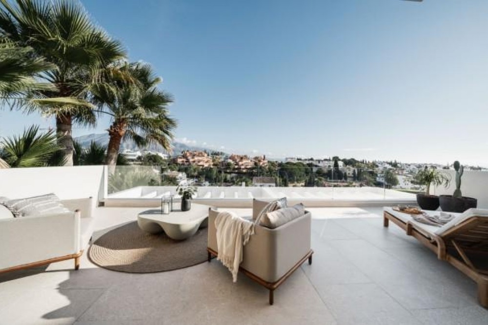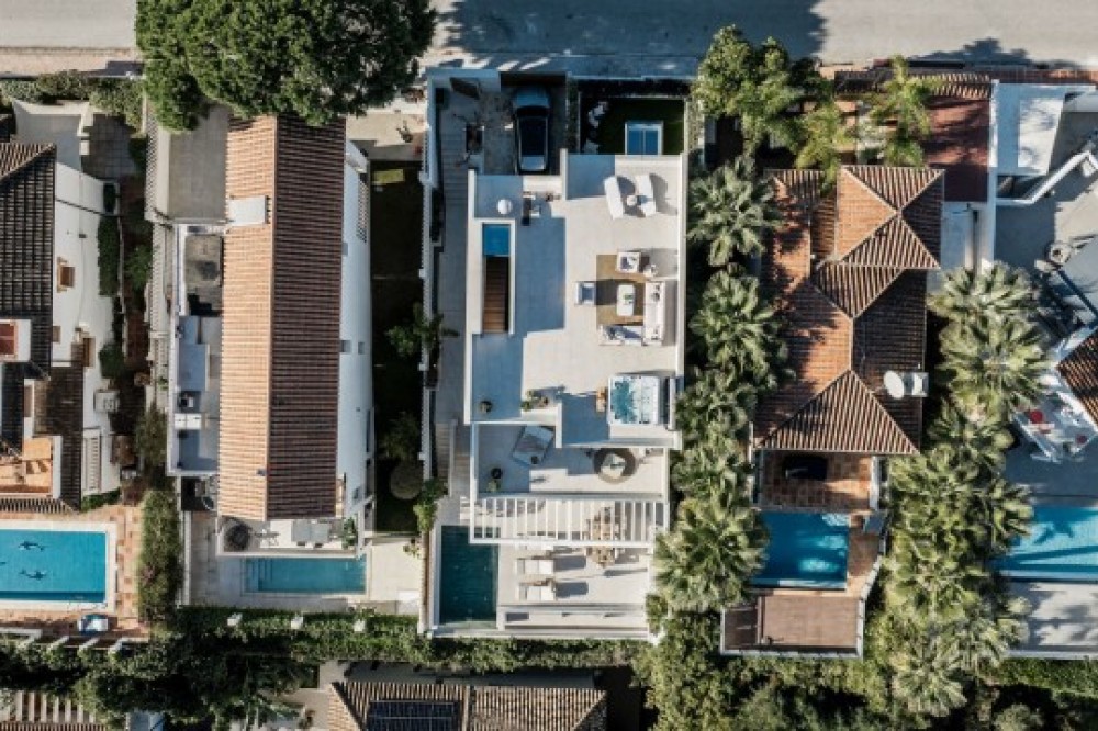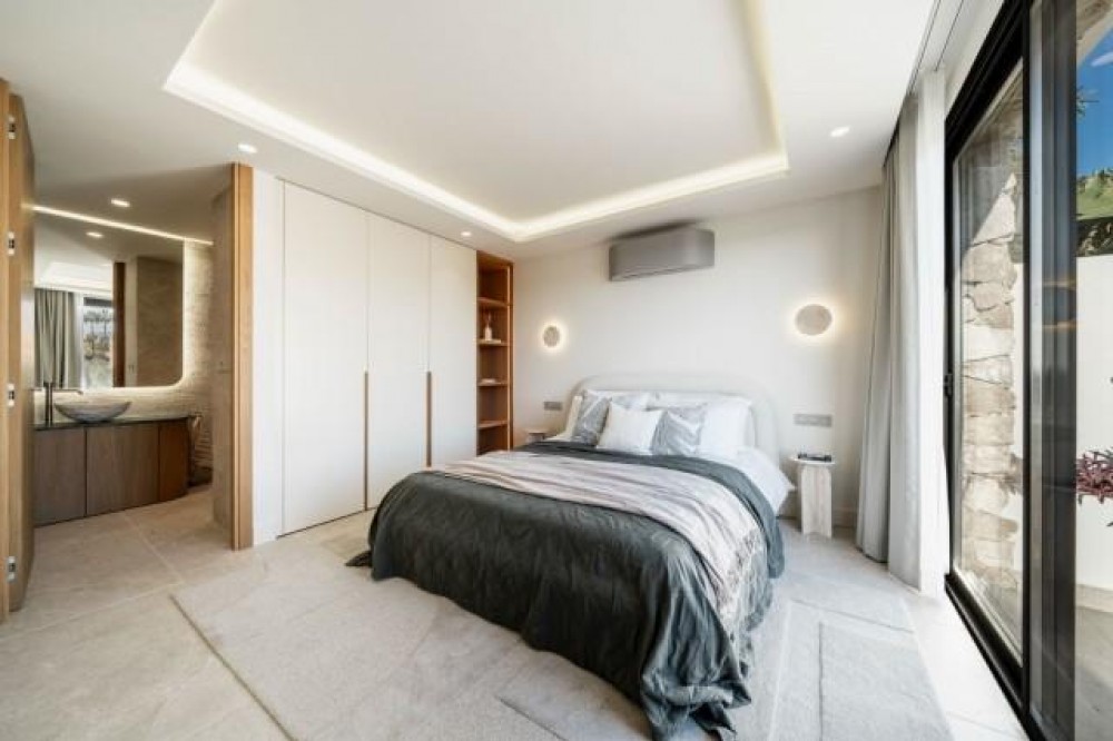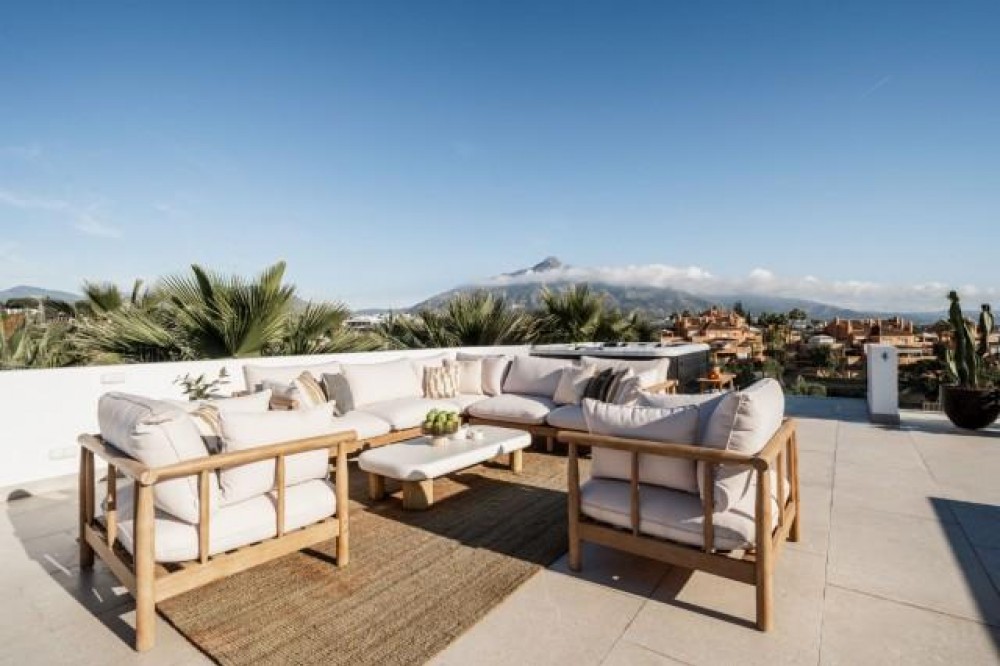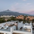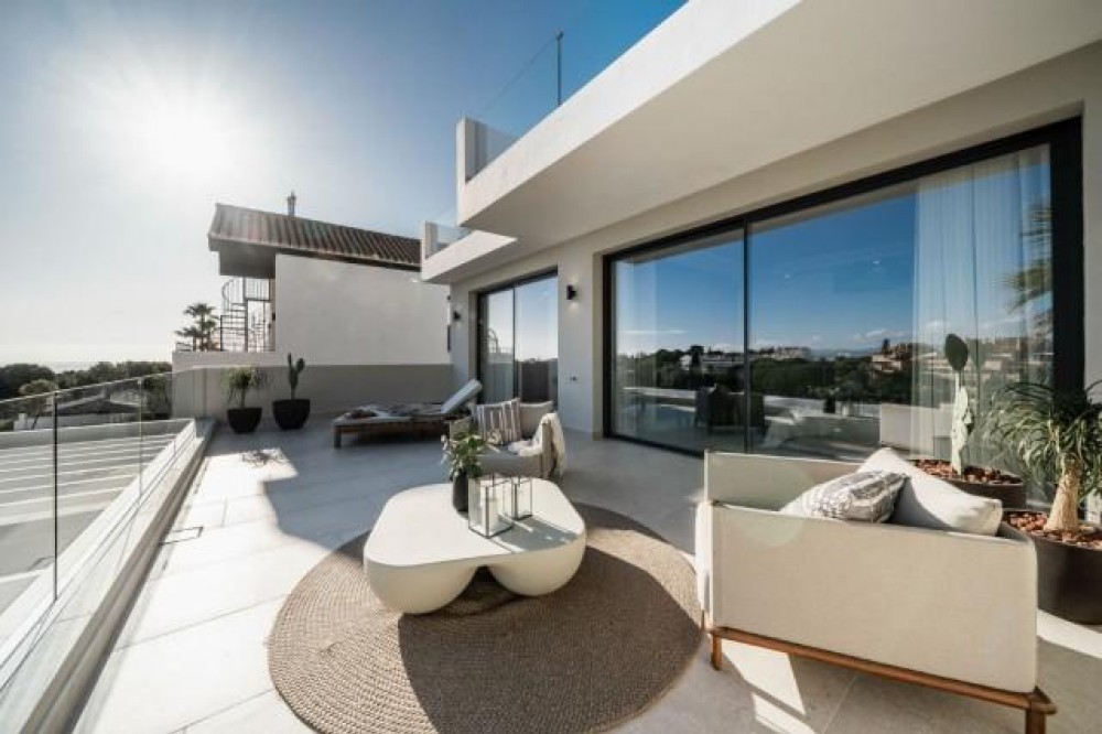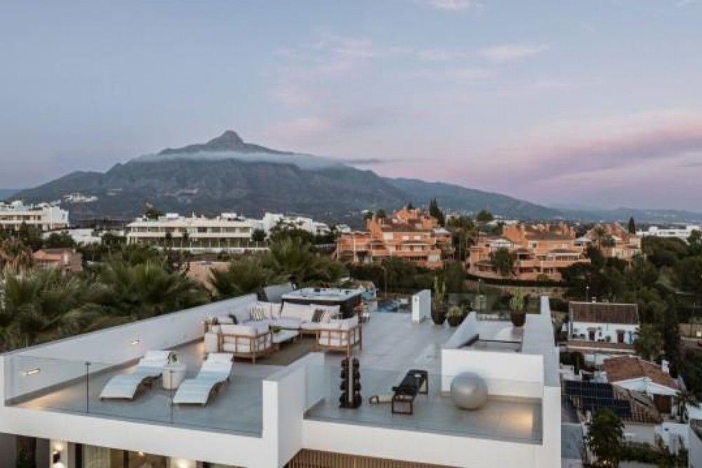 - Deze volledig gerenoveerde, designgerichte luxe villa is gelegen op een van de hoogstgelegen en meest pittoreske locaties in Nueva Andalucía en biedt een adembenemend panoramisch uitzicht dat zich uitstrekt van de iconische berg La Concha tot Gibraltar en de Middellandse Zeekust. Gelegen op een rustige locatie, combineert de woning privacy, architectonische verfijning en een uitzonderlijk uitzicht over de golfvallei. De villa is herbouwd volgens hoge specificaties en combineert eigentijdse architectuur met hoogwaardige materialen en tijdloze afwerkingen. De dubbele oriëntatie (oost en west) zorgt voor overvloedig natuurlijk licht gedurende de dag, wat de open en luchtige sfeer van het interieur versterkt. De woning is verdeeld over drie verdiepingen en beschikt over vijf goed geproportioneerde slaapkamers en vier stijlvolle badkamers, waardoor er flexibiliteit is voor gezinnen, gasten of als investeringsobject. De woonverdieping is ontworpen voor naadloos modern wonen, met een open keuken, woonkamer en eetgedeelte dat direct uitkomt op een ruim terras. Deze buitenruimte is ideaal voor het ontvangen van gasten, met een buitenkeuken en een groot privézwembad met jetjets, alles te midden van een ononderbroken panoramisch uitzicht. Een dakterras tilt de levensstijl naar een hoger niveau, compleet met jacuzzi en een 360-graden uitzicht. Deze ruimte is perfect voor gezellige bijeenkomsten bij zonsondergang, ontspanning of wellnessmomenten terwijl u geniet van het omringende landschap. De benedenverdieping omvat een volledig zelfstandig appartement met eigen ingang, badkamer, woonkamer en privéterras. Deze veelzijdige ruimte is ideaal voor gasten, familieleden of als potentiële verhuurunit, met een uitstekend inkomstenpotentieel en behoud van privacy voor de hoofdwoning. Hoogwaardige afwerkingen zijn overal zichtbaar, waaronder porseleinen vloeren, op maat gemaakte houten kasten en elementen van natuursteen. Extra voorzieningen zijn onder andere een modern alarmsysteem en een privécarport. Ondanks de rustige en verhoogde ligging is de villa uitstekend bereikbaar. Winkels, restaurants, stranden, internationale scholen, golfbanen en andere voorzieningen zijn allemaal binnen handbereik, terwijl de uitstekende wegverbindingen snelle verbindingen bieden naar Marbella, Puerto Banús, Estepona en de luchthaven van Málaga. Deze woning biedt een zeldzame kans om een volledig gerenoveerde luxe villa met panoramisch uitzicht te verwerven in een van de meest gewilde woonwijken van Nueva Andalucía - ideaal als hoofdverblijf, vakantiehuis of lucratieve investering.
