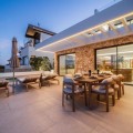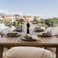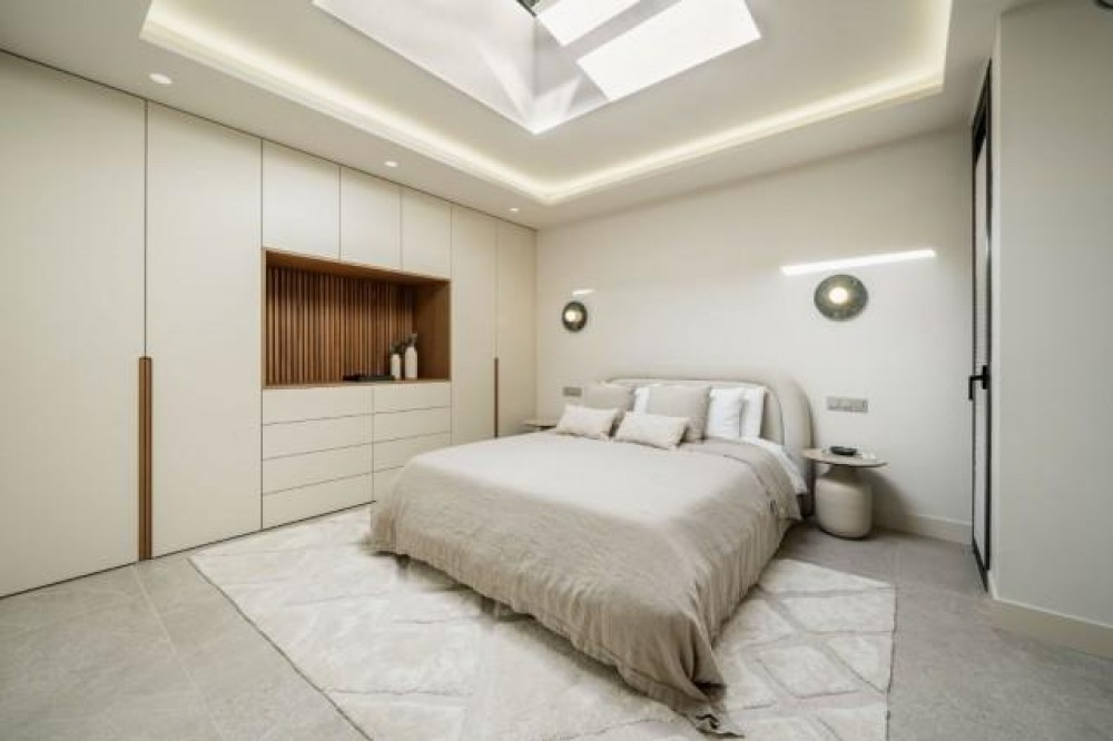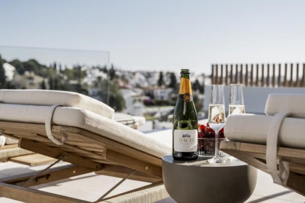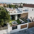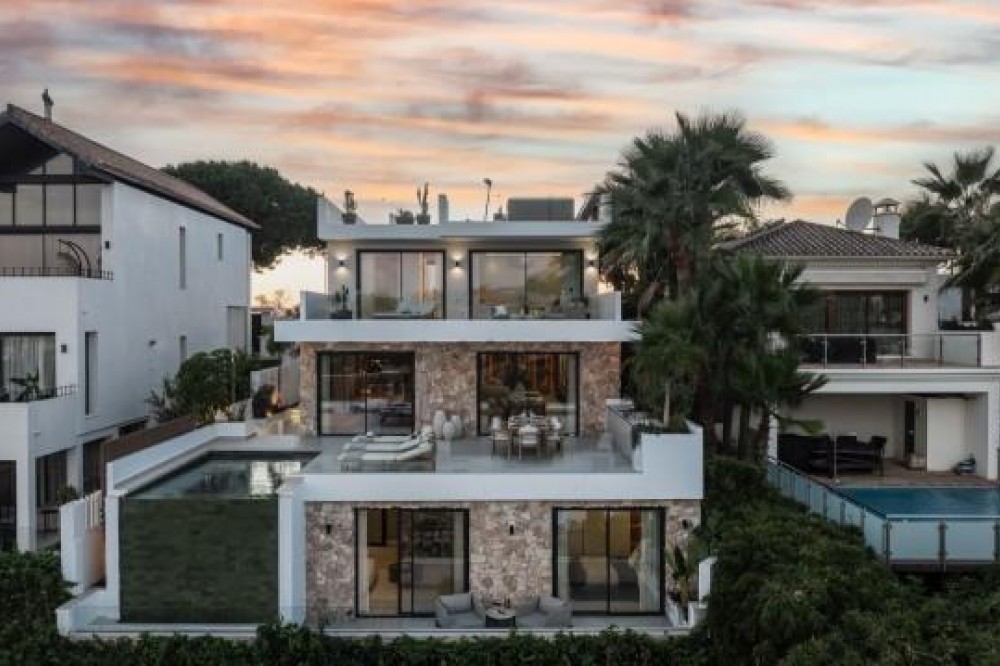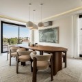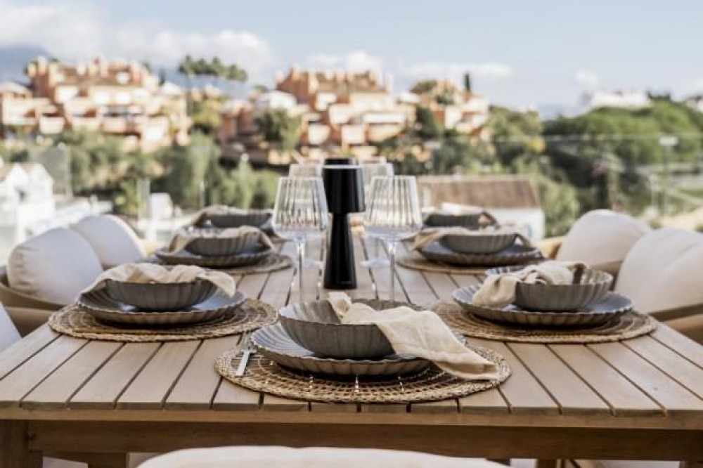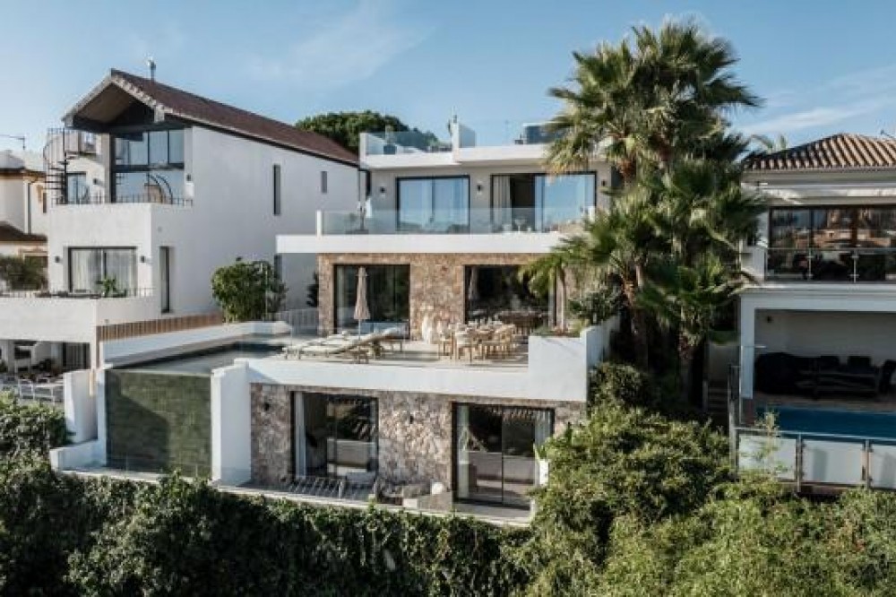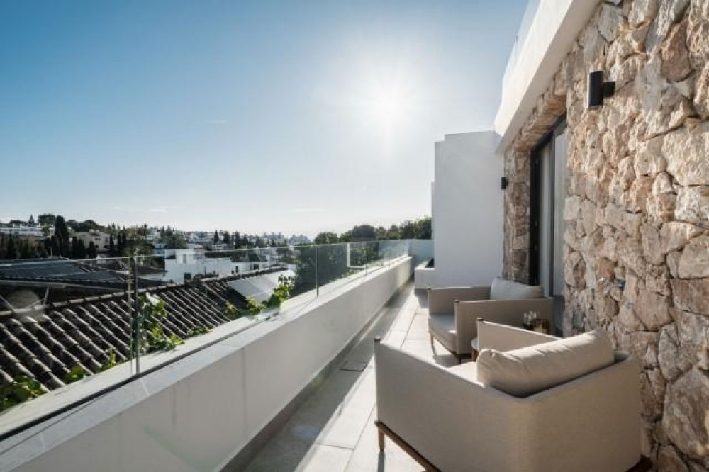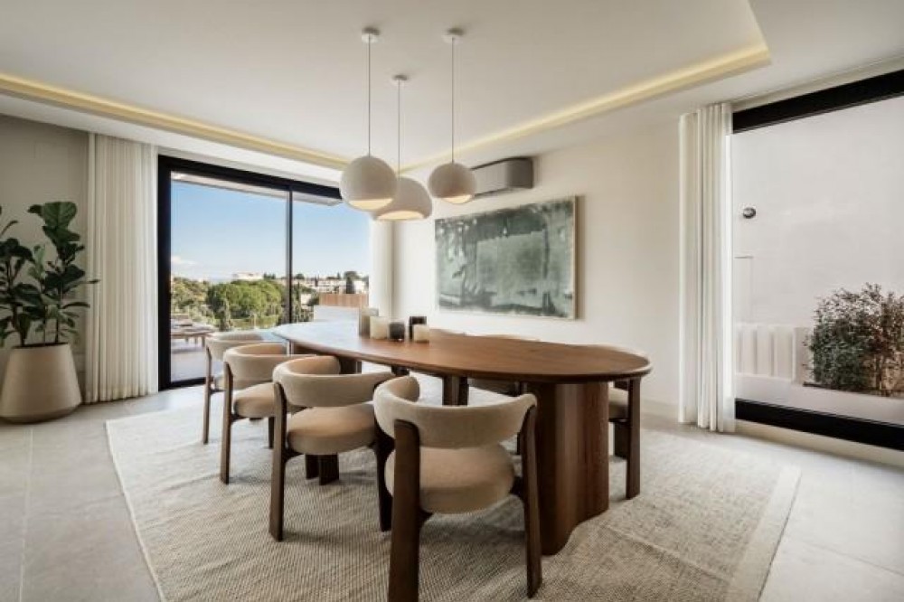 - Deze volledig gerenoveerde, designgerichte luxe villa is gelegen op een van de hoogstgelegen en meest pittoreske locaties in Nueva Andalucía en biedt een adembenemend panoramisch uitzicht dat zich uitstrekt van de iconische berg La Concha tot Gibraltar en de Middellandse Zeekust. Gelegen op een rustige locatie, combineert de woning privacy, architectonische verfijning en een uitzonderlijk uitzicht over de golfvallei. De villa is herbouwd volgens hoge specificaties en combineert eigentijdse architectuur met hoogwaardige materialen en tijdloze afwerkingen. De dubbele oriëntatie (oost en west) zorgt voor overvloedig natuurlijk licht gedurende de dag, wat de open en luchtige sfeer van het interieur versterkt. De woning is verdeeld over drie verdiepingen en beschikt over vijf goed geproportioneerde slaapkamers en vier stijlvolle badkamers, waardoor er flexibiliteit is voor gezinnen, gasten of als investeringsobject. De woonverdieping is ontworpen voor naadloos modern wonen, met een open keuken, woonkamer en eetgedeelte dat direct uitkomt op een ruim terras. Deze buitenruimte is ideaal voor het ontvangen van gasten, met een buitenkeuken en een groot privézwembad met jetjets, alles te midden van een ononderbroken panoramisch uitzicht. Een dakterras tilt de levensstijl naar een hoger niveau, compleet met jacuzzi en een 360-graden uitzicht. Deze ruimte is perfect voor gezellige bijeenkomsten bij zonsondergang, ontspanning of wellnessmomenten terwijl u geniet van het omringende landschap. De benedenverdieping omvat een volledig zelfstandig appartement met eigen ingang, badkamer, woonkamer en privéterras. Deze veelzijdige ruimte is ideaal voor gasten, familieleden of als potentiële verhuurunit, met een uitstekend inkomstenpotentieel en behoud van privacy voor de hoofdwoning. Hoogwaardige afwerkingen zijn overal zichtbaar, waaronder porseleinen vloeren, op maat gemaakte houten kasten en elementen van natuursteen. Extra voorzieningen zijn onder andere een modern alarmsysteem en een privécarport. Ondanks de rustige en verhoogde ligging is de villa uitstekend bereikbaar. Winkels, restaurants, stranden, internationale scholen, golfbanen en andere voorzieningen zijn allemaal binnen handbereik, terwijl de uitstekende wegverbindingen snelle verbindingen bieden naar Marbella, Puerto Banús, Estepona en de luchthaven van Málaga. Deze woning biedt een zeldzame kans om een volledig gerenoveerde luxe villa met panoramisch uitzicht te verwerven in een van de meest gewilde woonwijken van Nueva Andalucía - ideaal als hoofdverblijf, vakantiehuis of lucratieve investering.