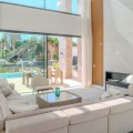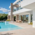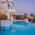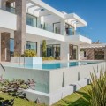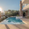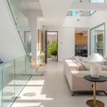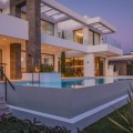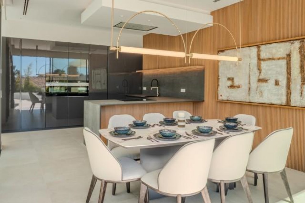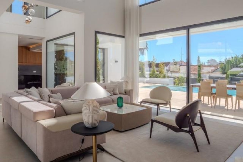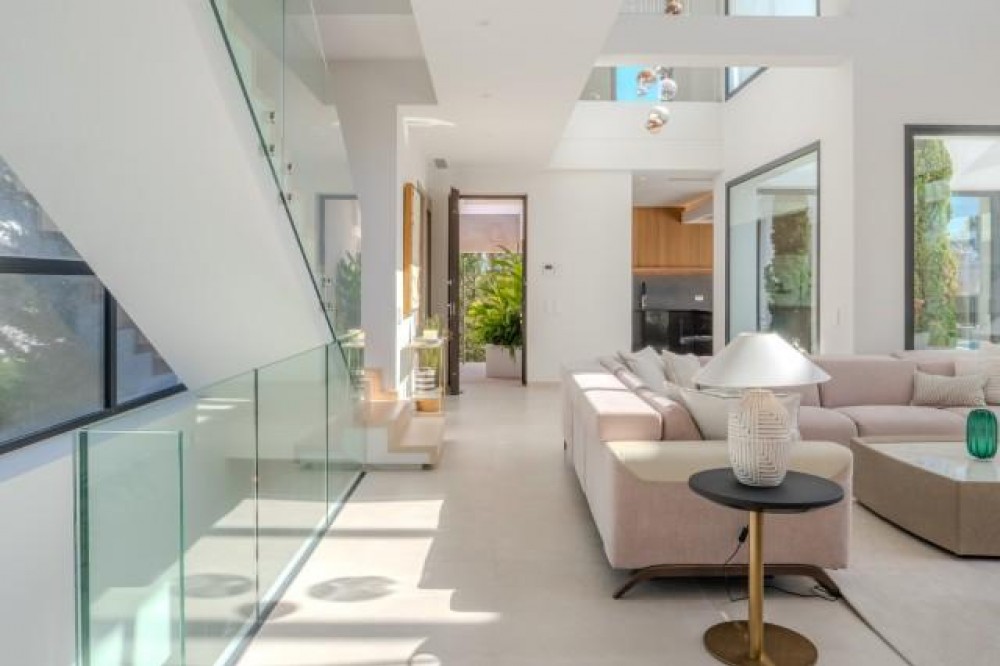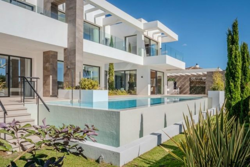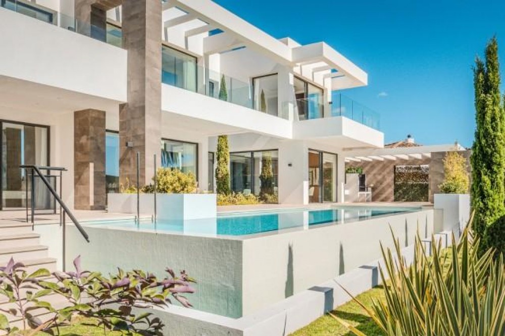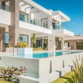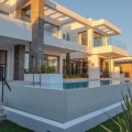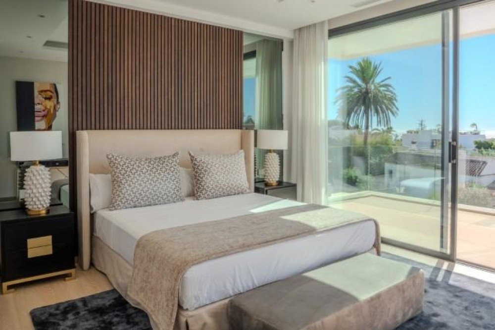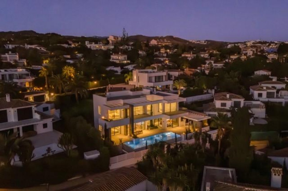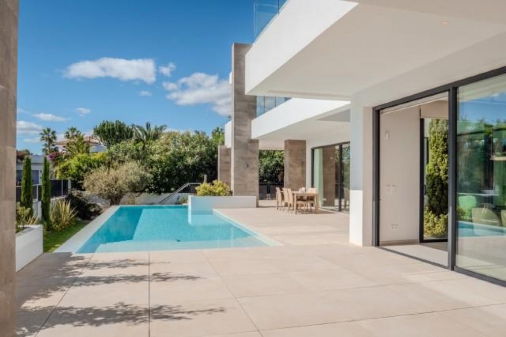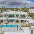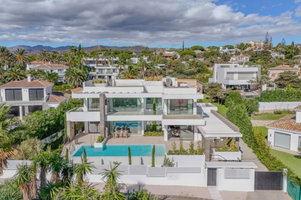 - Ontdek een prachtige, gloednieuwe, eigentijdse villa op een ideale locatie, op slechts 350 meter van het strand in de zeer gewilde woonwijk Marbella Oost. Deze exclusieve, moderne residentie combineert perfect de nieuwste architectuur, verfijnde interieurs en een eersteklas levensstijl aan het strand aan de prestigieuze oostkust van Marbella. De villa staat op een privéperceel van 779 m² en biedt circa 390 m² aan elegante woonruimte verdeeld over drie verdiepingen, aangevuld met ruime terrassen en een spectaculair dakterras met panoramisch uitzicht op zee. De hoofdingang leidt naar een magnifieke open woonruimte met een moderne open haard, een designkeuken met hoogwaardige apparatuur en een stijlvolle eethoek. Glazen schuifdeuren van vloer tot plafond laten veel natuurlijk licht binnen en bieden een naadloze overgang naar de overdekte veranda, de aangelegde tuin en het privézwembad, dat wordt verlicht door een uniek raam met uitzicht op de onderwaterwereld. Een ingebouwde stenen barbecue maakt deze buitenruimte ideaal voor gezelligheid en een ontspannen mediterrane levensstijl. Op deze verdieping bevindt zich tevens een ruime gastenslaapkamer met en-suite badkamer en een gastentoilet. De elegante zwevende trap leidt naar de eerste verdieping, waar twee prachtige en-suite slaapkamers genieten van privéterrassen en een prachtig uitzicht op zee. De master suite beschikt over een royale kleedkamer en een luxe badkamer met ligbad, inloopdouche en dubbele wastafel. Beide slaapkamers hebben directe toegang tot terrassen met uitzicht op de kustlijn. Een buitentrap leidt naar het indrukwekkende dakterras van 100 m², een waar hoogtepunt van de villa. Geniet hier van een adembenemend uitzicht op zee en eindeloze mogelijkheden voor een lounge, jacuzzi, fitnessruimte in de buitenlucht of een eetgedeelte op het dak – perfect voor gezellige avonden bij zonsondergang. De ruime kelderverdieping biedt uitzonderlijke veelzijdigheid en omvat een wasruimte, technische ruimte, complete badkamer en diverse flexibele ruimtes, ideaal voor een privégym, thuisbioscoop, speelkamer of extra gastenslaapkamer. Deze ultramoderne villa aan zee is voorzien van vloerverwarming in alle woonruimtes, een geavanceerd alarmsysteem en een eigen carport met plaats voor 2-3 auto's. Ideaal gelegen nabij internationale scholen, golfbanen, winkelcentra en restaurants, en met uitstekende toegang tot de snelweg A-7, biedt deze uitzonderlijke woning de perfecte balans tussen privacy, comfort en bereikbaarheid. Een zeldzame kans om een gloednieuwe designvilla te kopen op een van de meest gewilde strandlocaties van Marbella Oost – ideaal als luxe gezinswoning, vakantiehuis of hoogwaardige investering.