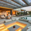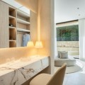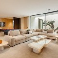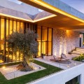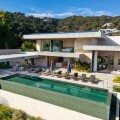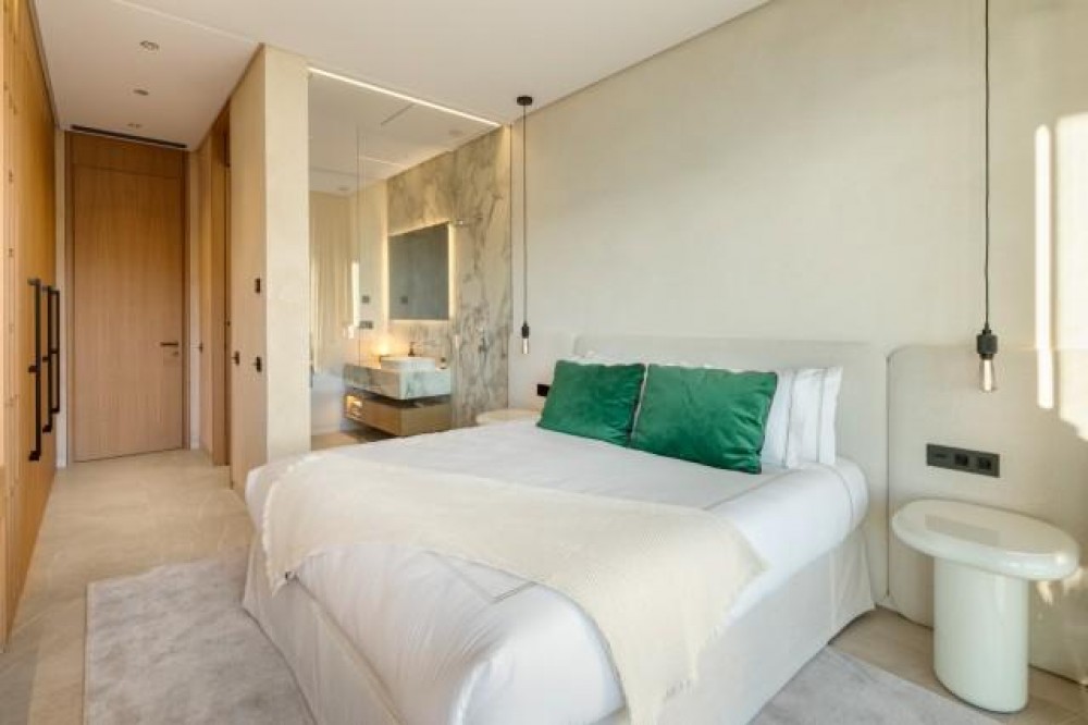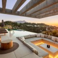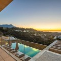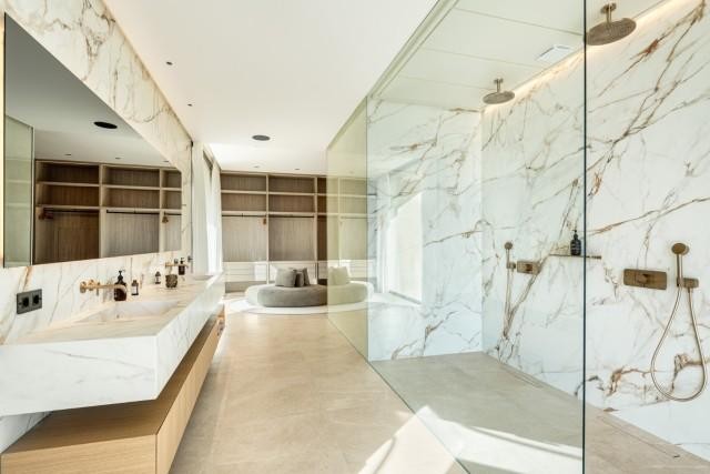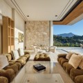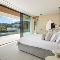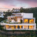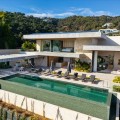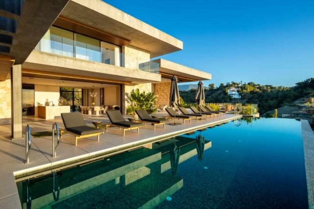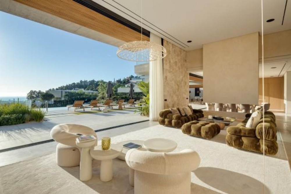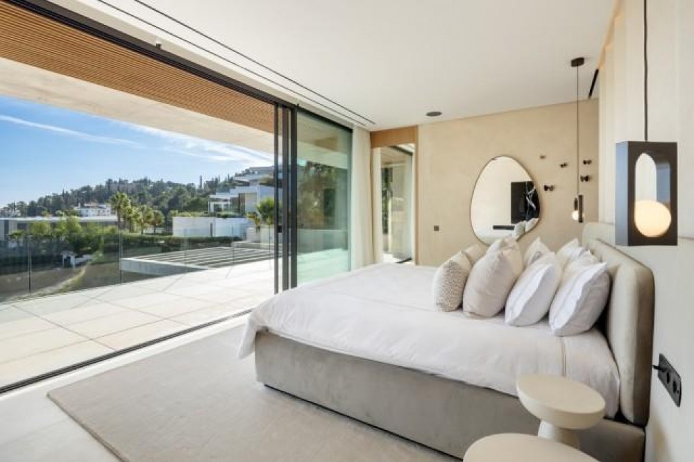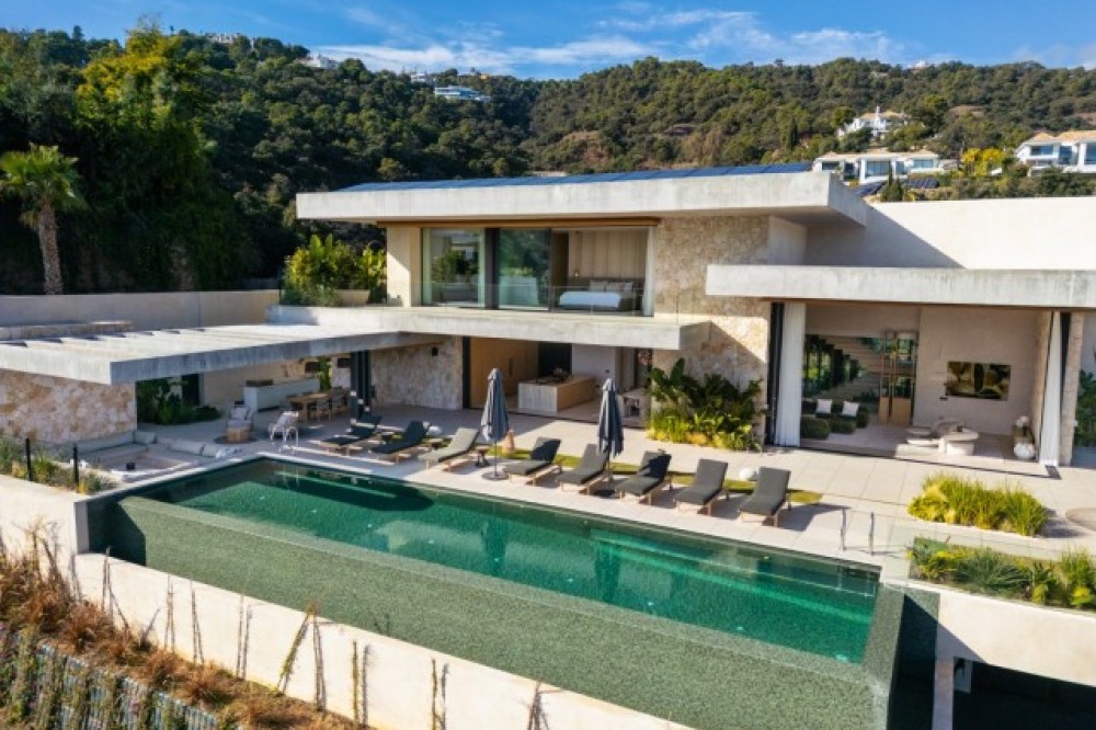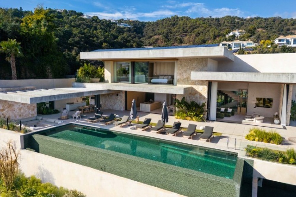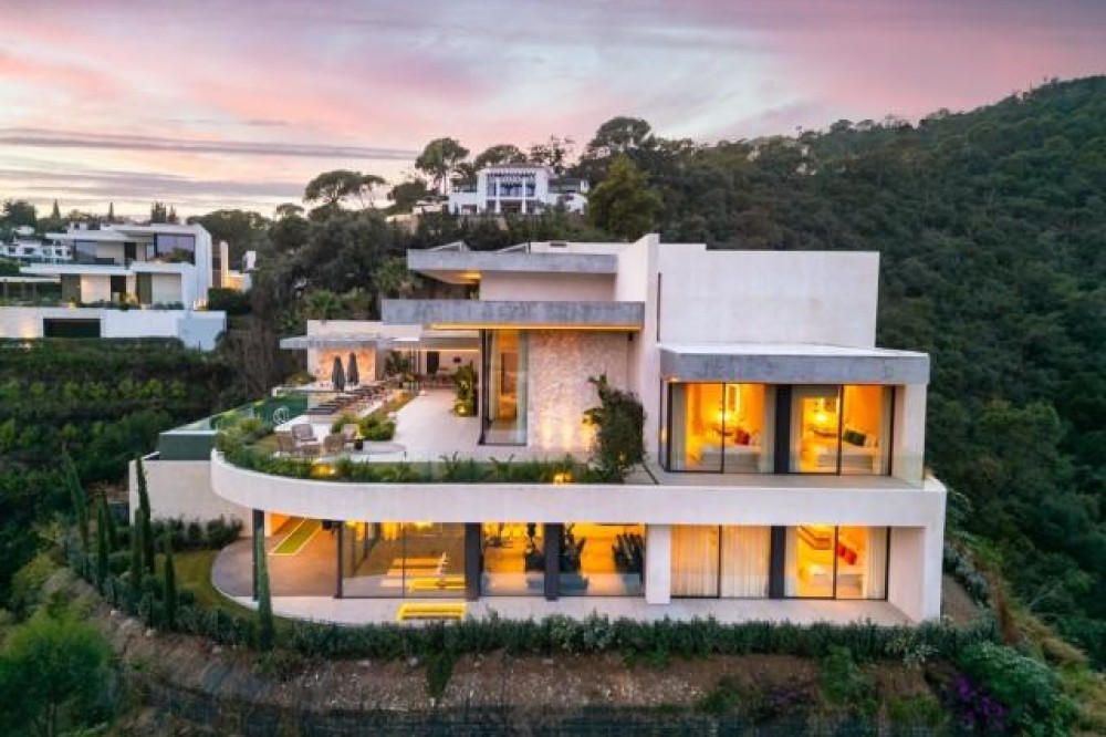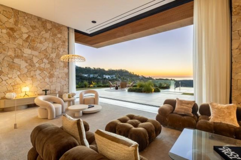 - Gelegen in het prestigieuze, omheinde landgoed El Madroñal, in de gemeente Benahavís, biedt deze nieuw gebouwde architectonische residentie een zeldzame combinatie van eigentijds design, privacy en een verhoogd panoramisch uitzicht over de Middellandse Zeekust en de omliggende bergen. Deze uitzonderlijke villa op het zuiden, die naar verwachting in 2025 wordt opgeleverd, neemt een prominente positie in boven de kust en biedt vanaf vrijwel elke verdieping een ononderbroken uitzicht op zee en de bergen. Ontworpen door een hoog aangeschreven architect, is het pand bedoeld om een verfijnde levensstijl te bieden waarin architectuur, technologie en de natuurlijke omgeving naadloos in elkaar overvloeien. De villa staat op een ruim perceel van 4.149 m² en biedt circa 1.028 m² bebouwde oppervlakte verdeeld over drie verdiepingen, aangevuld met 492 m² aan ruime terrassen. Een lange privé-oprit leidt naar een opvallende hoofdingang, waar een volgroeide olijfboom, omlijst door glas, direct de toon zet voor ingetogen luxe en architectonische grandeur. De woonverdieping ontvouwt zich tot een elegante open woon- en eetkamer, gecentreerd rond een moderne open haard en omlijst door kamerhoge glazen schuifdeuren. Deze geven direct toegang tot ruime terrassen, waardoor een vloeiende overgang tussen binnen en buiten ontstaat, ideaal voor zowel dagelijks genot als grootschalige ontvangsten. De ultramoderne keuken is uitgerust met hoogwaardige Gaggenau-apparatuur en wordt aangevuld door een discrete tweede chef-kokkeuken, waardoor naadloos entertainen mogelijk is zonder de verfijnde woonomgeving te verliezen. De villa beschikt over zes ruime slaapkamersuites, elk met een eigen badkamer. De gehele bovenverdieping is gewijd aan een indrukwekkende master suite, met een privéterras met uitzicht op zee, twee inloopkasten en een luxe en-suite badkamer. Elke kamer is zorgvuldig geproportioneerd om privacy, comfort en overvloedig natuurlijk licht te bieden. In het hele huis zijn vakmanschap en materiaalkwaliteit in elk detail zichtbaar. De houten vloer in visgraatpatroon, de op maat gemaakte, met leer beklede deurklinken, de unieke verlichtingsbediening geïnspireerd op autodesign en de elektrisch bediende ramen en deuren van vloer tot plafond versterken zowel de esthetiek als de functionaliteit van de woning. Technische ruimtes zijn strategisch buiten de hoofdstructuur geplaatst, wat het onderhoud vereenvoudigt en de rust in het interieur behoudt. De benedenverdieping is ontworpen als een privé wellness- en entertainmentruimte met een volledig uitgeruste fitnessruimte met zowel binnen- als buitentrainingsruimtes, een privébioscoop, een speelruimte, een hamam, een dompelbad en ontspanningsruimtes. Een gastenappartement met twee slaapkamers en een eigen ingang biedt uitstekende accommodatie voor bezoekers of personeel. Verdere voorzieningen zijn onder andere een klimaatgeregelde wijnkelder, een privélift die alle verdiepingen verbindt en een Zennio smart home-systeem, dat volledige controle biedt over verlichting, klimaat en beveiliging. Buiten omringen prachtig aangelegde tuinen een zoutwaterzwembad, meerdere zonneterrassen en een buitenkeuken met aparte eet- en loungegedeeltes. Een automatisch irrigatiesysteem zorgt het hele jaar door voor de beplanting, terwijl er momenteel parkeergelegenheid is voor vier auto's met de mogelijkheid om een volledig afgesloten garage te creëren indien gewenst. Het landgoed geniet van gecontroleerde toegang en 24-uursbeveiliging, waardoor bewoners een discrete en zeer veilige omgeving hebben. Gelegen op circa 400 meter boven zeeniveau, wordt de omringende natuurlijke omgeving gekenmerkt door dennenbossen, kurkeiken en olijfbomen, met een weids uitzicht op het Serranía de Ronda-gebergte en de Middellandse Zee. Ondanks de rustige ligging bevindt de woning zich op slechts enkele minuten van alle dagelijkse voorzieningen en op korte rijafstand van de stranden, Puerto Banús en Marbella. Golfliefhebbers profiteren van de nabijheid van toonaangevende golfbanen zoals La Quinta Golf & Country Club en Los Arqueros Golf & Country Club, terwijl gezinnen toegang hebben tot gerenommeerde internationale scholen zoals Aloha College en The British International School of Marbella. Dit is een zeldzame kans om een nieuw gebouwde, moderne villa te verwerven in een van de meest exclusieve woonwijken aan de Costa del Sol, met architectonische allure, absolute privacy en een verhoogde levensstijl op een toplocatie op een heuvel.