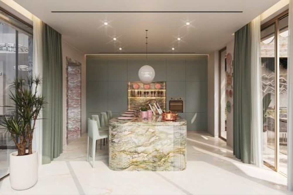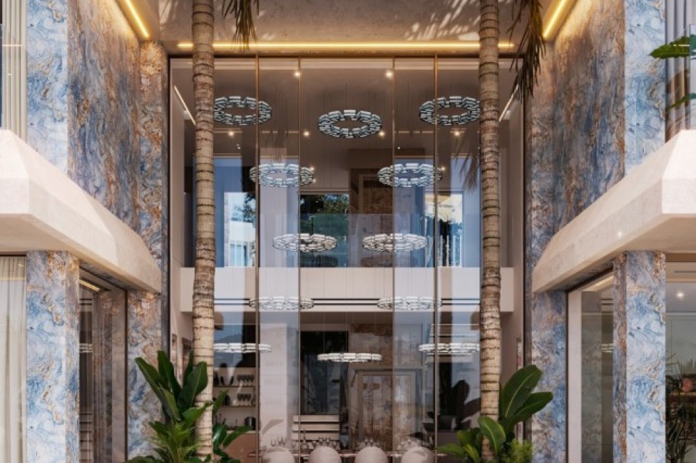 - Deze exclusieve collectie van slechts acht ultraluxe villa's is tot stand gekomen in samenwerking met Versace Home en biedt een zeldzame combinatie van haute couture design en hedendaagse architectuur. Gelegen in de prestigieuze woonwijk Nueva Andalucía in Marbella, herdefiniëren deze uitzonderlijke woningen luxe wonen aan de Costa del Sol. Elke villa is ontworpen als een complete Versace Home lifestyle-ervaring, waarbij de onmiskenbare identiteit van het Huis tot uiting komt in op maat gemaakte interieurs, verfijnd vakmanschap en iconische designelementen. Van hoogwaardig Italiaans marmer en handgemaakte mozaïeken tot op maat gemaakte Versace Home meubels en decoratieve afwerkingen, elk detail weerspiegelt de befaamde esthetische taal van het merk. Kenmerkende motieven zoals de Medusa-, Greca- en Barocco-patronen zijn subtiel verwerkt in de woonruimtes en creëren een sfeer van onmiskenbare glamour, verfijning en culturele elegantie. Het resultaat is een collectie woningen die de traditionele luxe vastgoedmarkt overstijgen en een modebewust lifestyleconcept bieden dat zelden in Europa te vinden is. Elke villa ligt in een volledig beveiligde, besloten gemeenschap en beslaat een ruim perceel van circa 2.000 m², verdeeld over drie verdiepingen, met een panoramisch uitzicht op zee. De woningen beschikken over vijf royale slaapkamers, elk afgewerkt volgens de hoogste normen en verrijkt met op maat gemaakte details van Versace Home. De villa's zijn ontworpen om zowel het dagelijks leven als het ontvangen van gasten te verheffen en bieden een buitengewoon lifestyleprogramma, waaronder: Privé spa en wellnessruimte Binnen- en buitenbioscoop Binnenzwembad Buitenzwembad Dompelbad en privéjacuzzi Ruime terrassen en buitenlounges Elke woning is zorgvuldig ontworpen om een naadloze overgang te creëren tussen binnen- en buitenruimtes, zodat bewoners optimaal kunnen genieten van het klimaat van Marbella het hele jaar door en de spectaculaire kustomgeving. Veiligheid en privacy staan voorop. De gemeenschap biedt 24-uurs beveiligde toegang, geavanceerde bewakingssystemen en toegang exclusief voor bewoners, wat zorgt voor gemoedsrust in een van de meest gewilde luxe buurten van Zuid-Spanje. De locatie plaatst bewoners op slechts enkele minuten van de jachthaven, stranden, restaurants en internationale lifestyle-attracties van Puerto Banús, terwijl ze tegelijkertijd omgeven zijn door golfbanen van topklasse en enkele van de meest prestigieuze woonwijken aan de Costa del Sol. Elk element – van verlichting en textiel tot architectonisch beslag en op maat gemaakte afwerkingen – is ontworpen of samengesteld in samenwerking met Versace Home om volledige visuele consistentie en een onmiskenbare merkidentiteit in elke woning te garanderen. Deze villa's bieden een zeldzame kans om een volledig gebrandmerkte luxe woning te verwerven, waar high fashion, architectuur en lifestyle samenkomen in een van de meest exclusieve residentiële aanbiedingen die momenteel beschikbaar zijn in Marbella. Verwachte oplevering: eerste kwartaal van 2028.