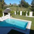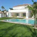 - Brand new contemporary villa for sale in Guadalmina Baja, Marbella Costa del Sol. This stunning south facing villa is very close to the Guadalmina Golf Course, 350 meters distance to the beach, walking distance to all amenities and only 5 minutes drive to Puerto Banus, Marbella. The villa comprises 5 bedrooms, 4 bathrooms, large lounge with views over the garden and pool, various terraces, fully fitted and equipped open plan kitchen. This lovely villa has solar panels. On the ground level there is lounge, kitchen, guest toilet, 1 guest bedroom en suite, terraces leading out to the garden. First floor offers master bedroom en suite, 3 additional bedrooms. Garage for several carsand an ample driveway.