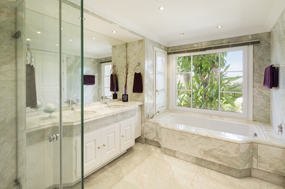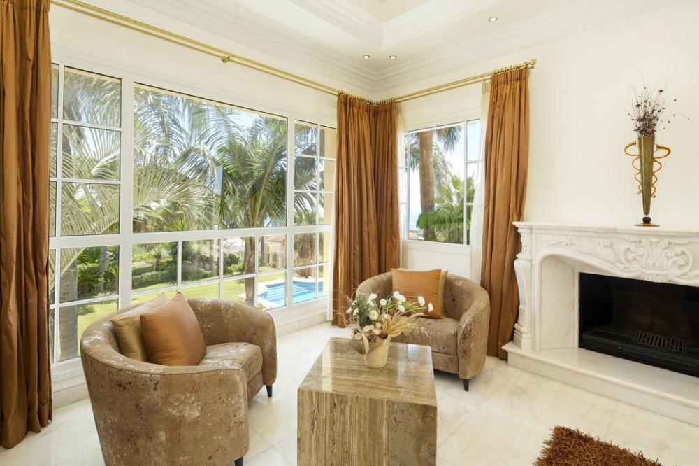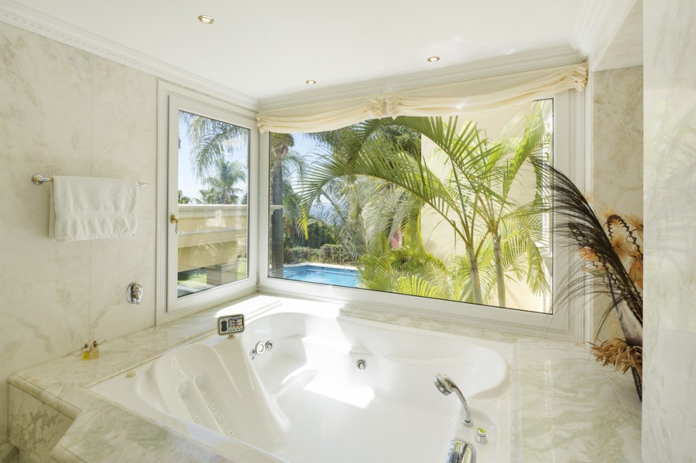 - Deze schitterende villa in Sierra Blanca, volledig gemeubileerd verkocht, is ontworpen door Vilarroel en heeft drie verdiepingen. Na een renovatie van € 1,25 miljoen biedt de villa kopers die willen genieten van de begeerde levensstijl van Marbella een scala aan fantastische luxe voorzieningen. Deze omvatten: • Indrukwekkende entreehal en trappenhuis met palmbomen binnen • Grote lounge/ontvangstruimte met een indrukwekkend plafond van drie verdiepingen hoog • lounge die uitkomt op het overdekte hoofdterras, de tuin en het zwembad • Uitgestrekt uitzicht op zee • Grote eetkamer met gewelfd plafond en opvallende kandelaars • 2 volledig uitgeruste keukens, waaronder een keuken voor chef-kok/feestcatering en een ontbijtruimte • 2 gastenbadkamers • Enorme hoofdslaapkamer met een zeer grote badkamer voorzien van een luxe therapeutisch bubbelbad en een grote inloopdouche, een ruime kleedruimte en een privéterras met een prachtig panoramisch uitzicht op zee • vier extra tweepersoonsslaapkamers met eigen badkamer en kleedruimte • kantoorruimte op de mezzanine met uitzicht op de lounge • Prachtig Arabisch marmer in de badkamers, afkomstig uit de privégroeve van een Saoedische prins • Bioscoop- en bargedeelte met 9 Italiaanse lederen relaxfauteuils • spa • gymnasium • Onderhoudsvriendelijke tuin die veel privacy biedt • Groot verwarmd zwembad in een prachtige, volgroeide tuin; weelderige interieurdecoratie van de hoogste kwaliteit, inclusief Italiaanse zijden gordijnen; hoogwaardig meubilair en inrichting. • Garage voor 3 auto's met individuele elektrische deuren en gemakkelijke toegang vanaf de weg Sierra Blanca, gelegen in de heuvels met uitzicht op de Gouden Mijl van Marbella, ligt op korte rijafstand van de oude binnenstad van Marbella, de beroemde stranden en de glamoureuze jachthaven van Puerto Banus. Het is een van de meest gewilde, luxe woonwijken van Marbella.