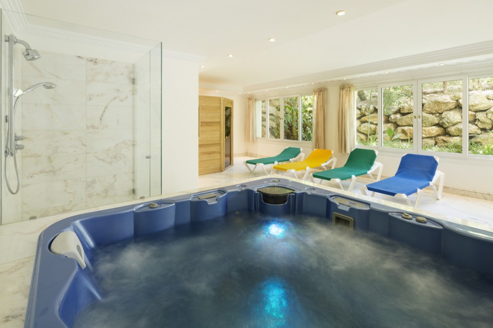 Voorzieningen: overdekt terras, inbouwkasten, nabij openbaar vervoer, privéterras, solarium, satelliet-tv, wifi, fitnessruimte, sauna, speelkamer, gastenappartement, berging, bijkeuken, badkamer en suite, toegankelijk voor mensen met beperkte mobiliteit, marmeren vloeren, jacuzzi, bar, barbecue, dubbele beglazing, domotica