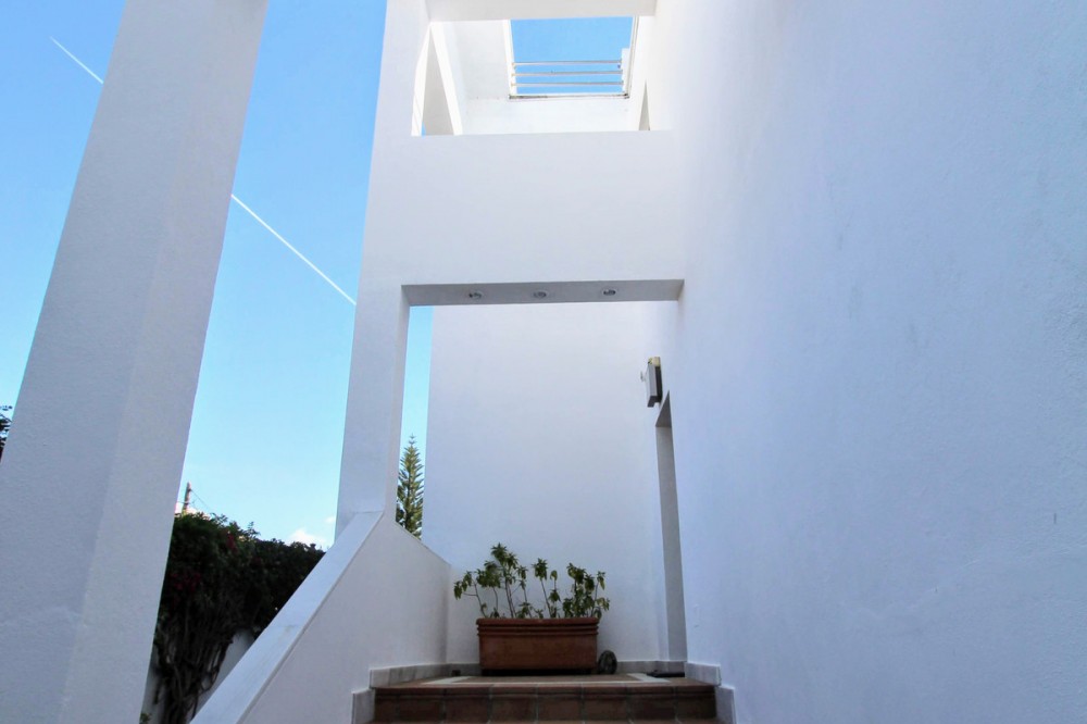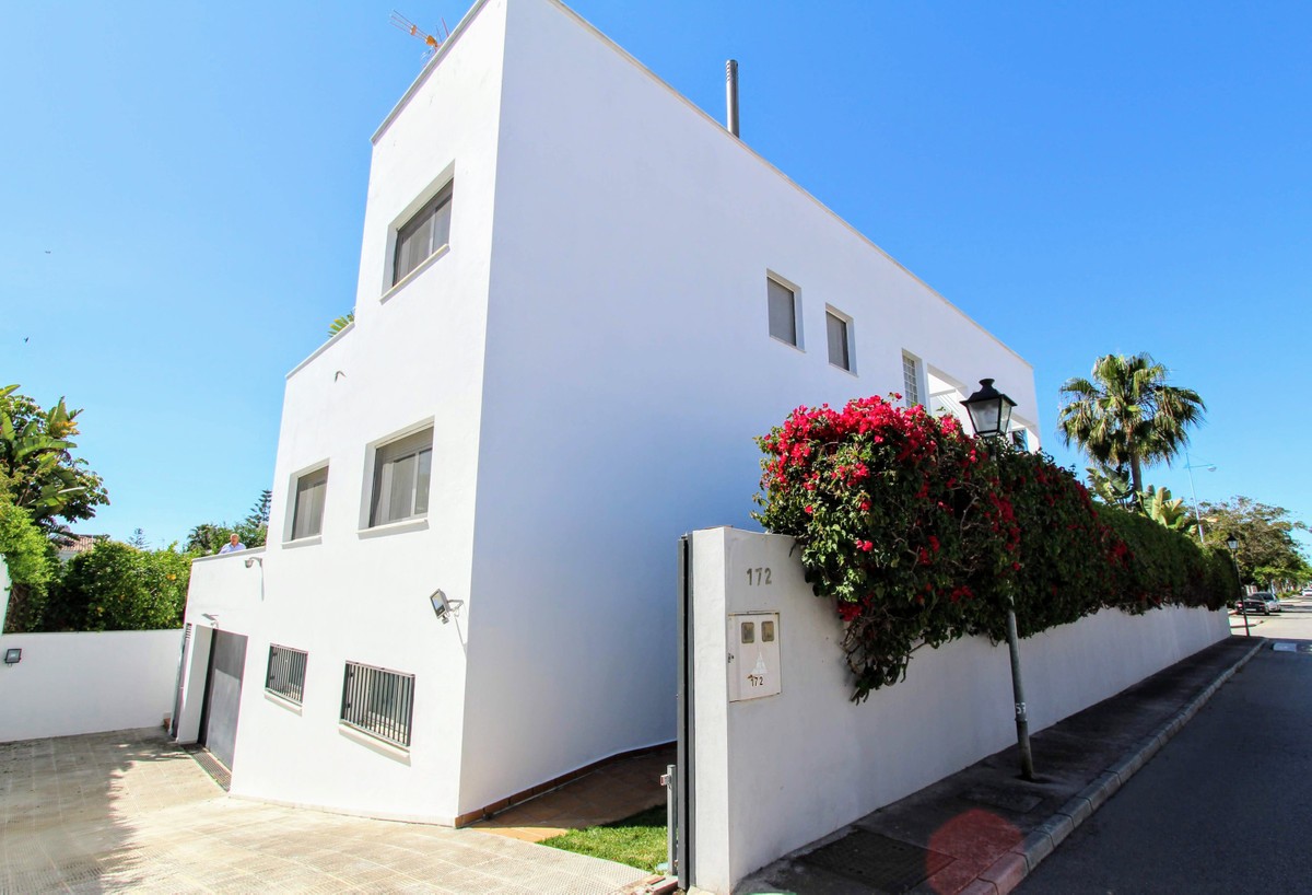 - Spacious beachside villa in popular San Pedro, a short drive west of Marbella and Puerto Banús, and within walking distance of the beach promenade, shops and restaurants. This house is set in manicured gardens with a swimming pool, offering a perfect combination of indoor and outdoor spaces, including a fantastic 120m2 roof terrace with panoramic views. On the entrance level, we find an entrance hall, a living room with fireplace, a dining room connected to a large fully equipped kitchen with breakfast area, a laundry/utility room, a guest toilet and an en-suite guest bedroom. Additionally, there is a large covered terrace overlooking the pool. On the upper floor, there are two guest suites with terraces, and the master suite with a sunny open terrace and access to the roof terrace. The naturally lit basement offers a games room, two additional bedrooms (for beds), a family bathroom and a large garage that can accommodate 3-4 cars. There are also storage areas and engine rooms. This villa offers a spacious and comfortable environment, with a well thought out layout that makes the most of the different areas of the house. The location close to the beach and the amenities of San Pedro, as well as the ease of access to Marbella and Puerto Banús, make it an ideal option for those looking to enjoy a relaxed lifestyle on the Costa del Sol.