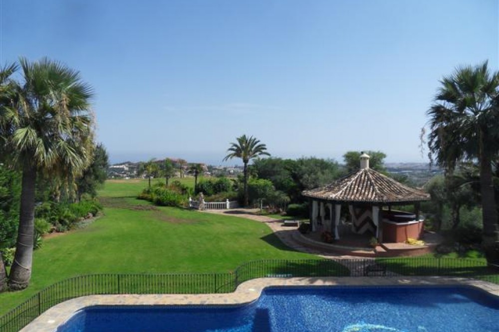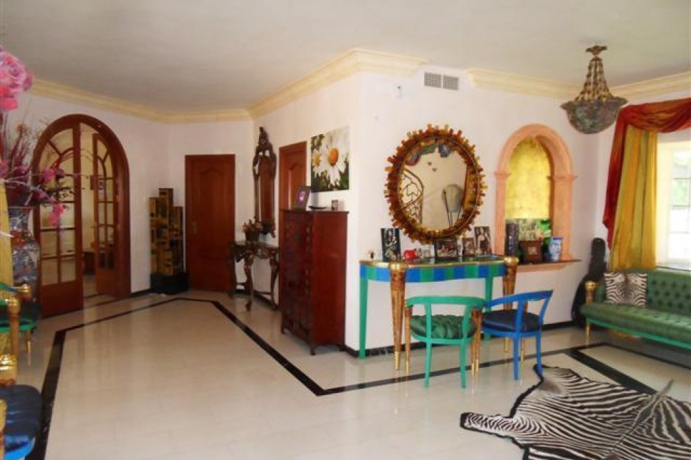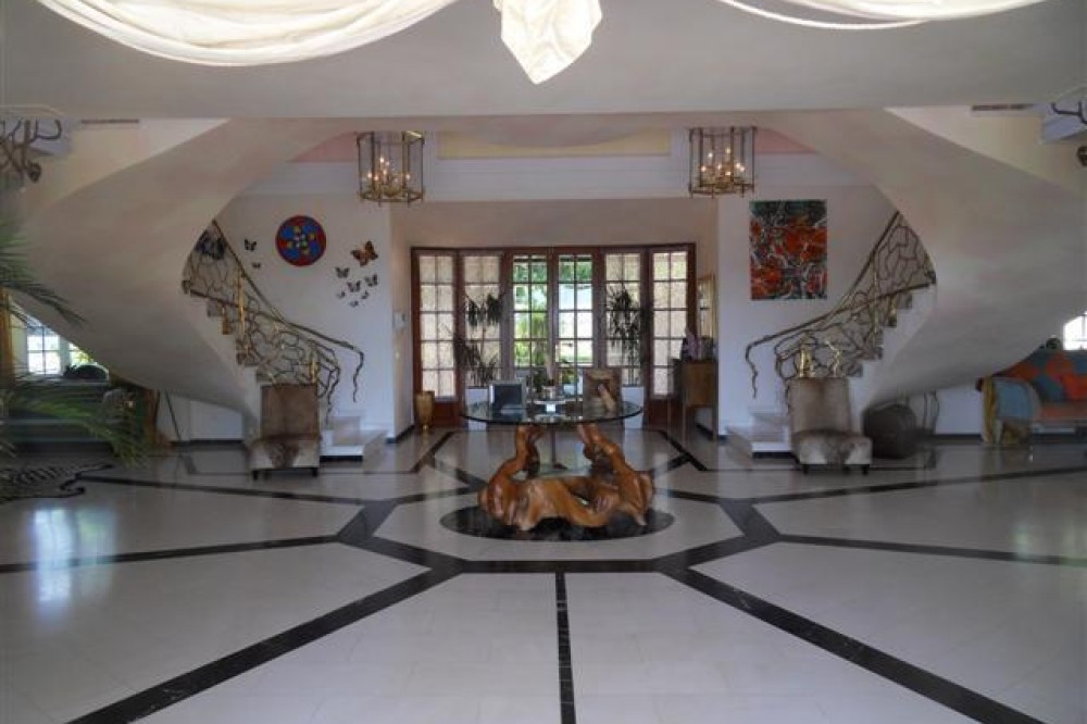 • This luxury mansion is situated in La Vega del Colorado near La Quinta Golf, a gated community with 24h security. The property consists of 8 bedrooms (5 in the main house and another 3 in the adjacent guest house), 8 bathrooms (5+3), a guest toilet, 3 large living rooms, an 18 seated diningroom, a spacious kitchen plus its seperate breakfast room, a bar area inside and a pool/bbq area outside, and also offers a billard room, a wine cellar, a library & office, a gym and sauna area with sunbed, a laudry room and servants quarters. Other extras are: a large heated swimming pool, tennis court, paddle tennis, mini golf and 7 car garage.