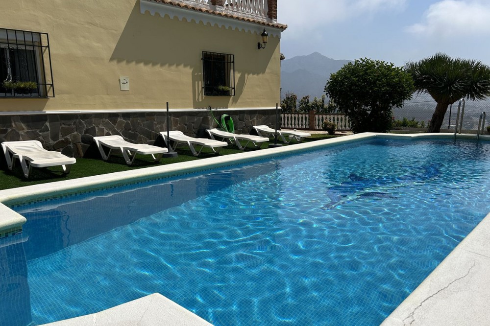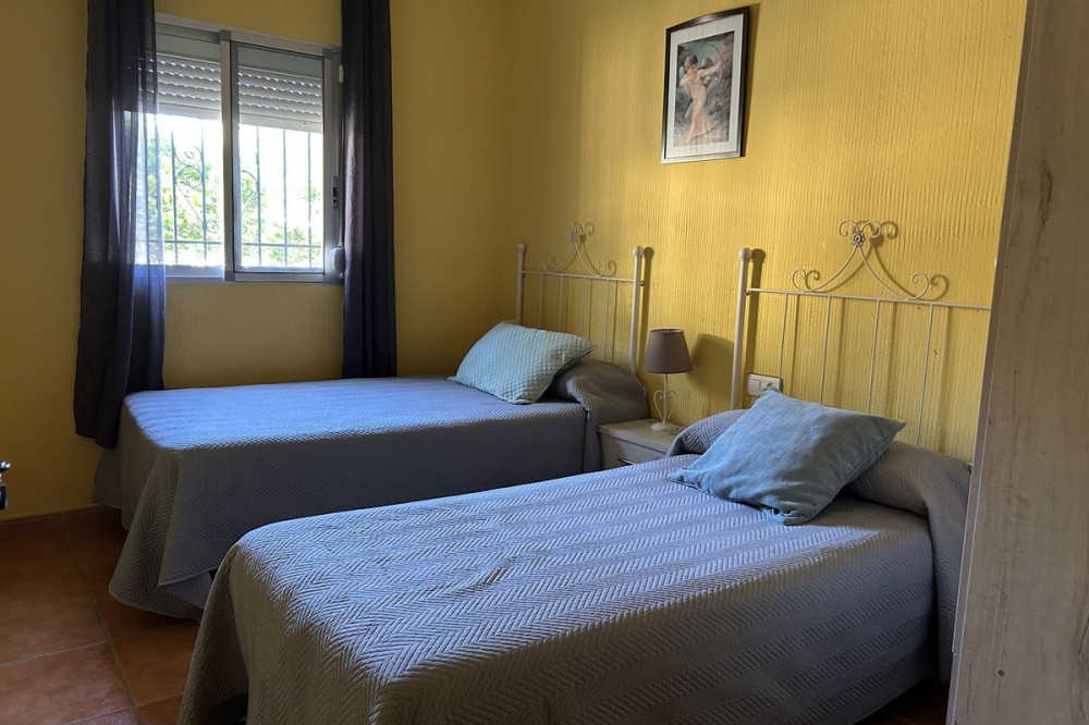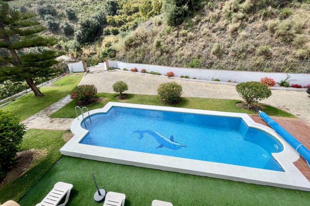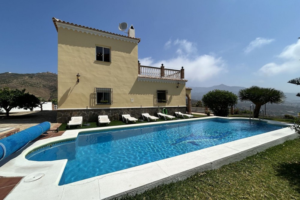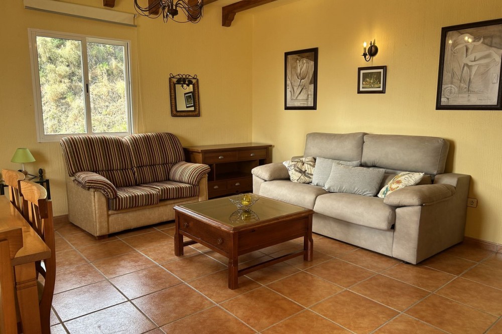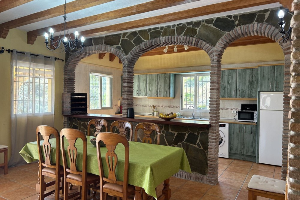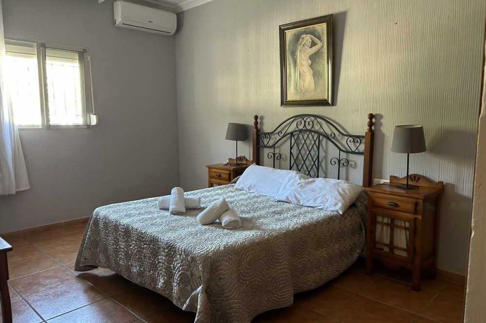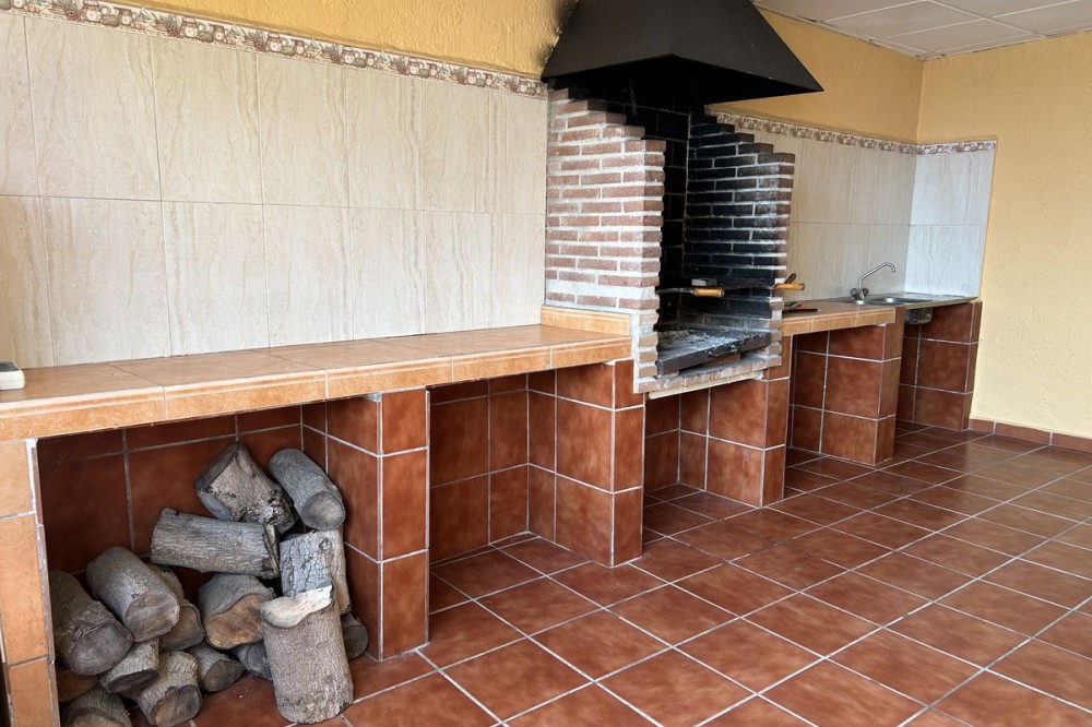 - This spacious four-bedroom, two-bathroom villa with a separate upper-floor apartment, set in the countryside with a large private swimming pool and gardens surrounded by fruit trees. The property includes a main living area with a fireplace, a fully fitted kitchen, a dining area, and a covered terrace on the ground floor, while the independent upper floor offers a lounge, bedroom, bathroom, and large sunny terrace. Access is via a gated, long driveway, and there is also a BBQ area, a storage outhouse, and a potential annual income of €70,000 from the fruit harvest. Property features Bedrooms: 4 (3 on the ground floor, 1 on the upper floor) Bathrooms: 2 (1 on the ground floor, 1 on the upper floor) Kitchen: Fully fitted kitchen on the ground (open kitchen on the upper floor) Living areas: Lounge with fireplace on the ground floor, separate lounge area on the upper floor Outdoor space: Large private swimming pool Gardens with numerous fruit trees and plants Covered terrace on the ground floor Huge terrace on the upper floor with uninterrupted sun BBQ area Additional features: Independent upper floor with its own entrance Electric fence at the entrance of the long driveway Ample parking area Separate outhouse for storage with dining area and mini kitchen and bathroom Income potential: Expected annual income of €70,000 from the fruit harvest as well as rental for either the villa or apartment. Also great for family life or as an investment.
