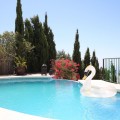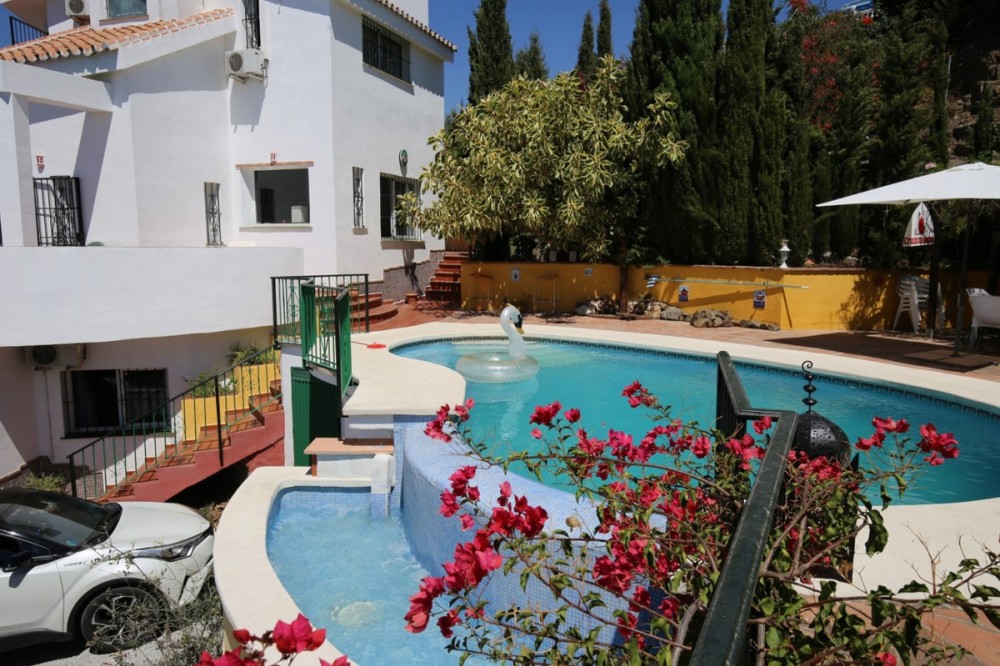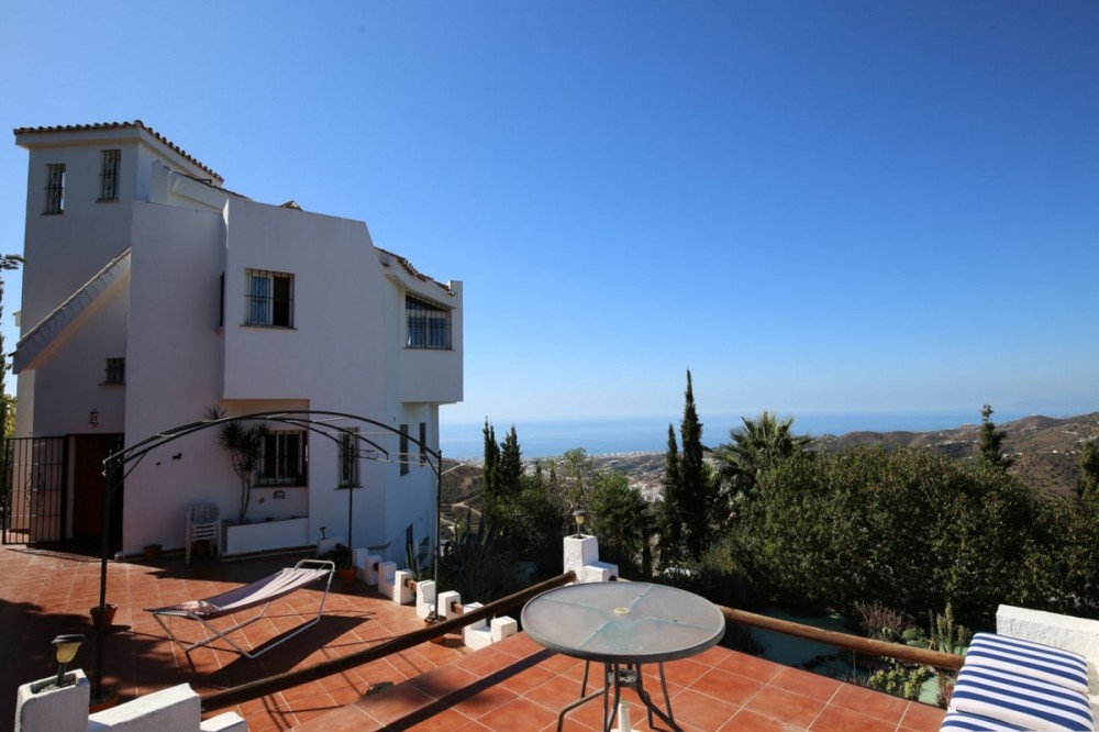 - If you are looking for the perfect house, with spectacular views, well built and with a unique design, absolute privacy and tranquility, and with a first occupancy license in a country house -something very rare in the country-side-, this is your best option. The house has three floors plus a roof terrace. On the first floor there is an apartment with independent access. It has a living room, a bedroom and a bathroom. Going up to the second floor we enter a large kitchen with access to the hall. Here is the main entrance of the house. It has a toilet, a dining room and a living room at two heights with a fireplace. From the living room you access a terrace with panoramic views of the Mediterranean Sea. Going up to the third floor we find a fireplace, two bedrooms and a bathroom with shower and bathtub. The master bedroom has a terrace, too. From this floor you access the roof terrace. Outside the house there is a 9 hole mini-golf to enjoy with family and friends, a beautiful infinity pool with jacuzzi, a bar by the pool, a covered garage for two cars and a large water tank where the top is used as a terrace with tables and chairs For more information, do not hesitate to contact us.