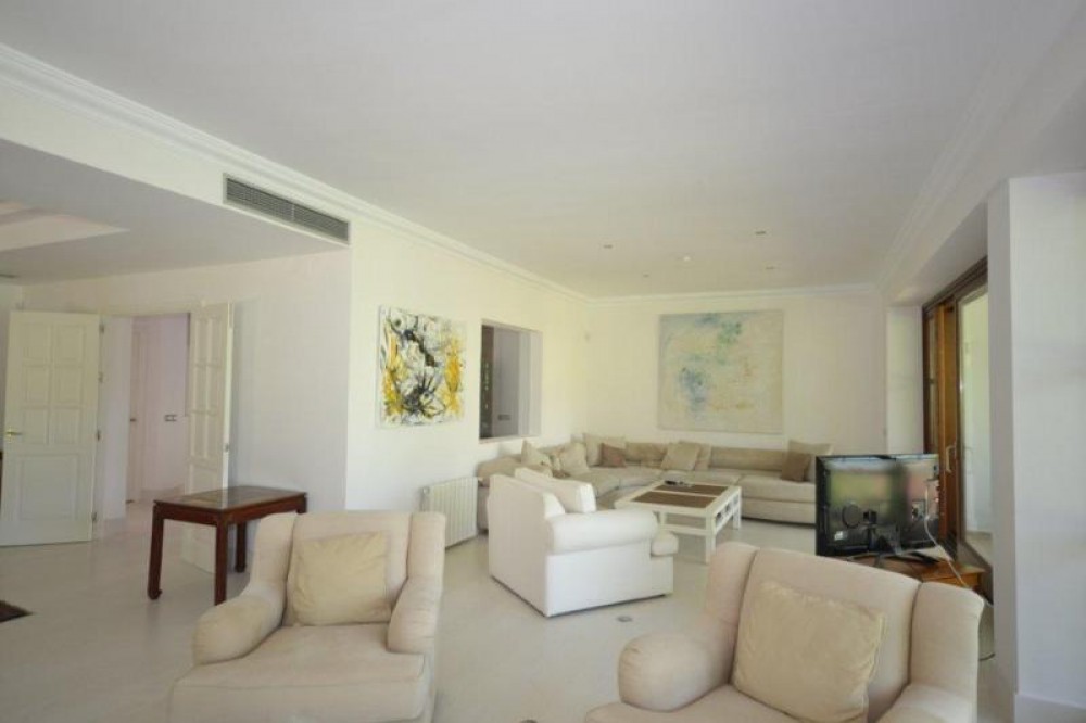 • Beautiful cortijo style villa set in the prestigious golf estate of Guadalmina Baja, within walking distance to the beach and close to a SPA hotel, international schools and the commercial centre of Guadalmina with shops, bars, and restaurants. This Andalusian-style home consists of a main house, a pool house and a private padel tennis court. The house offers a lovely entrance area, with Spanish patio with orange trees surrounding a fountain approaching the main house, which consists of an entrance hall with staircase leading up to the upper floor, continuing towards the living room with fireplace, a fitted kitchen with working island on the right hand side with dining room, adjacent laundry room and staff accommodation. The living room has exit to a covered terrace and the beautiful garden. Two double bedrooms, with en suite bathrooms and a further sitting room with fireplace are on the left hand side of the entrance area, also with exit to the terrace and garden. Upstairs the master suite incorporates a walk-in wardrobe, an en-suite bathroom with bathtub and shower plus a private terrace with views over the pool area and garden and there is a further bedroom with en-suite bathroom and guest toilet. A double garage completes this house. There is a mature garden with large pool and a private paddle- court. The guest / pool house offers a guest toilet, BBQ area and shower and a guest suite, with living/dining room, kitchenette and bedroom on the upper floor.