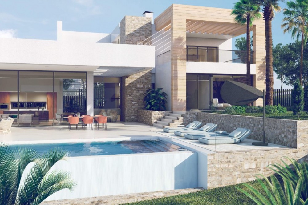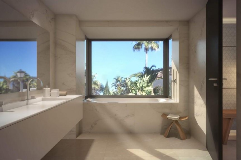 • Dit kleinschlige villa project van slechts 5 villas met 4 slk / 4 bdk vanaf 2.100.000 euros is perfect gelegen op een zachte helling in de golfvallei van Nueva Andalucia, waardoor elke villa geniet van opmerkelijke uitzichten, die zich uitstrekken van oost naar west, over de zacht glooiende golf vallei, de iconische La Concha-berg en de Middellandse Zee tot de landtongen van Afrika. De vijf exclusieve villa''s in dit project zijn elk uniek in ontwerp met een bewoonbare oppervlakte van 250-270 m2 en een terrein van meer dan 1.000 m2. Het complex is omheind en cipressen vormen een natuurlijke grens tussen de villa''s. Klaar voor bewoning begin 2021. De villas bieden de mogelijkheid om de lay-out van de villa''s aan te passen aan de individuele leefstijlbehoeften van elke eigenaar. Elke villa heeft een eigen ingang en oprit, met ondergrondse parkeergarage voor twee auto''s. Verder is er een centrale, ruime woonkamer met hoge plafonds, open keuken en directe toegang tot het zwembad in de privé tuin. Een ruim zuidelijk overdekt terras biedt schaduw in de zomer, terwijl het zwembad continue geniet van de volle zon. Deze villas zijn afgewerkt met hoogwaardige materialen zoals natuurlijk zandsteen vloeren, hoge kwaliteit kasten in de badkamers met geïntegreerde wastafel, zwevende wc, elektrische handdoekrails, hoge kwaliteit donkergrijs aluminium ramen met dubbele beglazing, een houten voordeur met veiligheidsslot, een warmtepomp voor de airconditioning en vloerverwarming en warm en koud airconditioning.