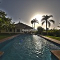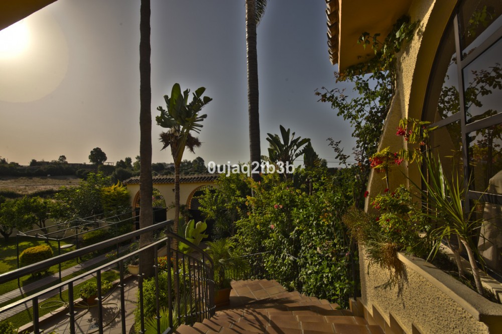• Very nice and ample traditional villa located close to ALDI and Burguer King and the beach on the New Golden Mile. Only 5Km from Estepona center and less than one kilometer to the beach. The large plot can be divided, currently part of it is used to cultivate fruits and vegetables. The house includes a garage for one large car being able to park more vehicles inside the plot. Ample living room, with a total of five bedrooms and 4 baths. Master bedroom en-suite. Large covered terrace with views to the large pool. Separate guest/staff apartment. Well maintained.