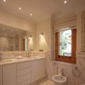 - Luxurious Mediterranean style villa in elevated position with lovely panoramic sea views is for sale in the famous area of Marbella, Sierra Blanca. This is a super family home in a privileged position allowing spectacular sea views and the Golden Mile. On the first floor there is a large living room with access to a covered terrace, huge hall, dining room and guest bathroom on the same level, along with fully fitted kitchen and laundry room. On the upper level we will find the master bedroom with en-suite bathroom and dressing room, as well as two guest rooms with a bathroom and shower. The master bedroom opens onto a large outdoor terrace with beautiful panoramic views. There is a swimming pool, chill out zone BBQ and beautiful botanical garden. In the basement you can find the entertainment room and a pool table . There are also two guest rooms with their own bathrooms, as well as a separate staff apartment with a mini-kitchen. Near the house there is a covered parking for 3 cars.