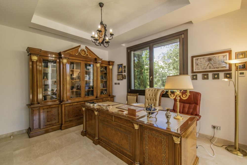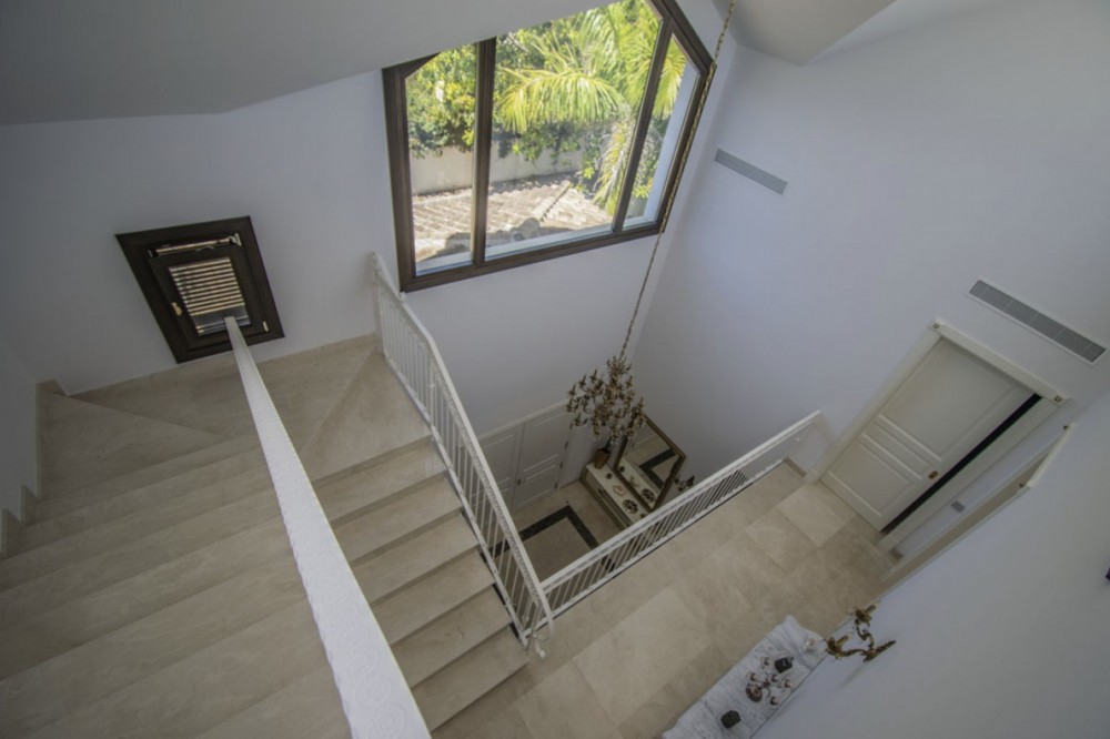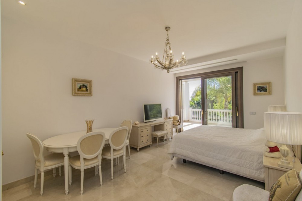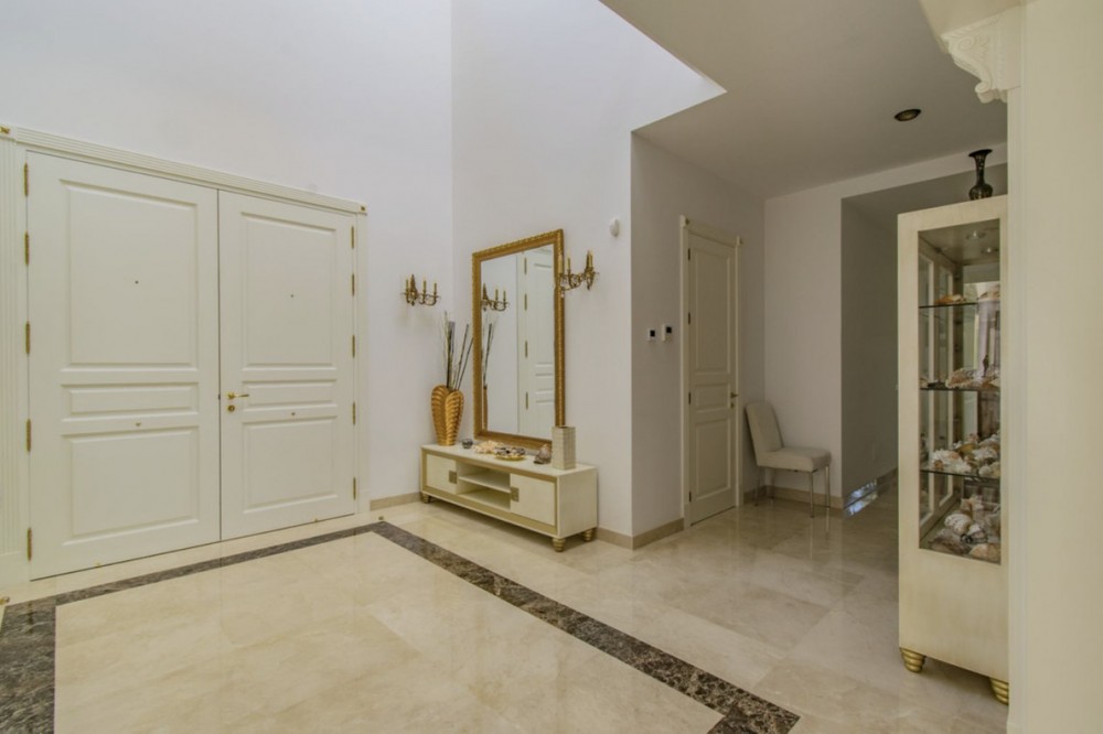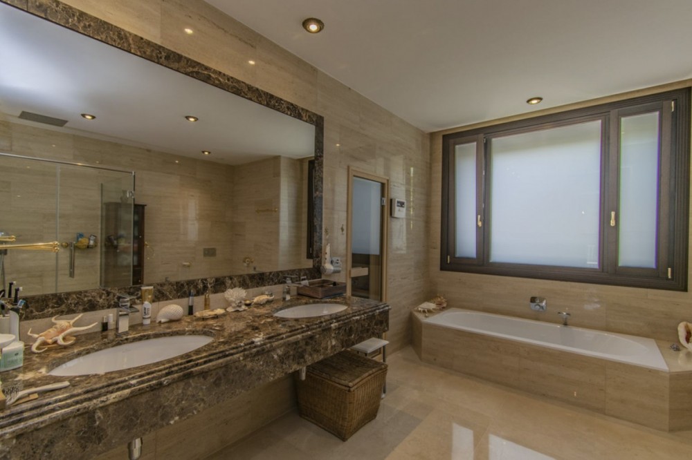 - Deze prachtige villa in Andalusische stijl is gelegen in de prestigieuze en rustige wijk Casasola, op slechts een steenworp afstand van het strand, en biedt de perfecte combinatie van luxe, privacy en comfort. De villa staat op een perceel van 2.043 m² en beslaat 1.050 m² bebouwde oppervlakte verdeeld over twee verdiepingen. De villa is ontworpen voor gezinnen die op zoek zijn naar een verfijnde levensstijl aan de Costa del Sol. De woning beschikt over zeven slaapkamers en zeven badkamers, waardoor er voldoende ruimte is voor familie en gasten. De ruime woonruimtes, waaronder een royale eetkamer en woonkamer, komen uit op meerdere terrassen met uitzicht op de volgroeide, aangelegde tuinen en het privézwembad, waardoor binnen en buiten naadloos in elkaar overlopen. De villa heeft tevens een schitterend solarium op de bovenverdieping, ideaal om te genieten van een panoramisch uitzicht op de Middellandse Zee en de omliggende bergen – een ware tropische oase. De villa is ontworpen met comfort in gedachten en is voorzien van airconditioning, een volledig uitgeruste keuken, marmeren vloeren, een wasruimte en diverse andere praktische ruimtes. Bewoners kunnen genieten van moderne voorzieningen zoals een sauna, privéparkeergelegenheid en beveiligde toegang. De villa is gelegen op een rustige en exclusieve locatie, dicht bij topgolfbanen, scholen, winkels en restaurants. Deze villa is perfect als luxe gezinswoning of vakantieverblijf en biedt een zeldzame kans om een instapklare woning te bezitten in een van de meest gewilde buurten van Andalusië. De villa combineert tijdloze elegantie met hedendaags comfort en een adembenemend uitzicht.