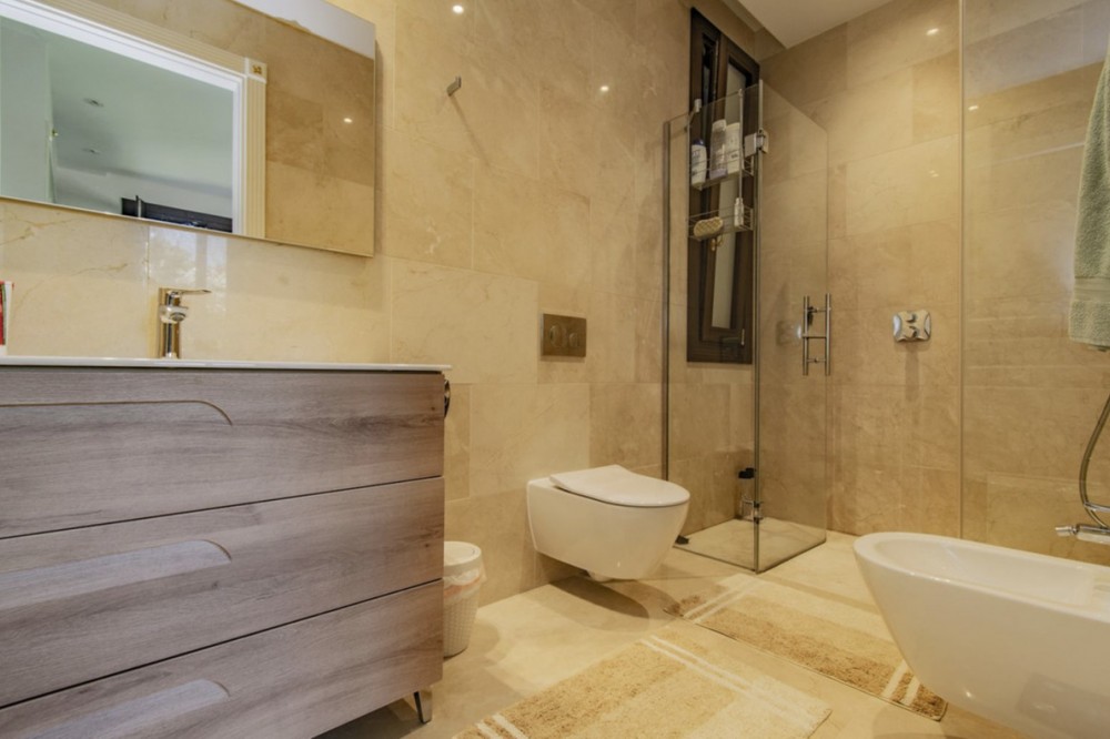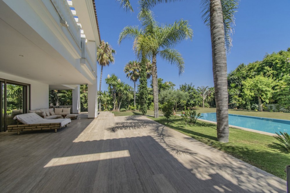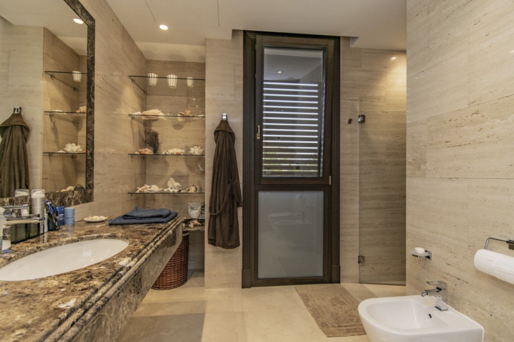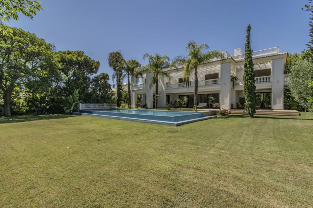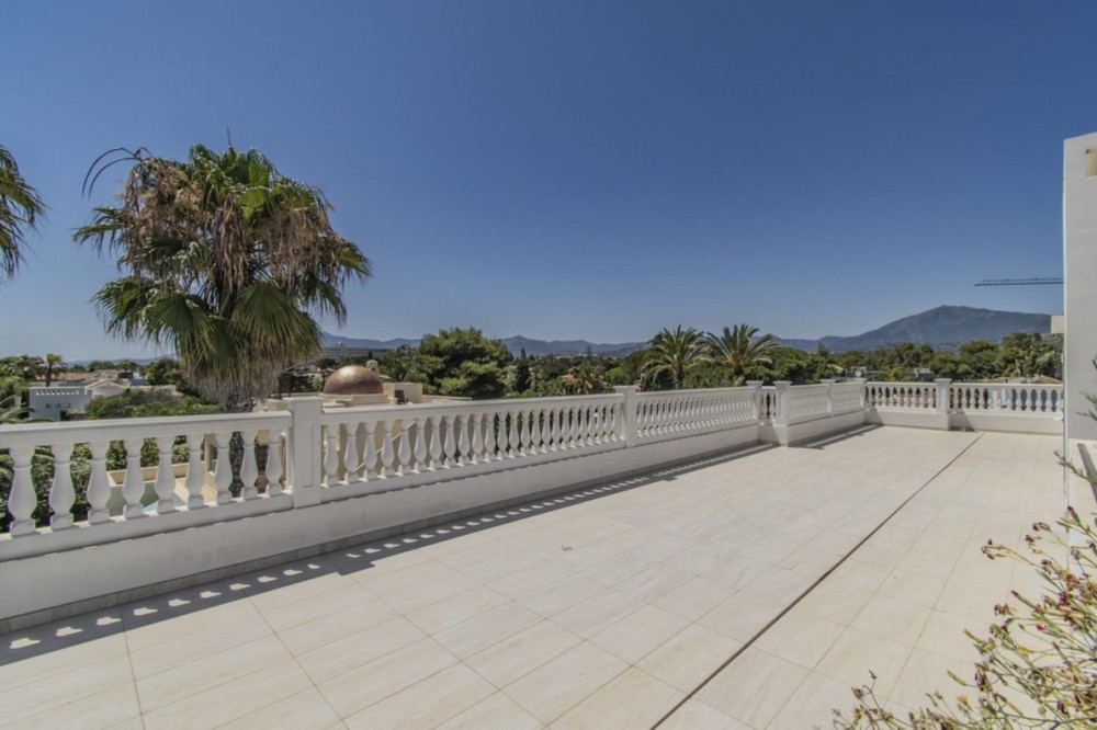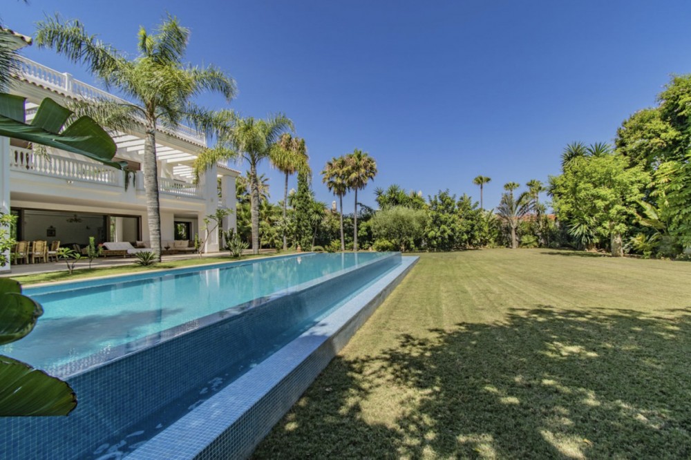 - Deze prachtige villa in Andalusische stijl is gelegen in de prestigieuze en rustige wijk Casasola, op slechts een steenworp afstand van het strand, en biedt de perfecte combinatie van luxe, privacy en comfort. De villa staat op een perceel van 2.043 m² en beslaat 1.050 m² bebouwde oppervlakte verdeeld over twee verdiepingen. De villa is ontworpen voor gezinnen die op zoek zijn naar een verfijnde levensstijl aan de Costa del Sol. De woning beschikt over zeven slaapkamers en zeven badkamers, waardoor er voldoende ruimte is voor familie en gasten. De ruime woonruimtes, waaronder een royale eetkamer en woonkamer, komen uit op meerdere terrassen met uitzicht op de volgroeide, aangelegde tuinen en het privézwembad, waardoor binnen en buiten naadloos in elkaar overlopen. De villa heeft tevens een schitterend solarium op de bovenverdieping, ideaal om te genieten van een panoramisch uitzicht op de Middellandse Zee en de omliggende bergen – een ware tropische oase. De villa is ontworpen met comfort in gedachten en is voorzien van airconditioning, een volledig uitgeruste keuken, marmeren vloeren, een wasruimte en diverse andere praktische ruimtes. Bewoners kunnen genieten van moderne voorzieningen zoals een sauna, privéparkeergelegenheid en beveiligde toegang. De villa is gelegen op een rustige en exclusieve locatie, dicht bij topgolfbanen, scholen, winkels en restaurants. Deze villa is perfect als luxe gezinswoning of vakantieverblijf en biedt een zeldzame kans om een instapklare woning te bezitten in een van de meest gewilde buurten van Andalusië. De villa combineert tijdloze elegantie met hedendaags comfort en een adembenemend uitzicht.