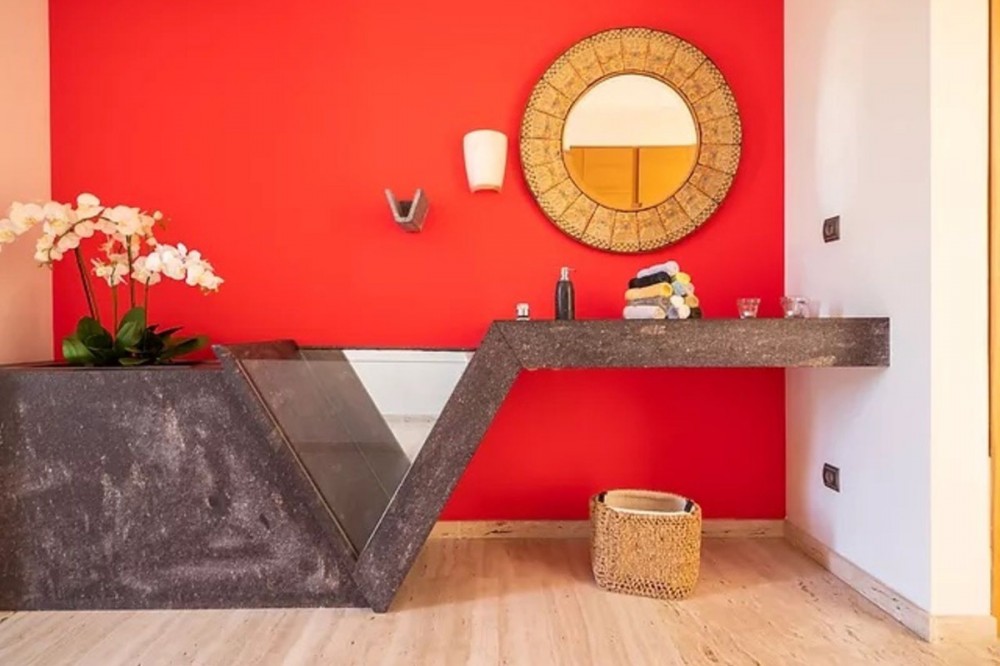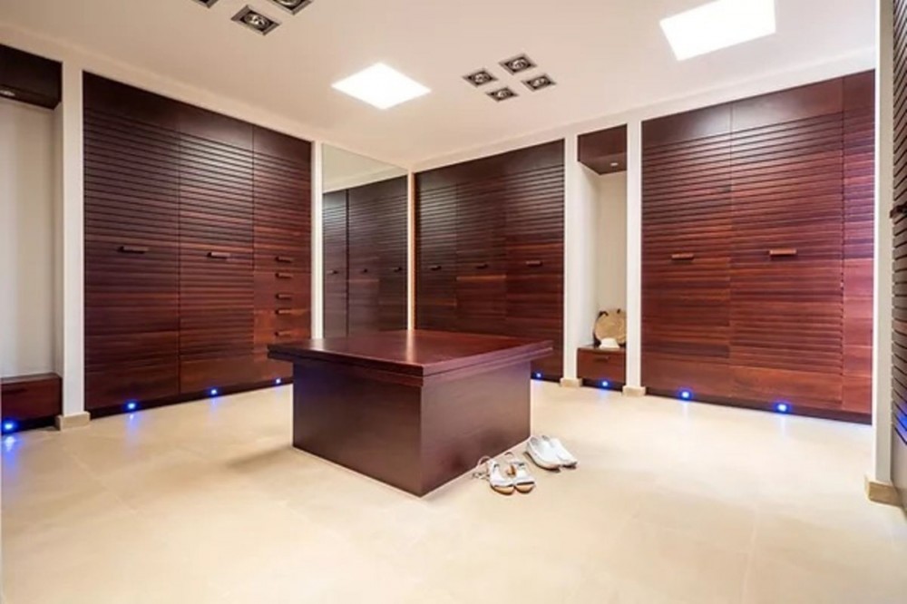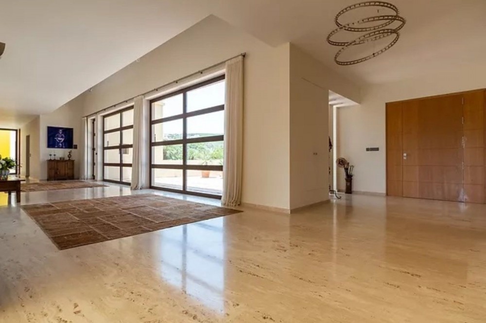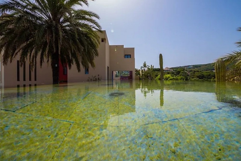 - Luxury villa itself is located in a closed and gated community, at the end of a cul-de-sac and at the entrance of the world renown Club Reserva de Sotogrande Golf Cours Lower Floor The lower floor consists on one side of the house for housekeeping quarters with living room, kitchenette and separate toilet, bedroom, bathroom and spacious patio. In between is a 6 car garage and hobby room. The south side has a cinema room, massage room, wine cellar, pool/bar room as well as an extensive gym area, inside jacuzzi, Klafs Swedish sauna with infrared. Upper Floor The upper floor consists of all the 5 bedrooms with ensuite bathrooms, each properly designed with refreshing ideas and little surprises. The east wing is reserved for the Master Suite, consisting of the bedroom with panoramic window to the sea, rising tv screen in front of the bed, ensuite bathroom with terrace and outdoor shower. The walk-in closet is custom designed with wooden cabinets. There are safety doors and secret separations for children's safety. Ground Floor Entering the ground floor, the massive entrance door gives the sense of proportion that is kept throughout this mansion. There is a long corridor/gallery connecting the east wing with the tremendous living area and the study to the west wing's dining area. Sliding doors separating the dining room and the spacious kitchen with top of the line equipment. Behind is the wet kitchen with a walk-in freezer, larder room, separate laundry room and the designed guest wash room. Outside The main rooms, decorated with the nicest Georgetti furniture and kitchen all have access to the outdoor with certain areas having the Barragan-specific strong colours. Bright walls accentuate the space on the terraces near the Koi pond and the sun protected outside BBQ area, which connects to a split level garden with fountain and strong color wall surrounding, protected to wind and offering total privacy. The infinity swimming pool with stunning Siccis mosaic, IPE wooden terrace and Mexican style hut. On sunny periods the outside blends with the inside, the lights and shadows play like an artist canvas. The most dramatic style part of this mansion is the spacious outdoor living area with glass roof and electric sculpted lattice shutters which play with ever changing quality of light and shade from roof and front part separating the garden without taking away the sea view. Concept The concept of this Mansion is inspired on the great Mexican architect Louis Barragan and the Californian architect Ricardo LEGORETTA, but effectively designed and fully decorated by "Femont-Galvan designers" from Marbella. This unique luxury Mansion is located south facing the extensive coastline with splendid views to the sea and the African border and surrounded by the famous 18 holes golfcours "La Reserva de Sotogrande" and neighbor to the "Valderama" championship course.