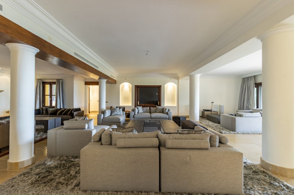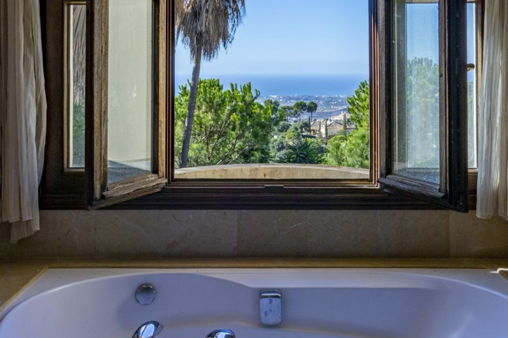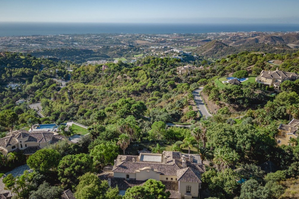 • Timeless Andalusian Elegance in La Zagaleta Nestled just one minute from the south entrance of the prestigious La Zagaleta estate in Benahavís, this timeless Andalusian-style villa sits on a magnificent south-facing plot of 3,452 m², offering complete privacy and breathtaking panoramic views over the valley and countryside all the way down to the Mediterranean Sea. The ground floor welcomes you with an impressive entrance hall leading into an expansive living area featuring multiple lounge zones, a TV room, and a formal dining space. The elegant salon opens onto a vast terrace with some of the finest sea views in the area. A fully equipped kitchen with central island and breakfast corner, a guest bedroom with en-suite bathroom, guest toilet, and laundry room complete this level. Upstairs, the first floor hosts two luxurious en-suite bedrooms, including a grand master suite with dressing area and private sitting room. The second bedroom is an equally spacious guest suite, both offering stunning views towards the sea. On the garden level, you’ll find a large entertainment lounge with wine cellar, a staff apartment with bedroom, bathroom and kitchen, and a wellness area featuring a spa with sauna, Turkish bath, indoor pool, and gym, all with direct access to the garden. Outdoors, beautifully landscaped gardens surround a serene swimming pool and gazebo, creating a true haven of relaxation. With more than 1,000 m² of built area, this classic villa offers exceptional potential for modernisation — an outstanding investment opportunity combining timeless architecture, commanding sea views, and an unbeatable location within one of Europe’s most exclusive residential communities. La Zagaleta provides 24-hour security, two private 18-hole golf courses, an equestrian centre, and tennis facilities — all just minutes from Marbella and only 60 km from Málaga Airport.